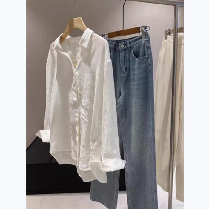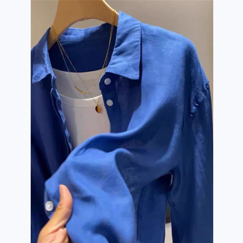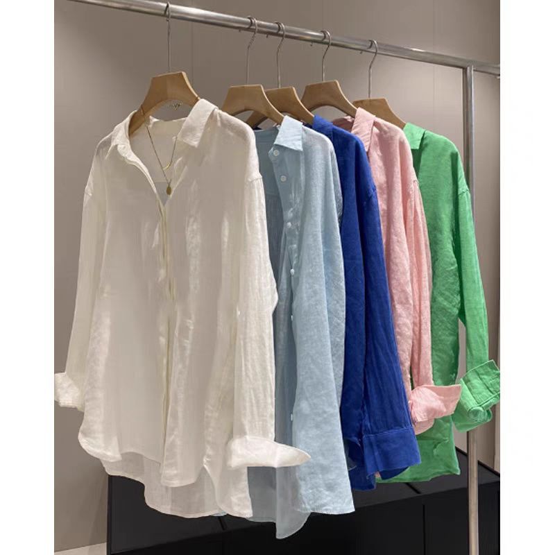 여름 여성용 프렌치 화이트 린넨 셔츠 얇고 루즈한 올드 머니 스타일 하이엔드 코튼 린넨 셔츠 자외선 차단 탑스토어 가기