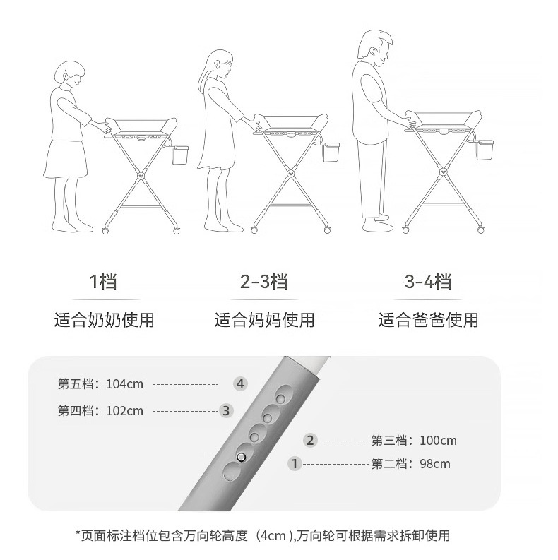 8、选配配件:可升降万向轮、单层侧兜、双层侧兜、玩具架、小水盆、隔尿垫、定型枕