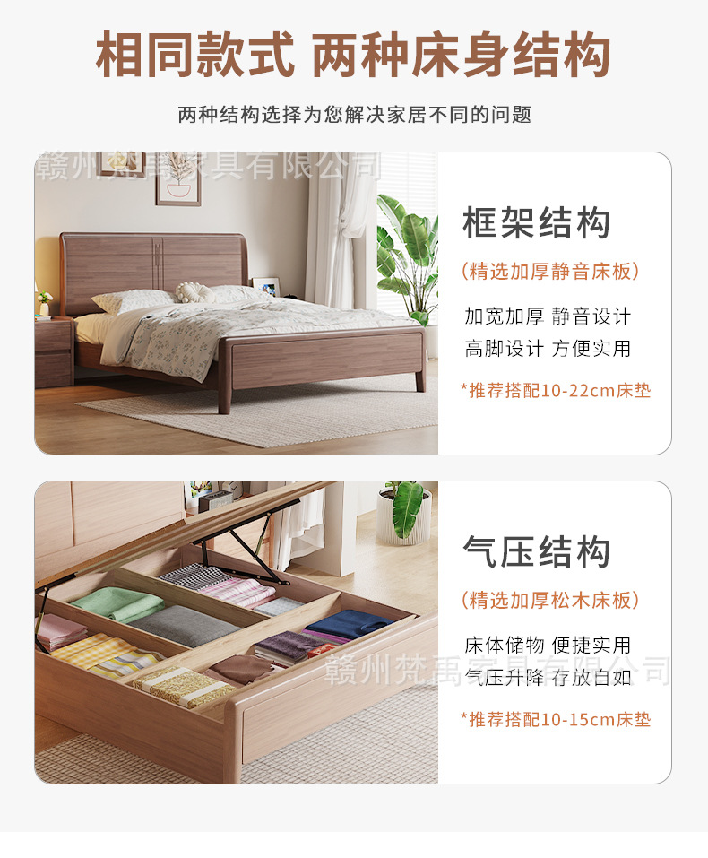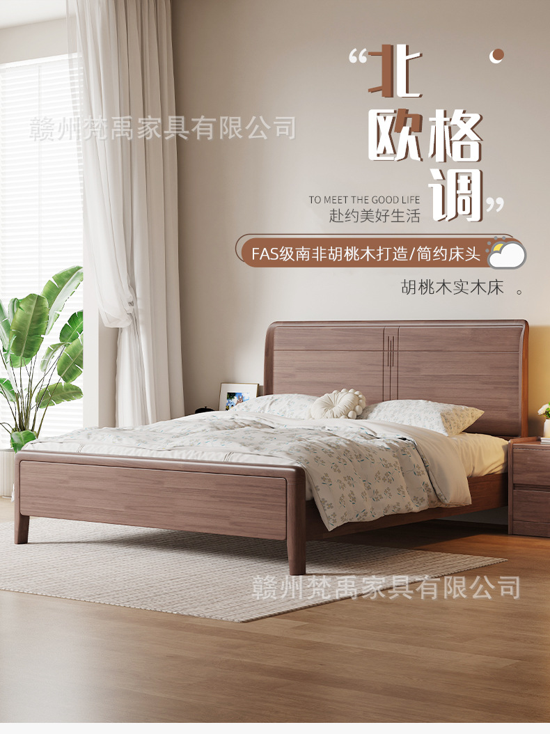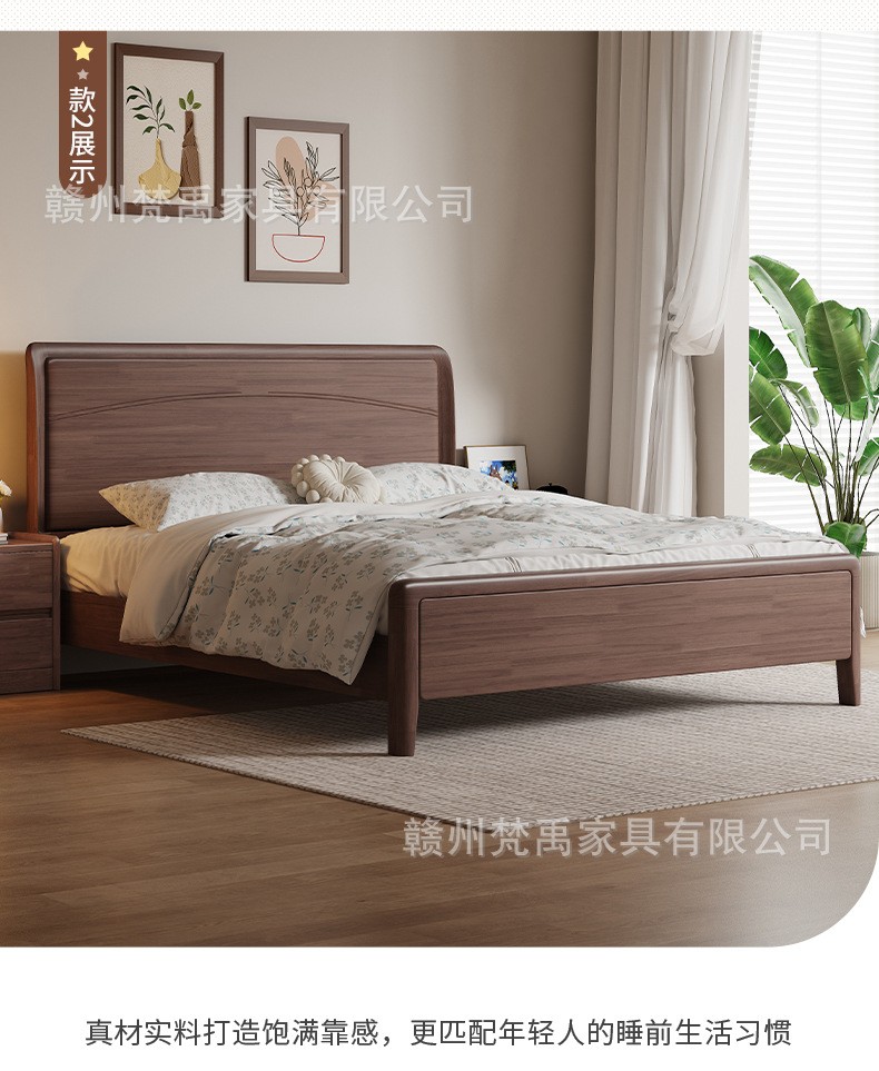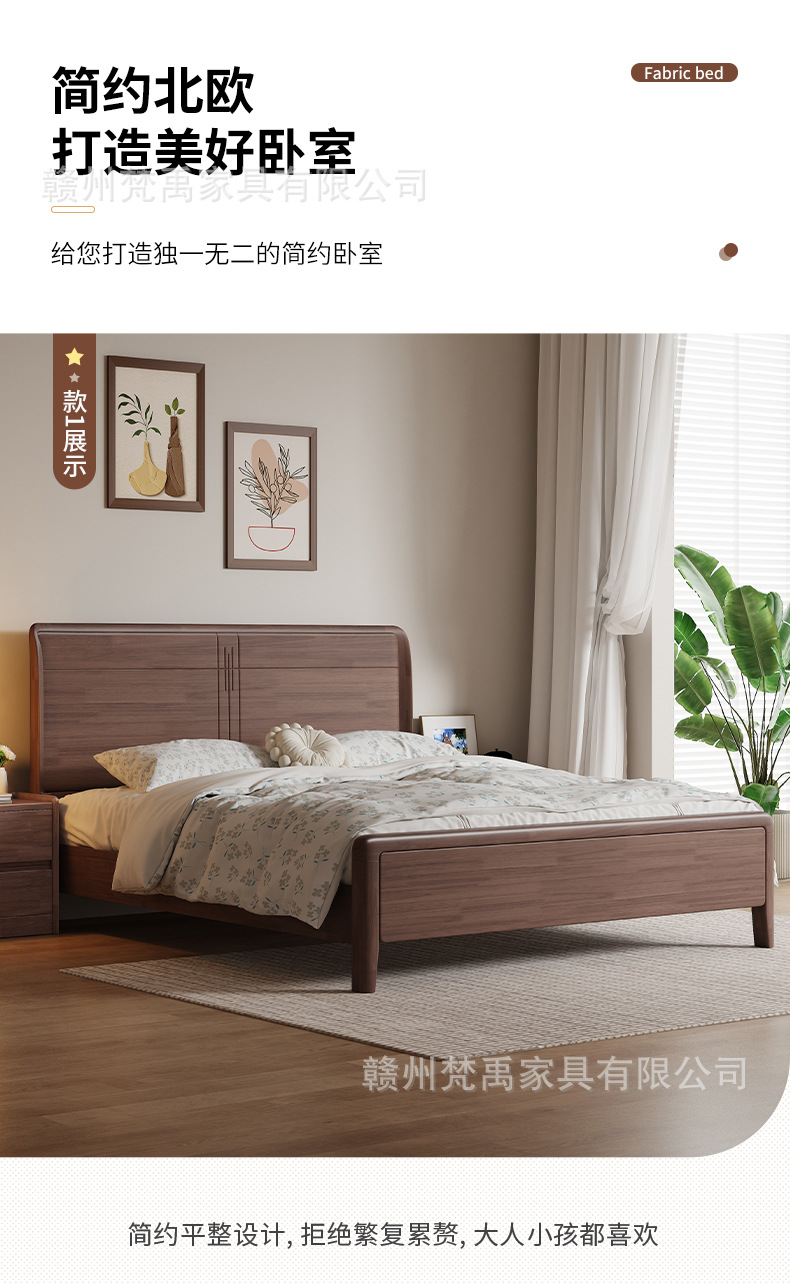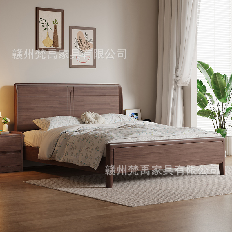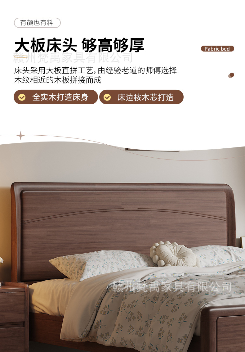 호두나무 두꺼운 원목 침대 가정용 크기 침실 수납 중세 스타일 1.8m 1.5m 더블 침대스토어 가기