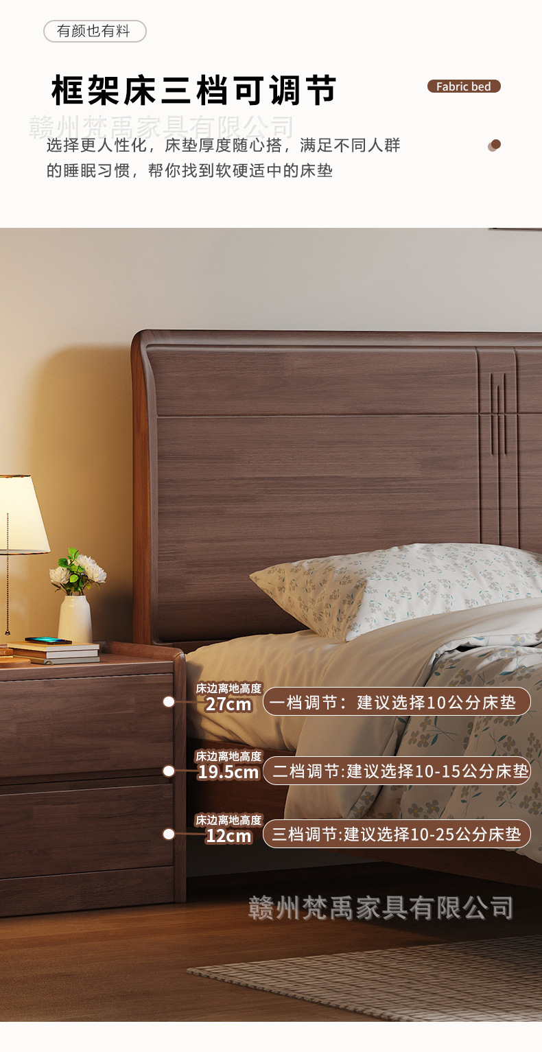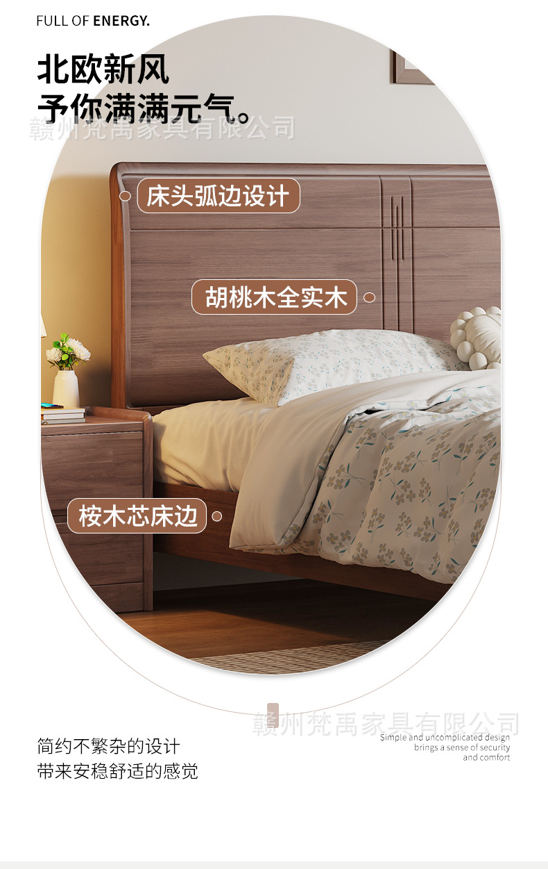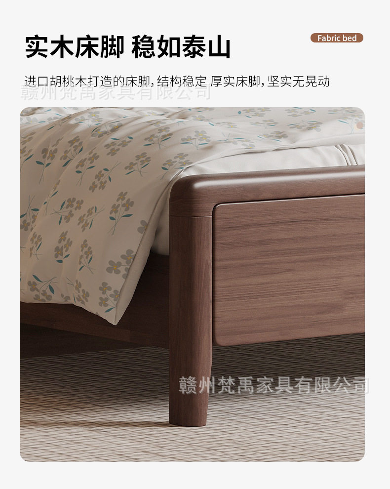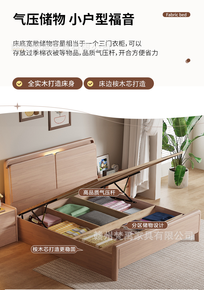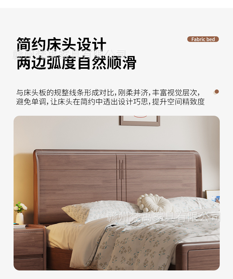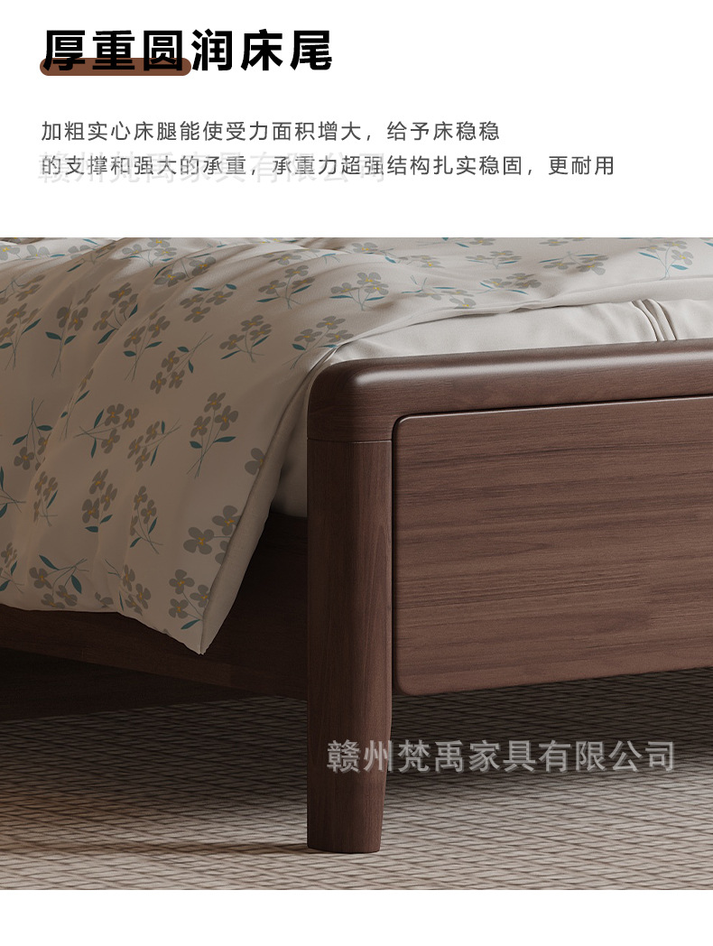 호두나무 두꺼운 원목 침대 가정용 크기 침실 수납 중세 스타일 1.8m 1.5m 더블 침대스토어 가기