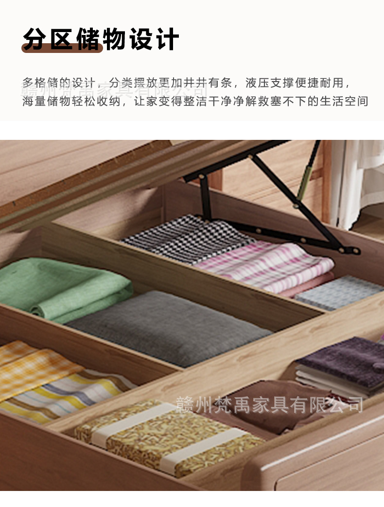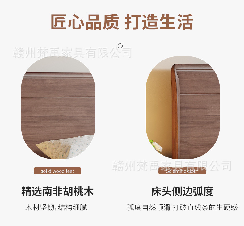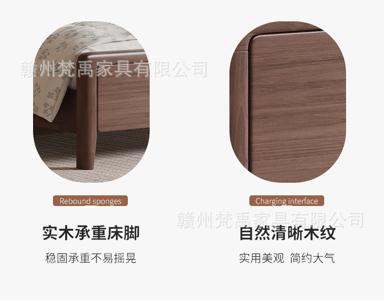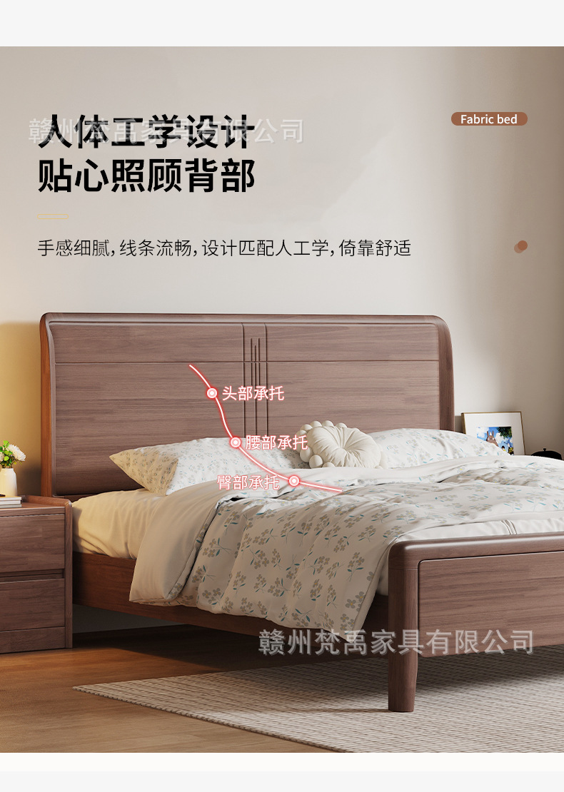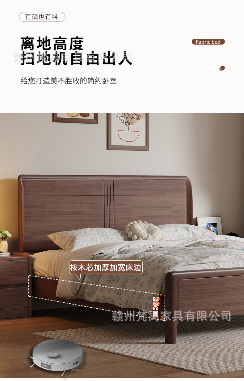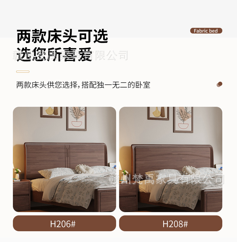 호두나무 두꺼운 원목 침대 가정용 크기 침실 수납 중세 스타일 1.8m 1.5m 더블 침대스토어 가기