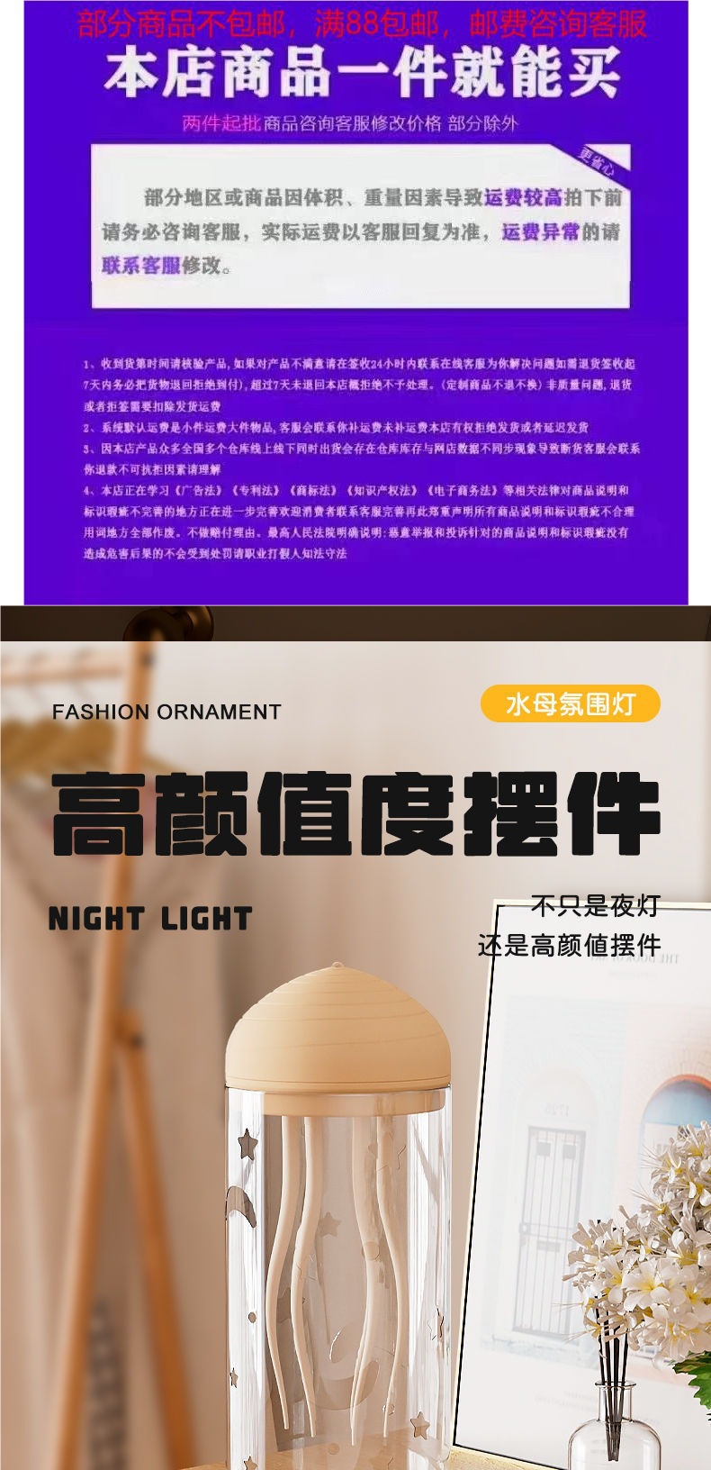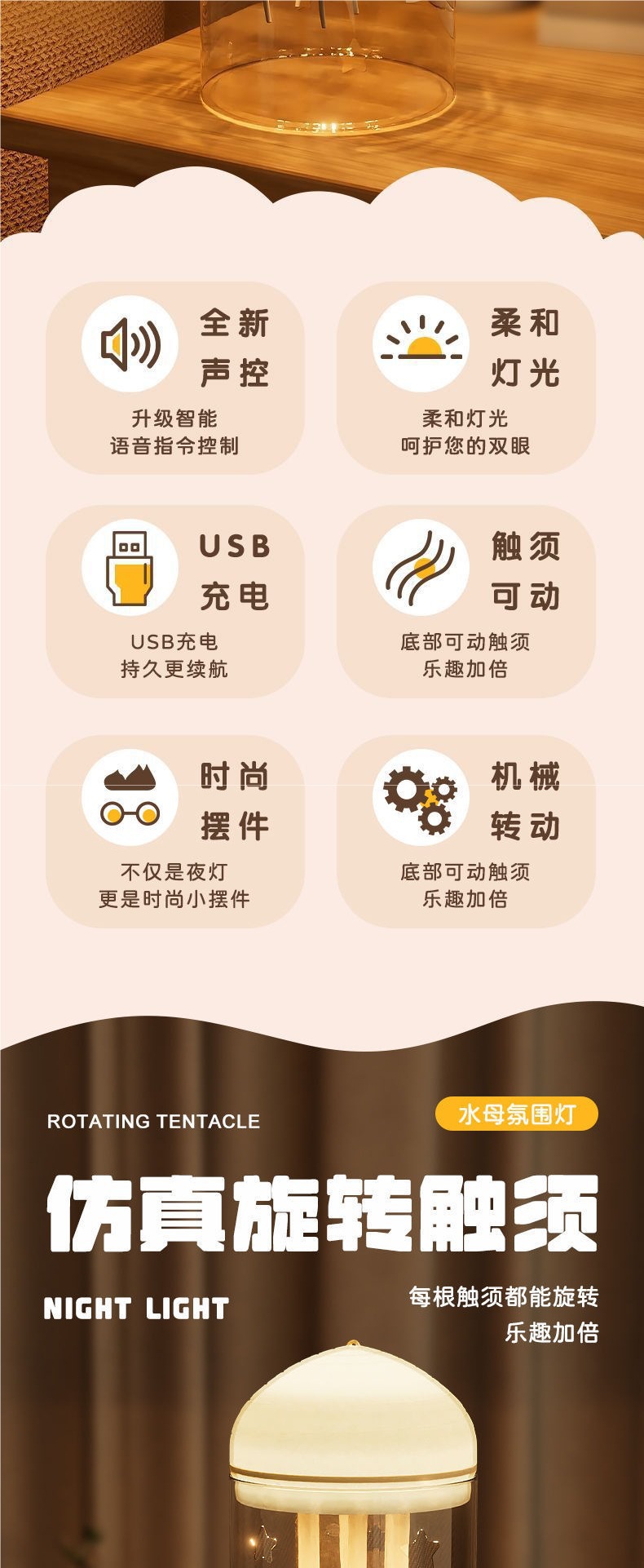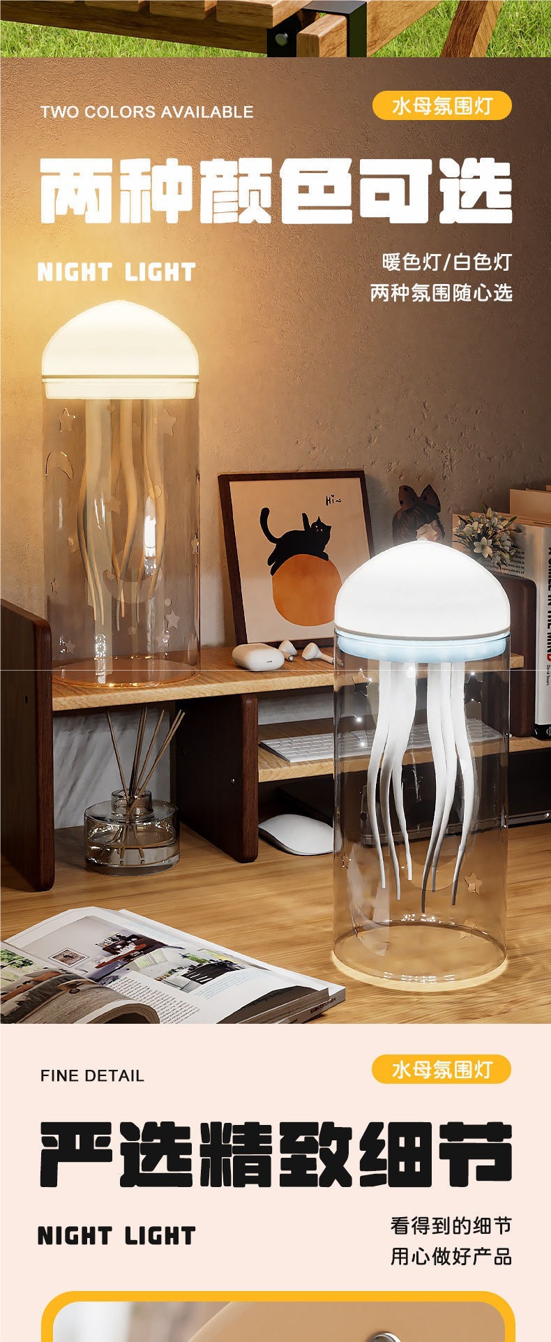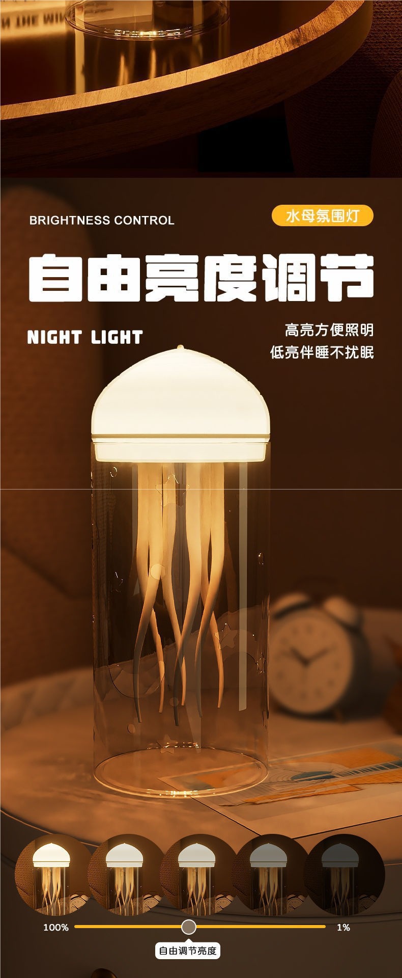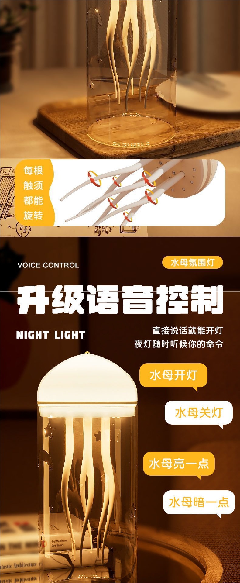 • [영어 따뜻한 색상 램프] 음성 제어 부동 해파리 램프 + 갓