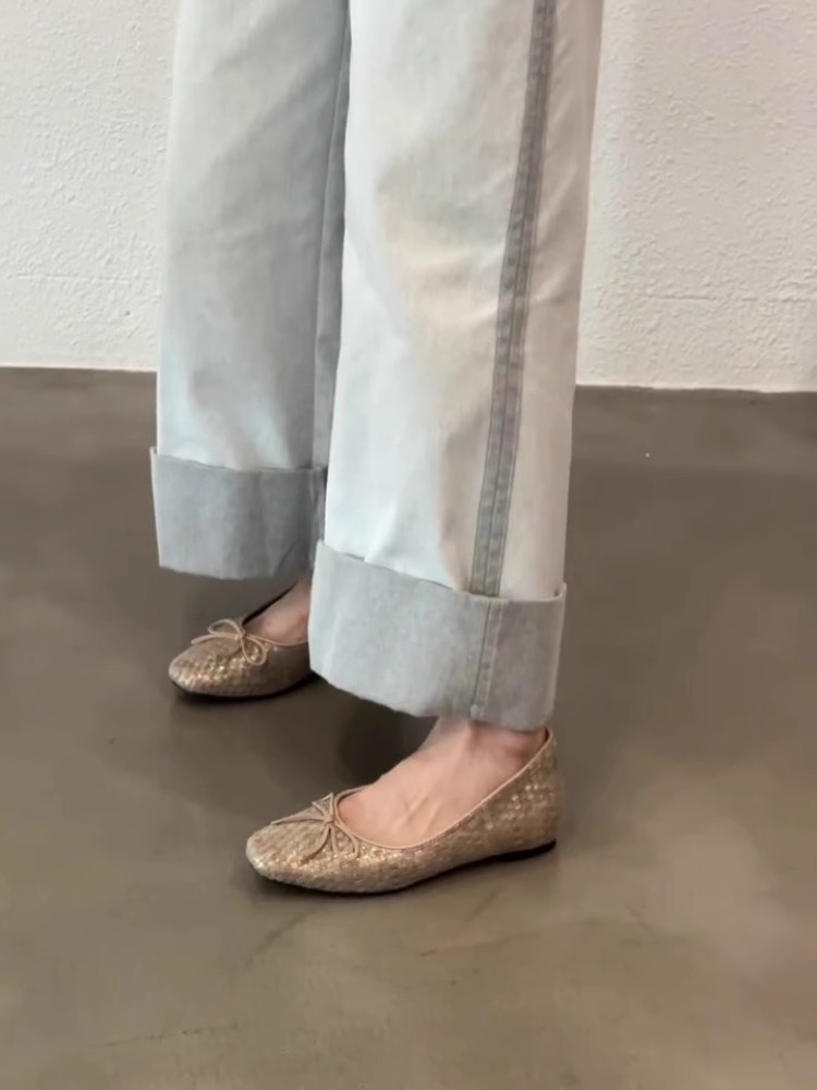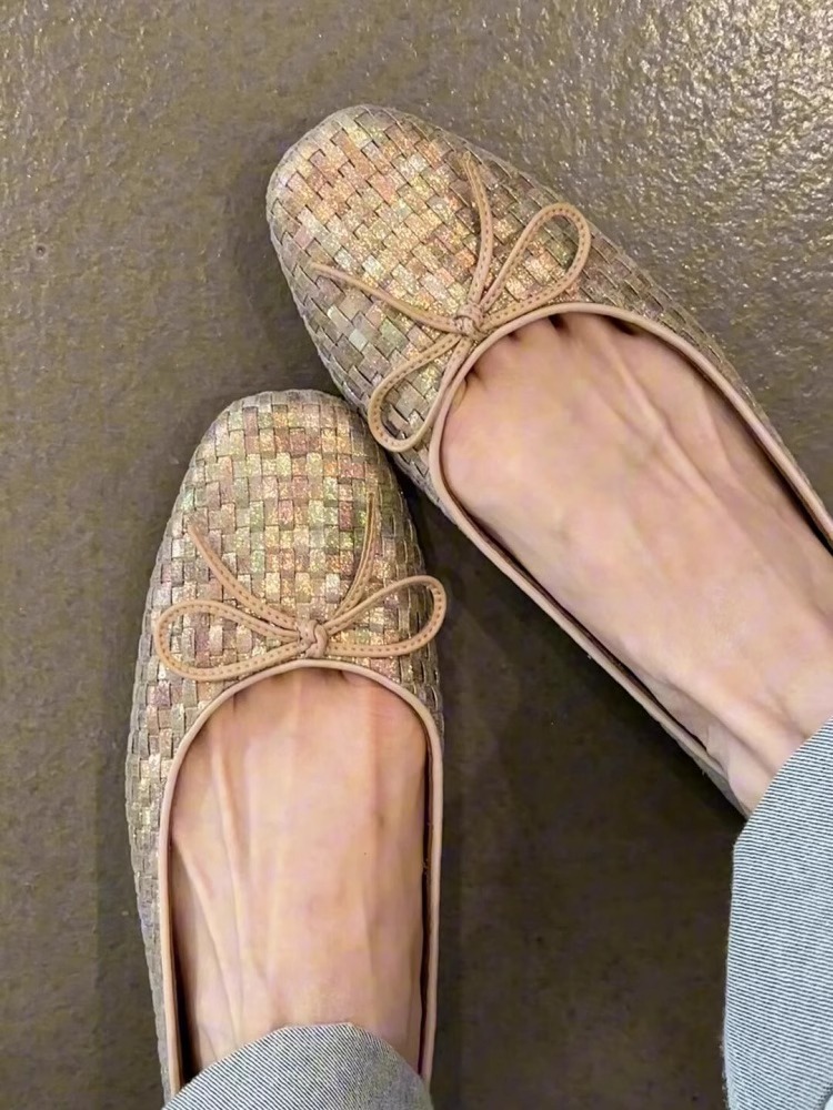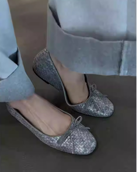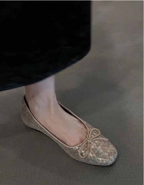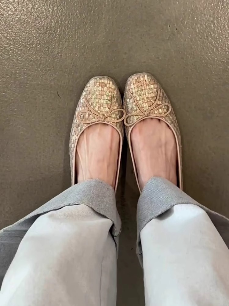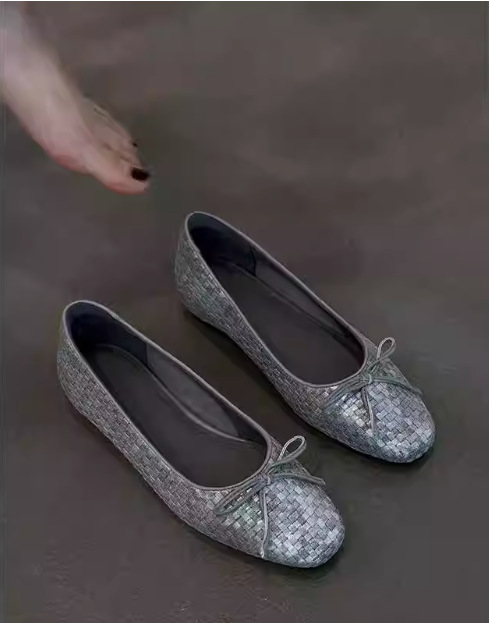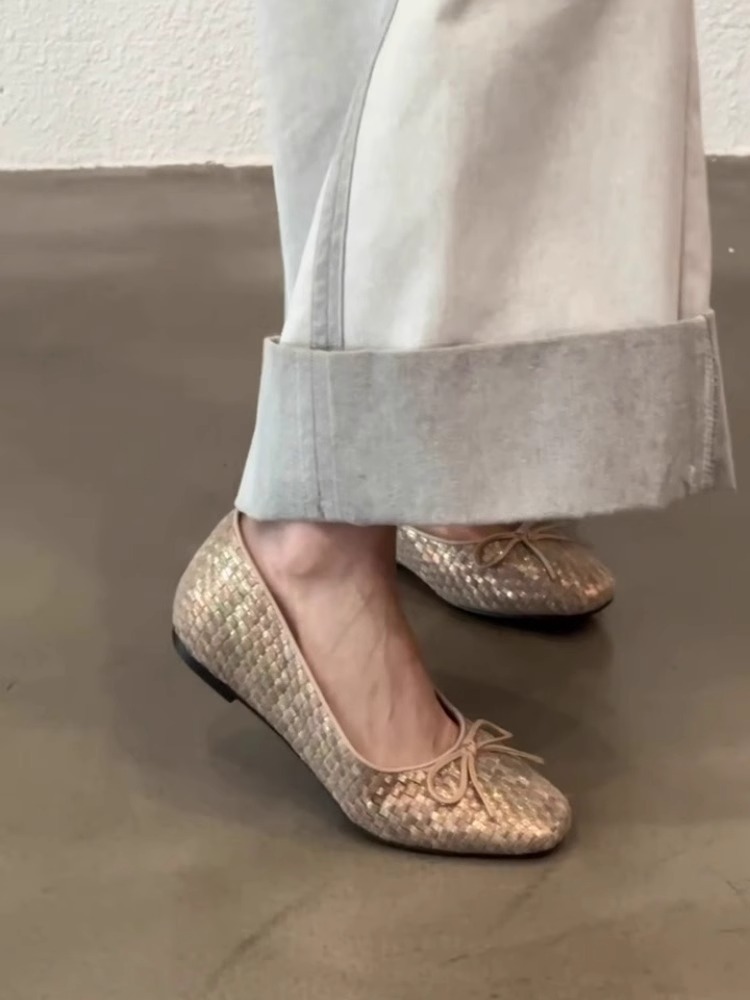 양가죽 버전 ~ 니치 우븐 보우 플랫 발레 슈즈 2025 신상 여름 기질 소프트 솔 펌프스 슈즈스토어 가기