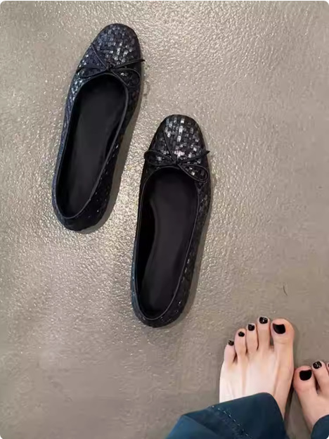 양가죽 버전 ~ 니치 우븐 보우 플랫 발레 슈즈 2025 신상 여름 기질 소프트 솔 펌프스 슈즈