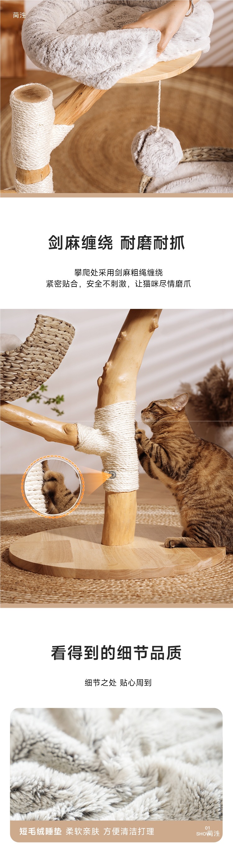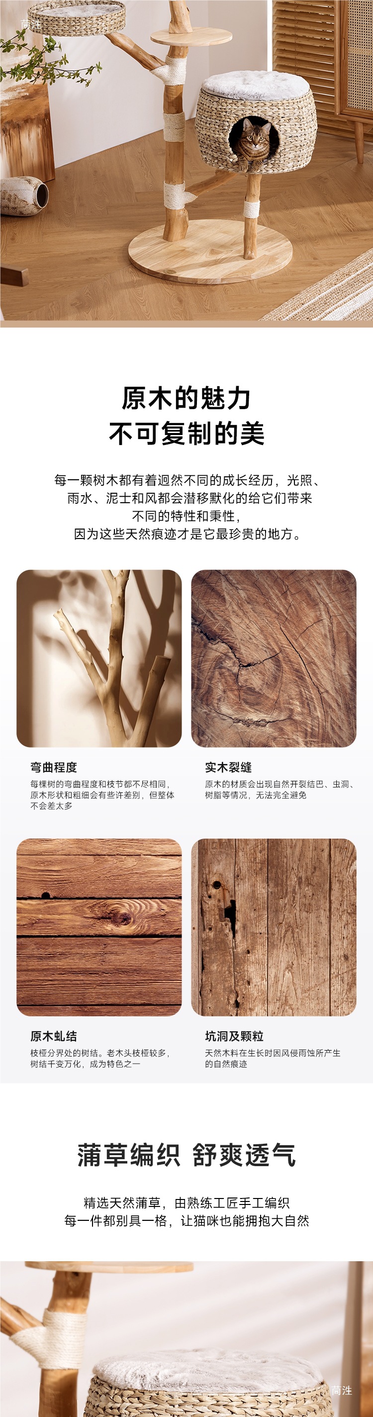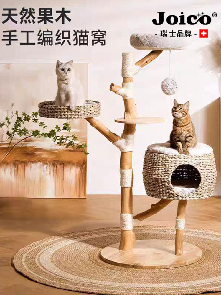 트렁크 고양이 클라이밍 프레임, 로그 스타일 고양이 트리, 등나무 원목, 공간을 차지하지 않음, 새끼 고양이 관찰대, 고양이 클라이밍 트리스토어 가기