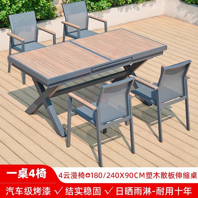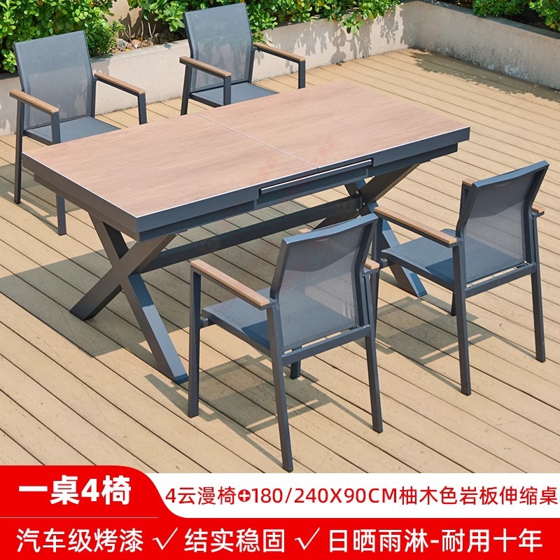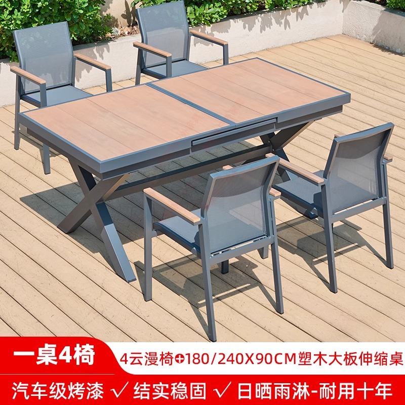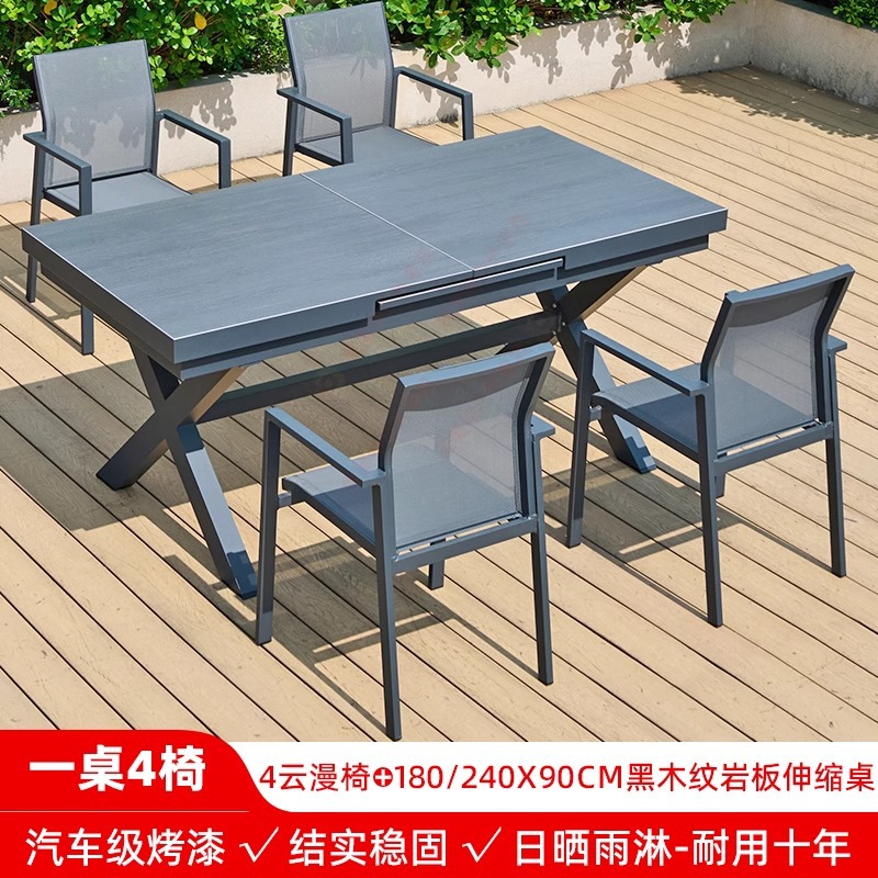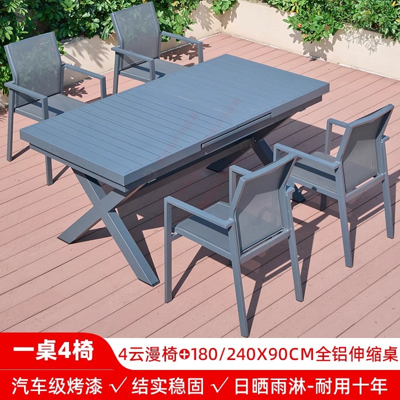 • Yunman 의자 4개 + 180-240X90cm 전체 알루미늄 텔레스코픽 테이블