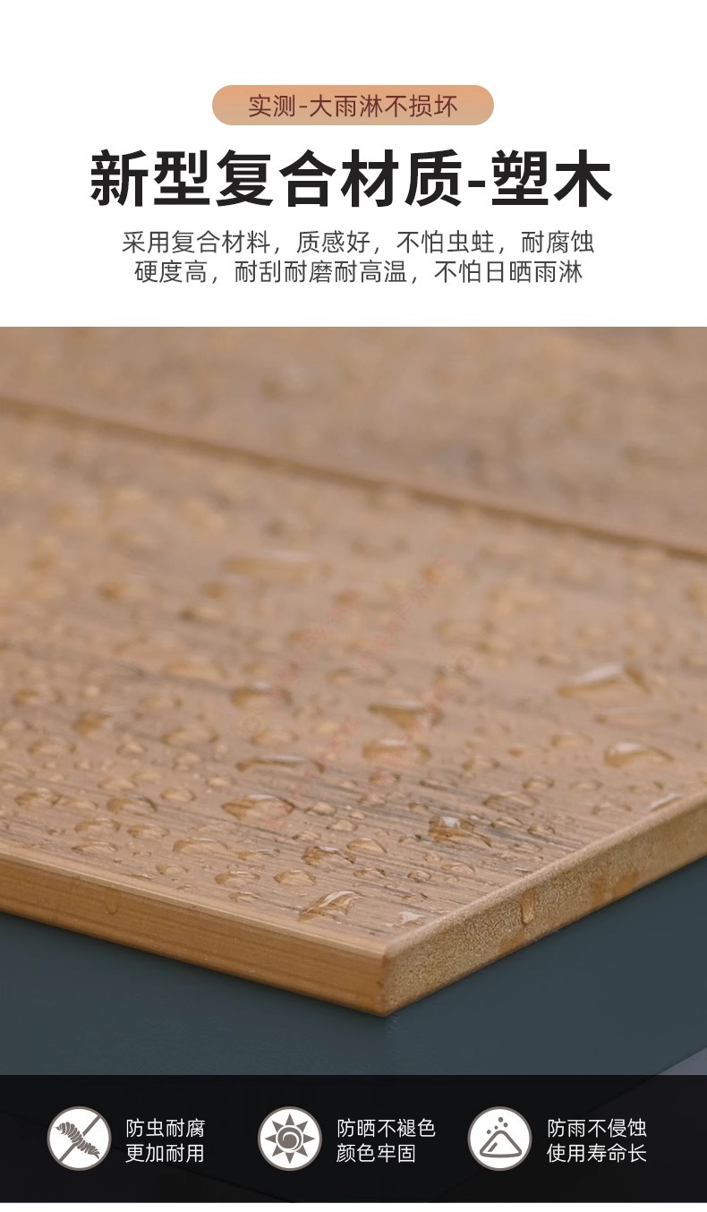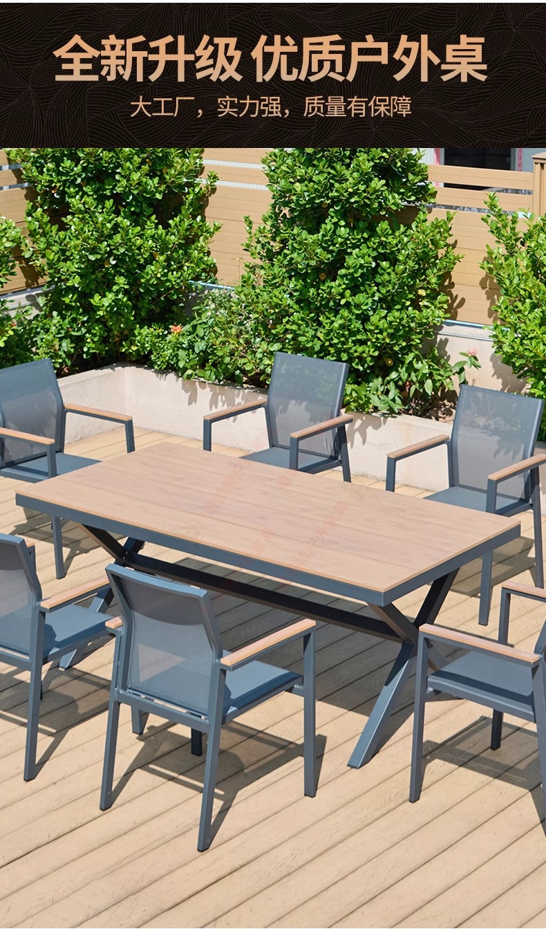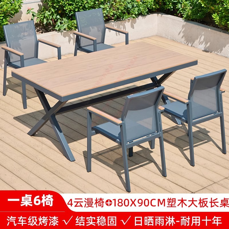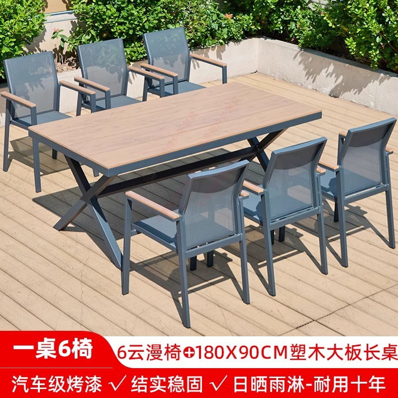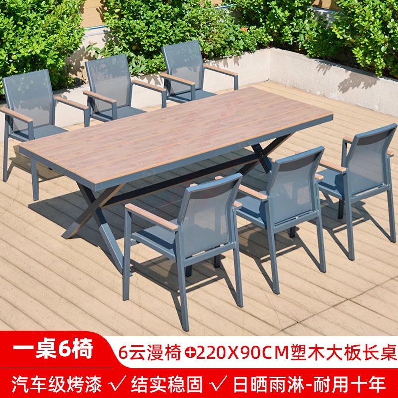 • 플라스틱 나무 팔걸이가 있는 Yunman 의자 6개 + 220X90cm 플라스틱 나무 대형 보드 긴 테이블