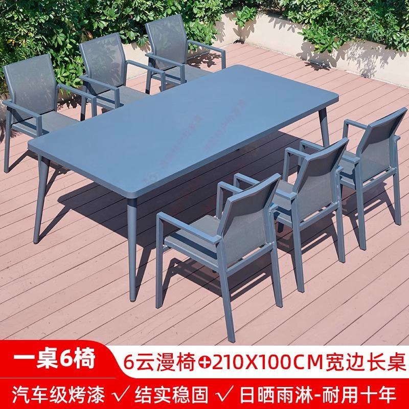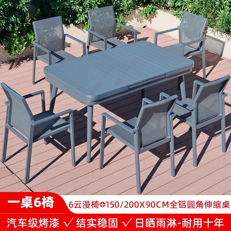 • Yunman 의자 6개 + 150-200X90cm 전체 알루미늄 둥근 모서리 텔레스코픽 테이블