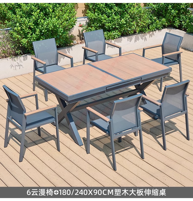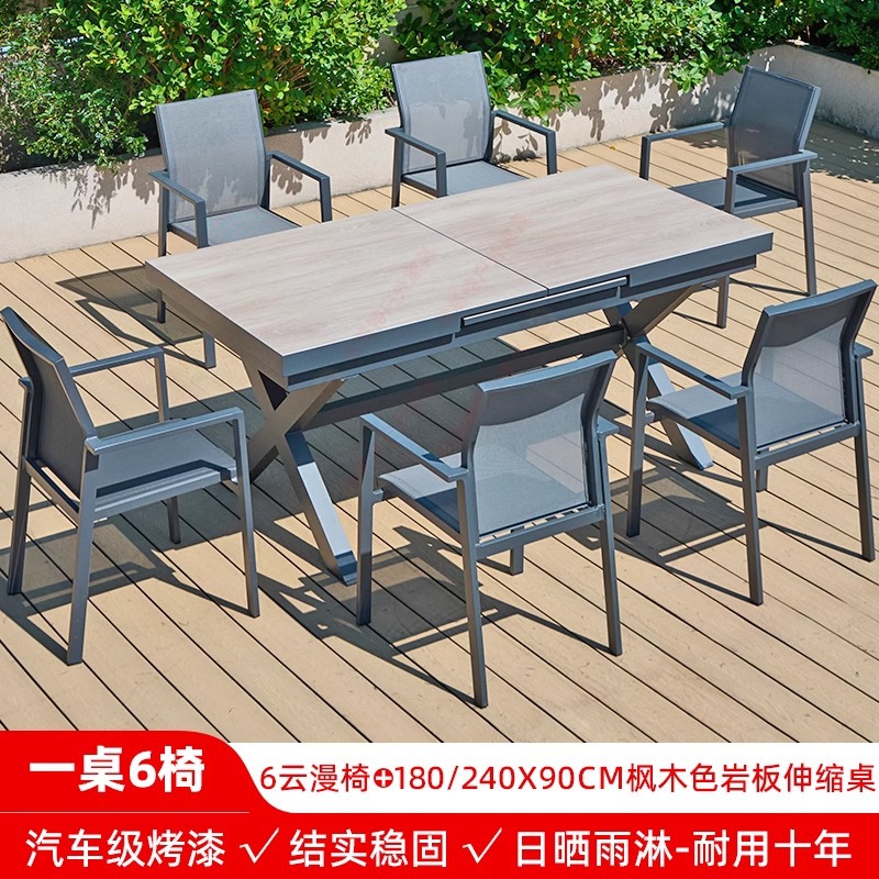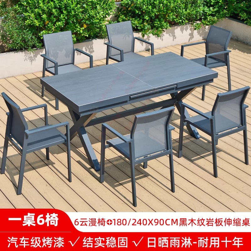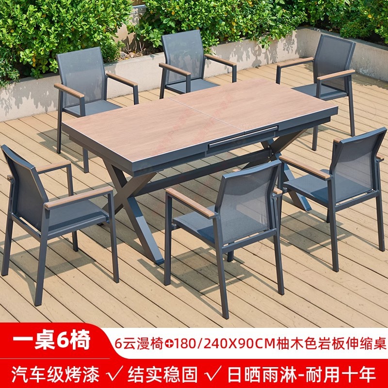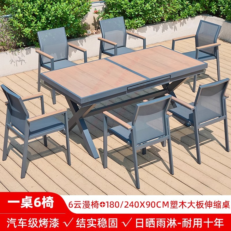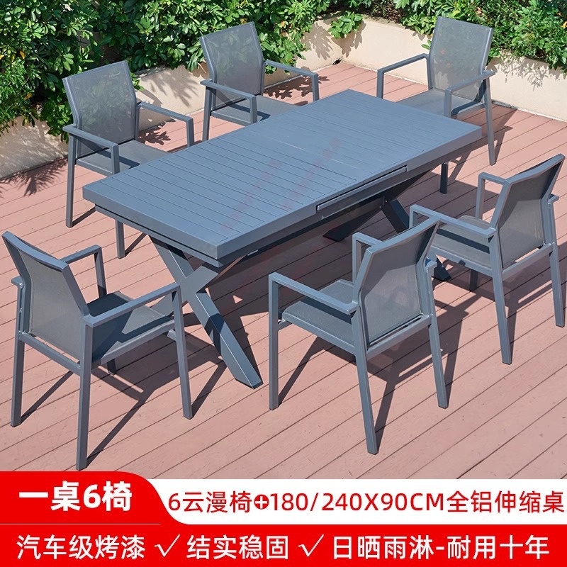 • Yunman 의자 6개 + 180-240X90cm 전체 알루미늄 텔레스코픽 테이블
