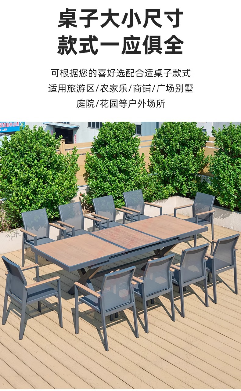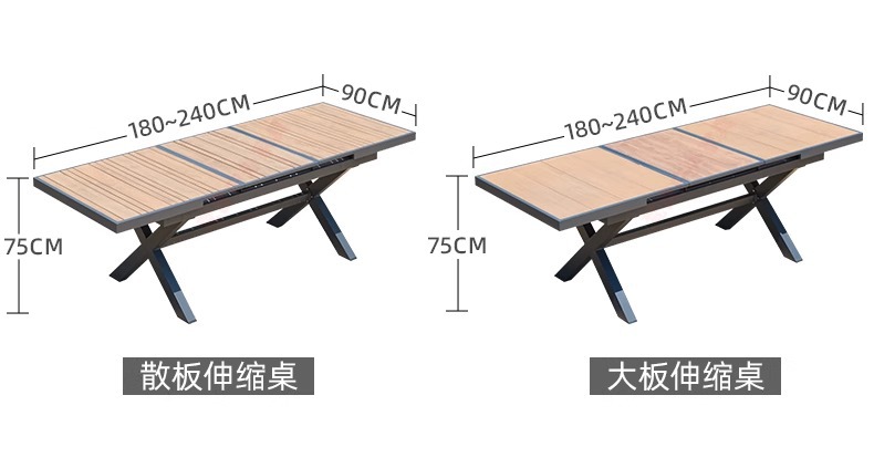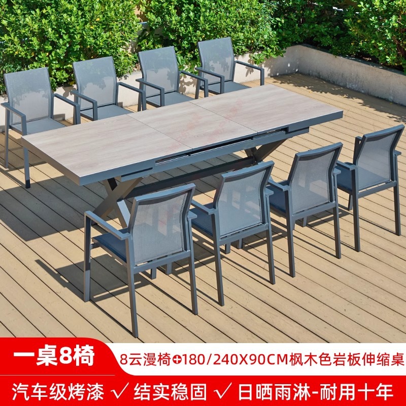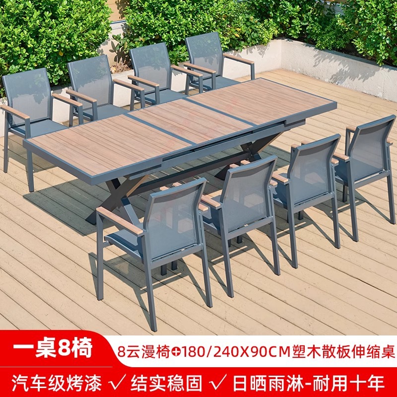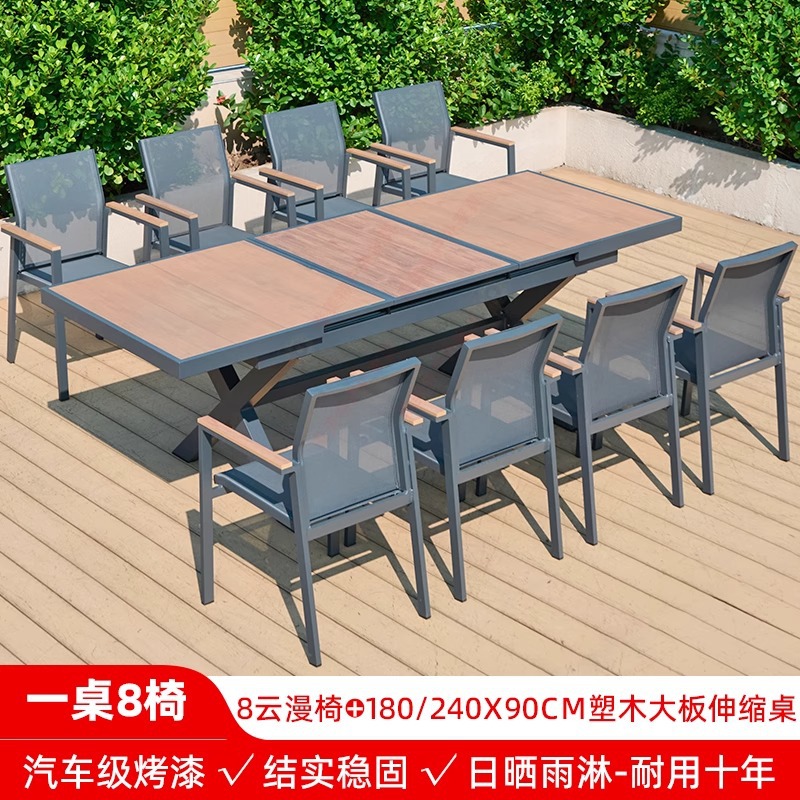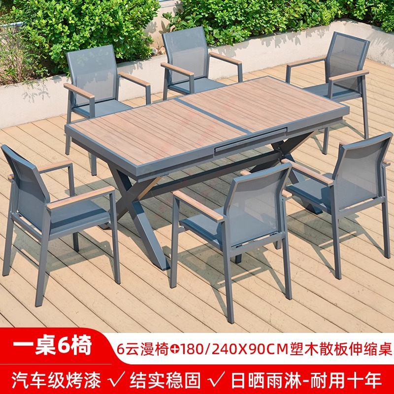 • Yunman 의자 6개 + 180-240X90cm 전체 알루미늄 텔레스코픽 테이블