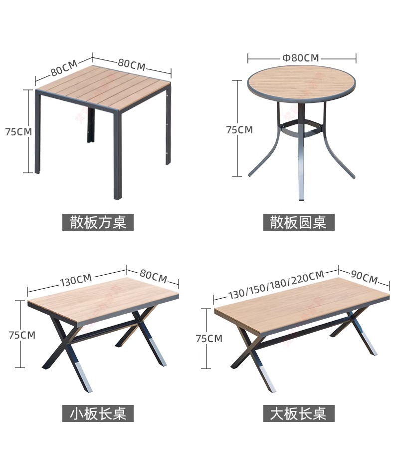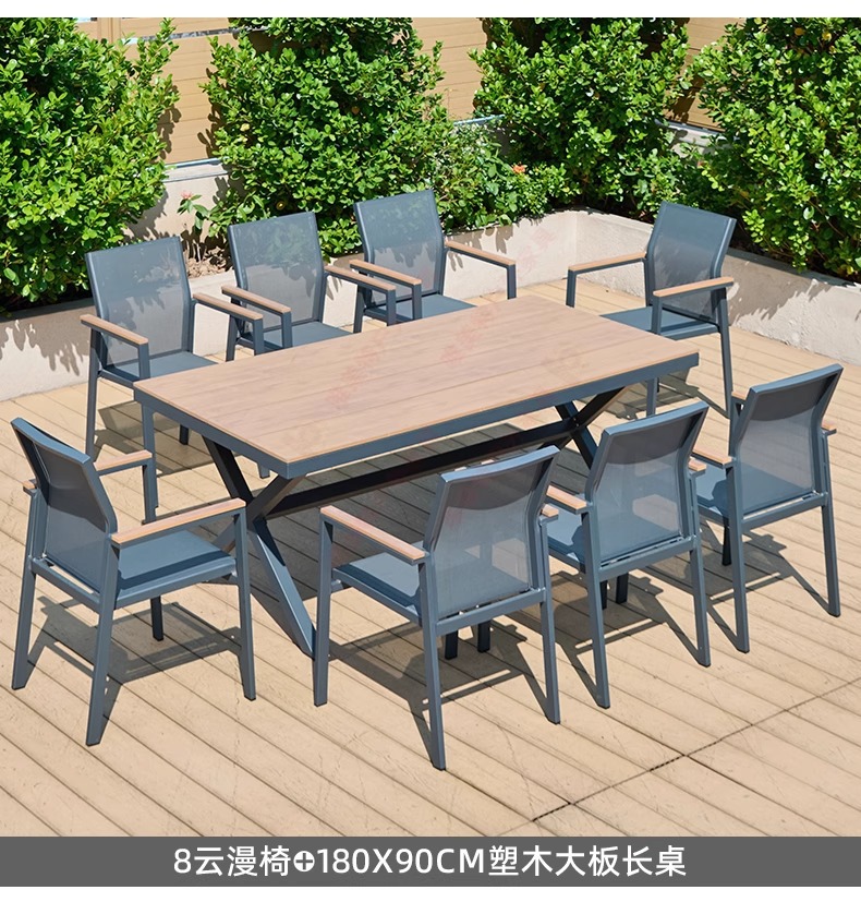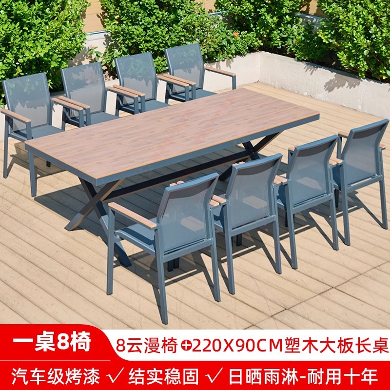 • 플라스틱 나무 팔걸이가 있는 8 Yunman 의자 + 220X90cm 플라스틱 나무 대형 보드 긴 테이블
