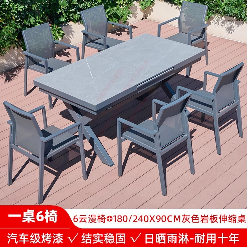 • Yunman 의자 6개 + 180-240X90cm 회색 슬레이트 텔레스코픽 테이블