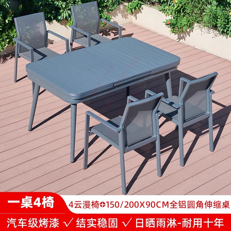 • Yunman 의자 4개 + 150-200X90cm 전체 알루미늄 둥근 모서리 텔레스코픽 테이블