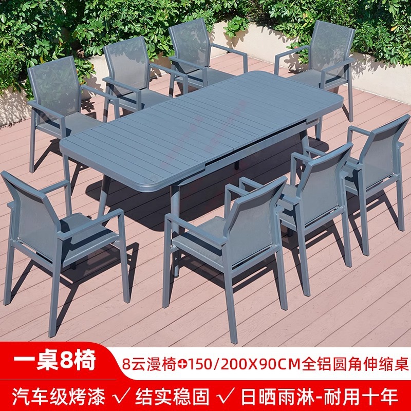 • Yunman 의자 8개 + 150-200X90cm 전체 알루미늄 둥근 모서리 텔레스코픽 테이블