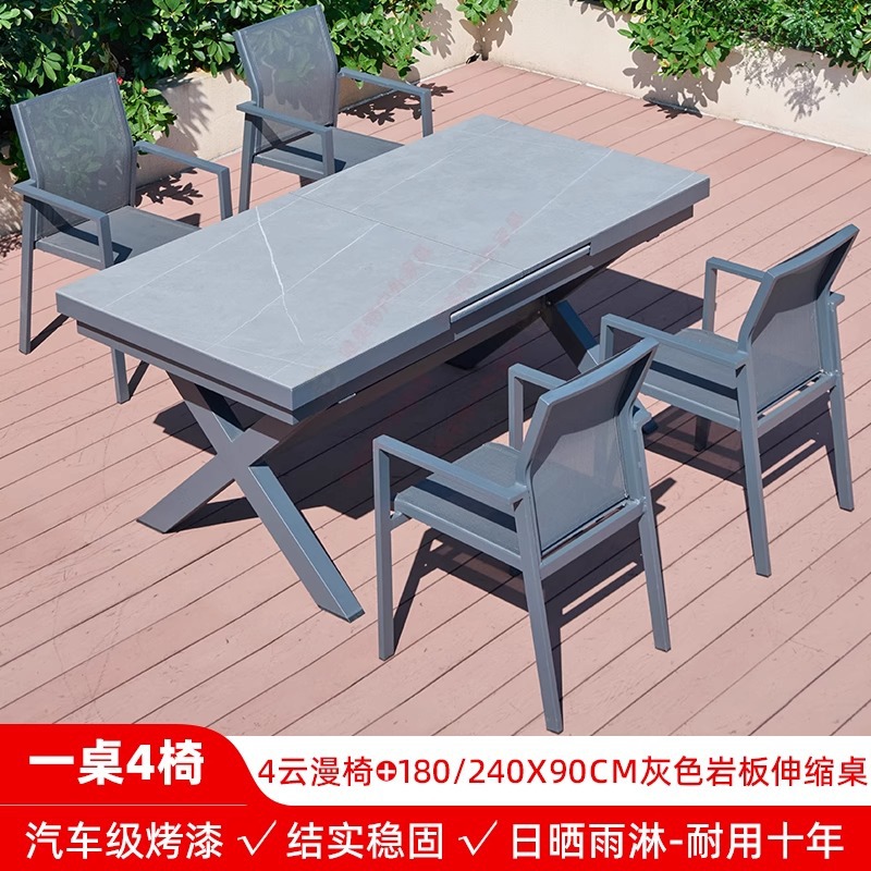 • Yunman 의자 4개 + 180-240X90cm 회색 슬레이트 텔레스코픽 테이블