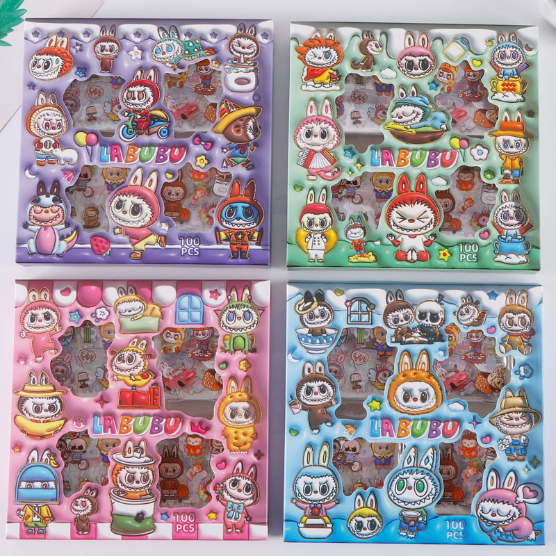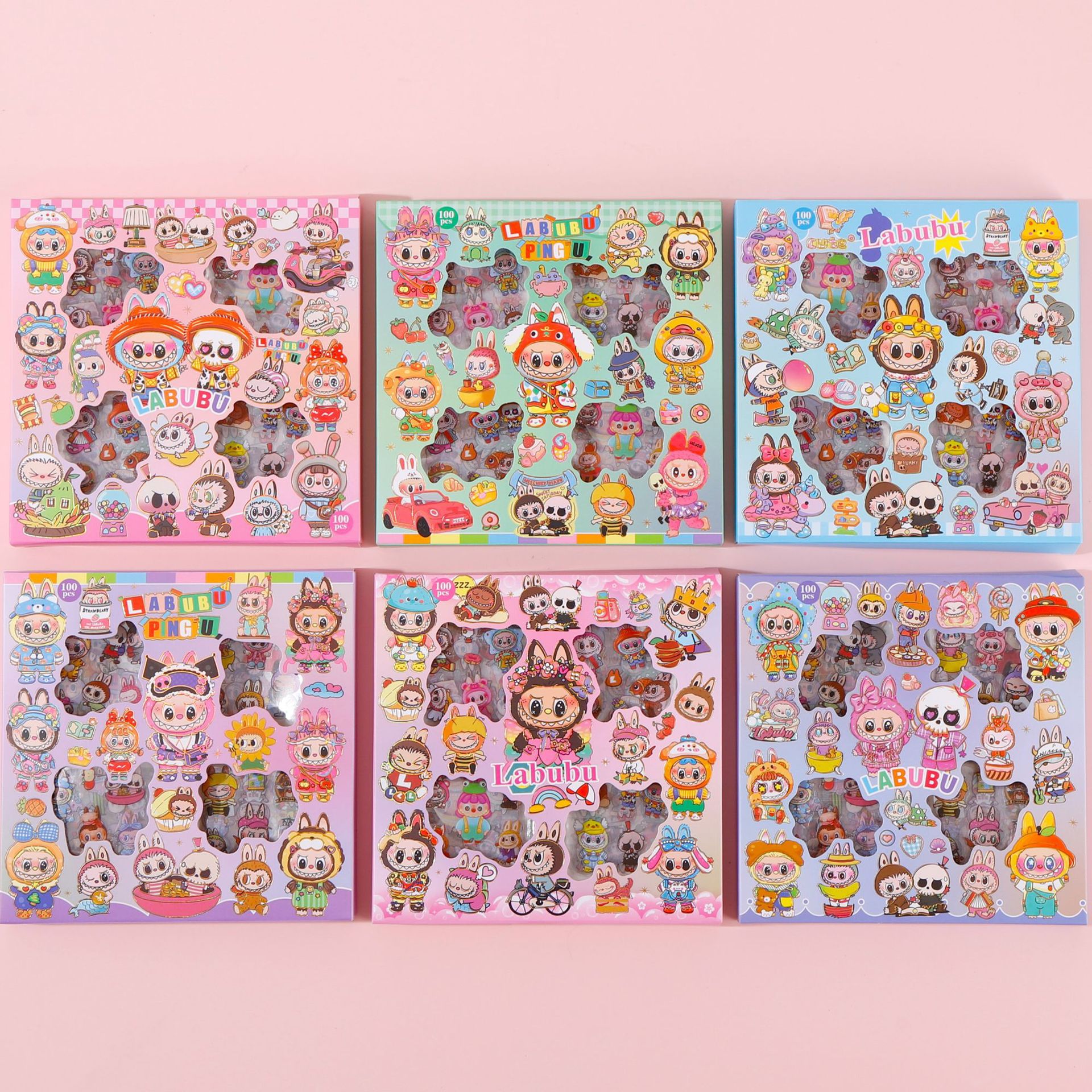 국경을 넘는 새로운 LABUBU 100개 투명 스티커 창의적이고 귀여운 LABUBU 핸드북 PET 방수 스티커