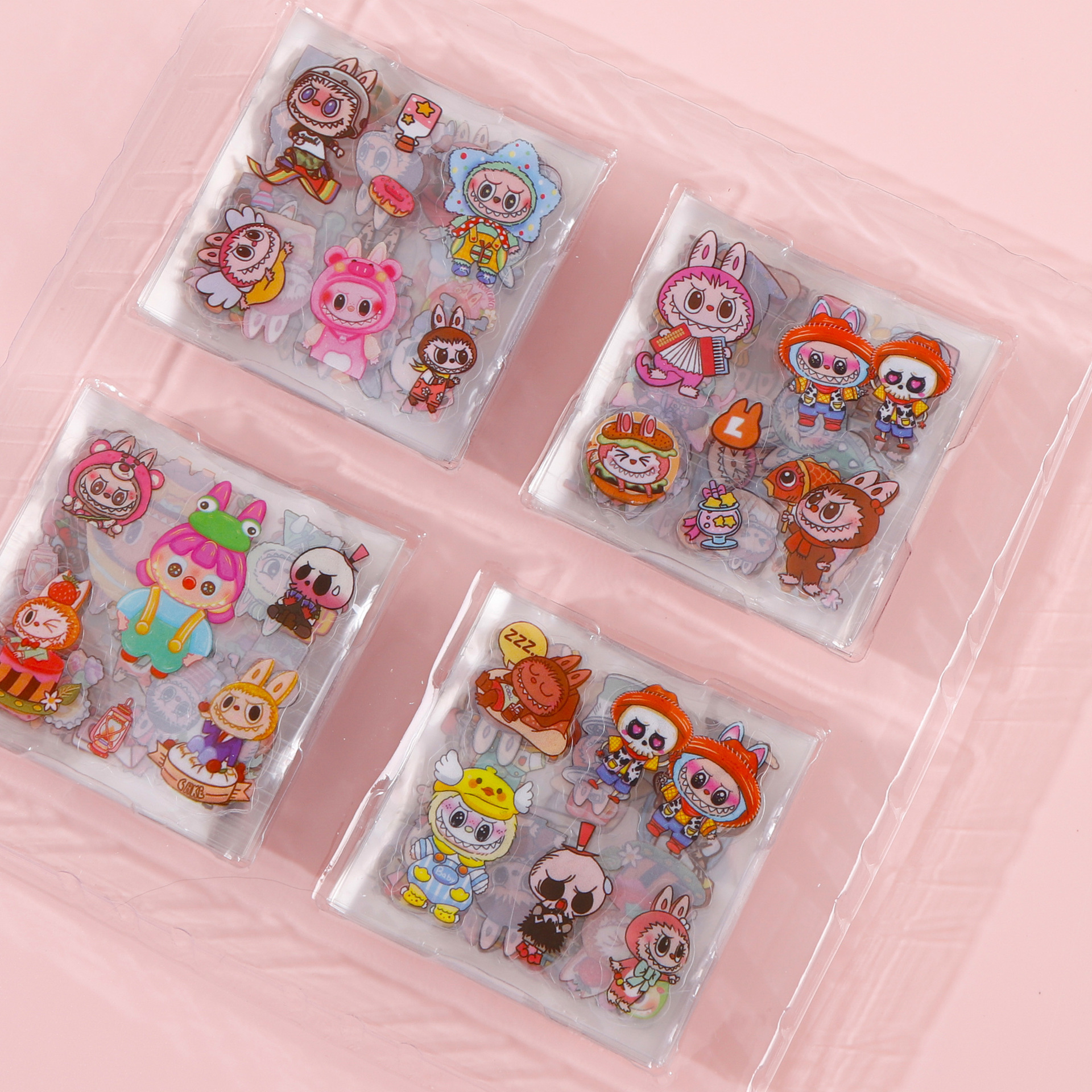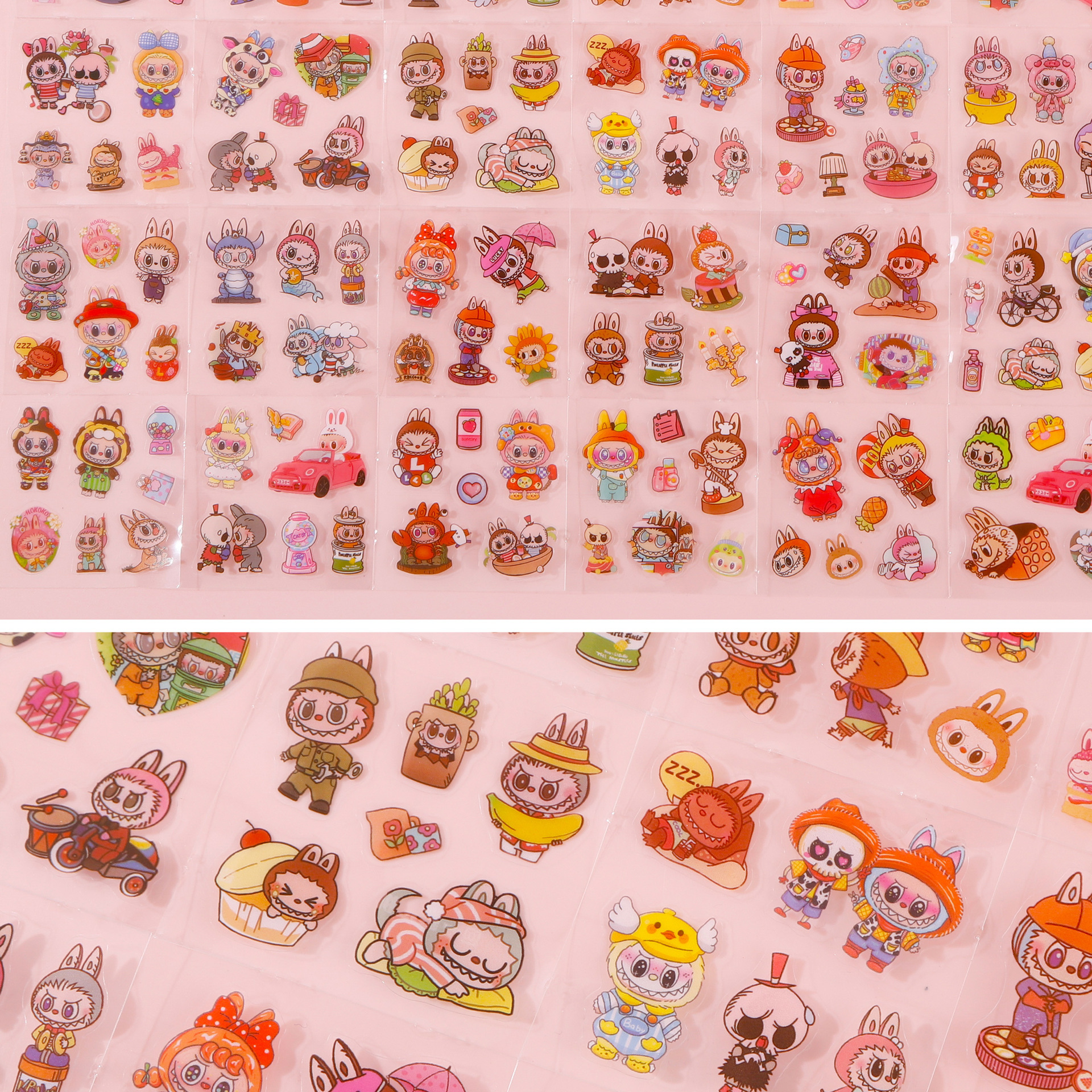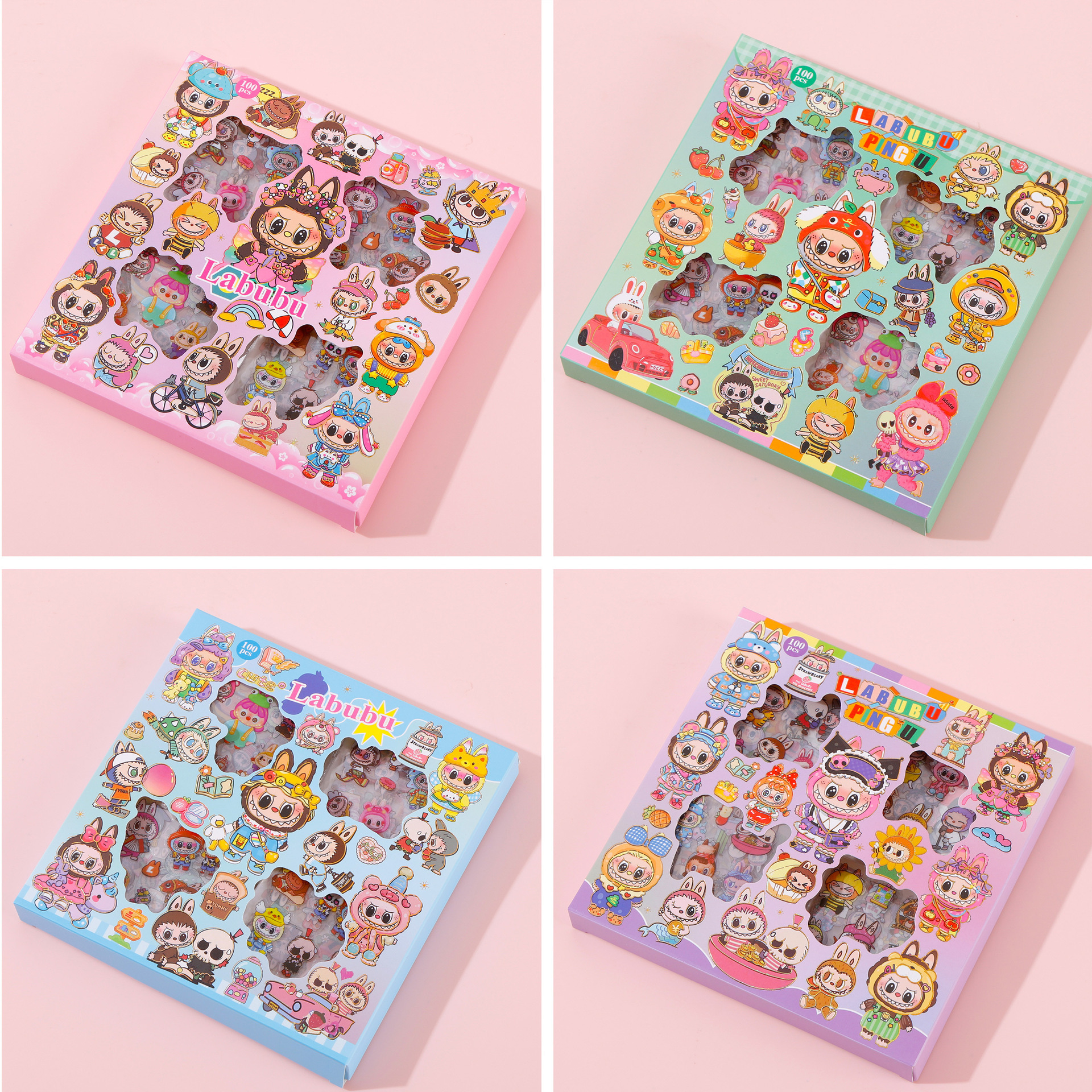 국경을 넘는 새로운 LABUBU 100개 투명 스티커 창의적이고 귀여운 LABUBU 핸드북 PET 방수 스티커스토어 가기