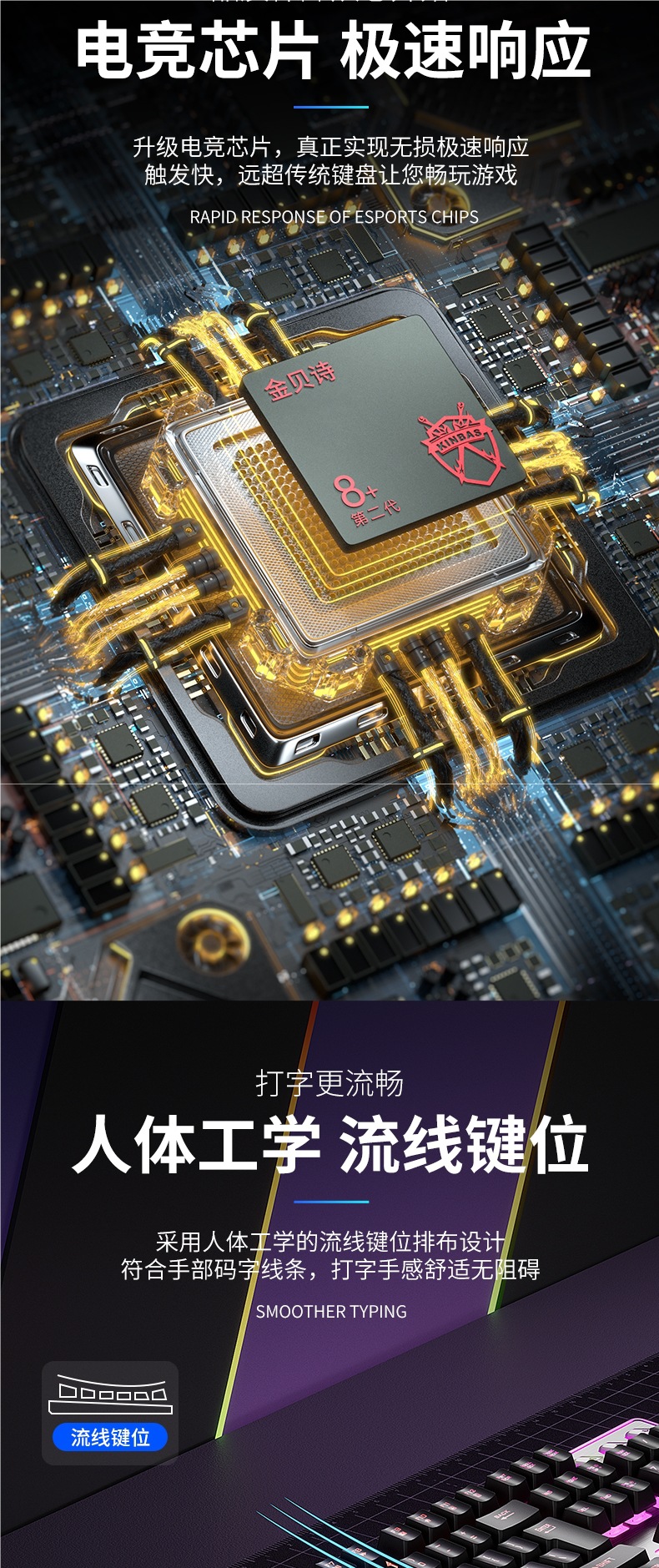 • 블랙 무광 싱글 키보드 [브라운 스위치 느낌] 하이엔드 칩 + 무음 버튼 + 메탈 패널 + 인체공학적 외관