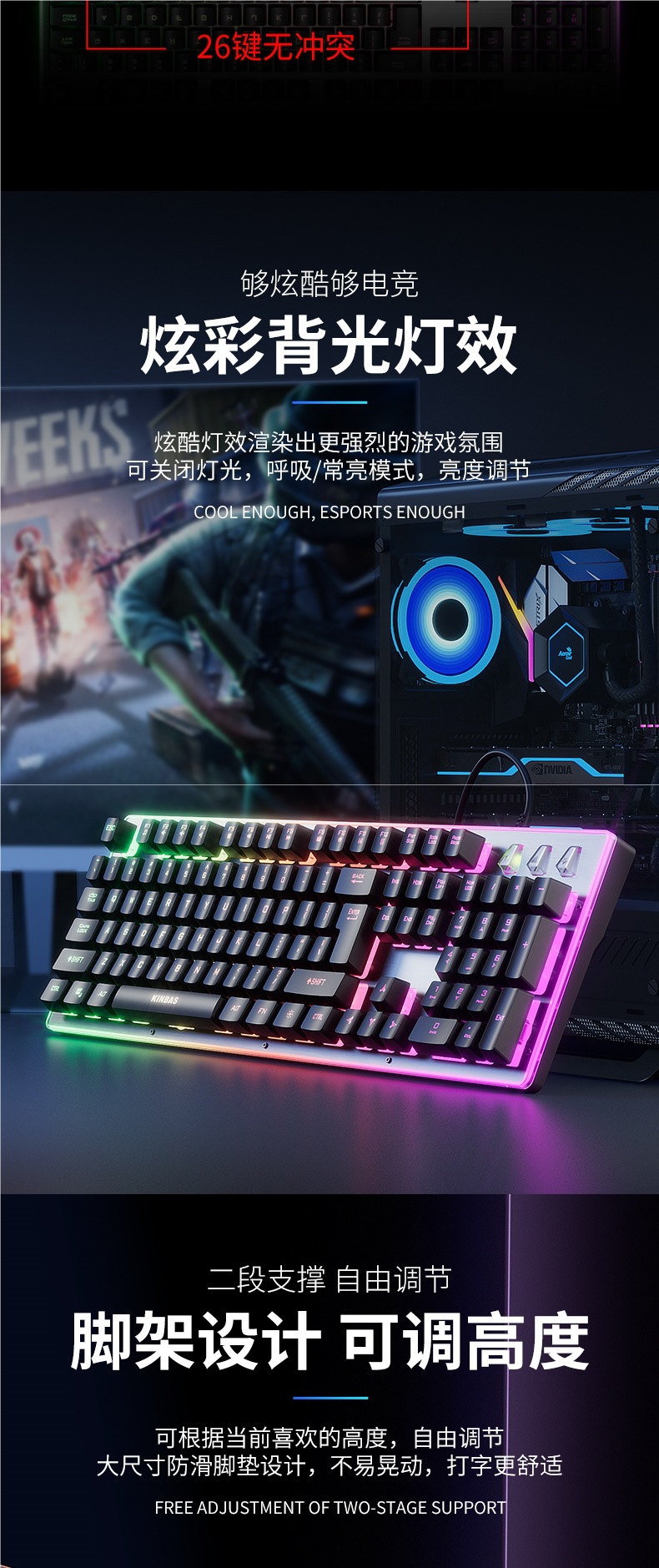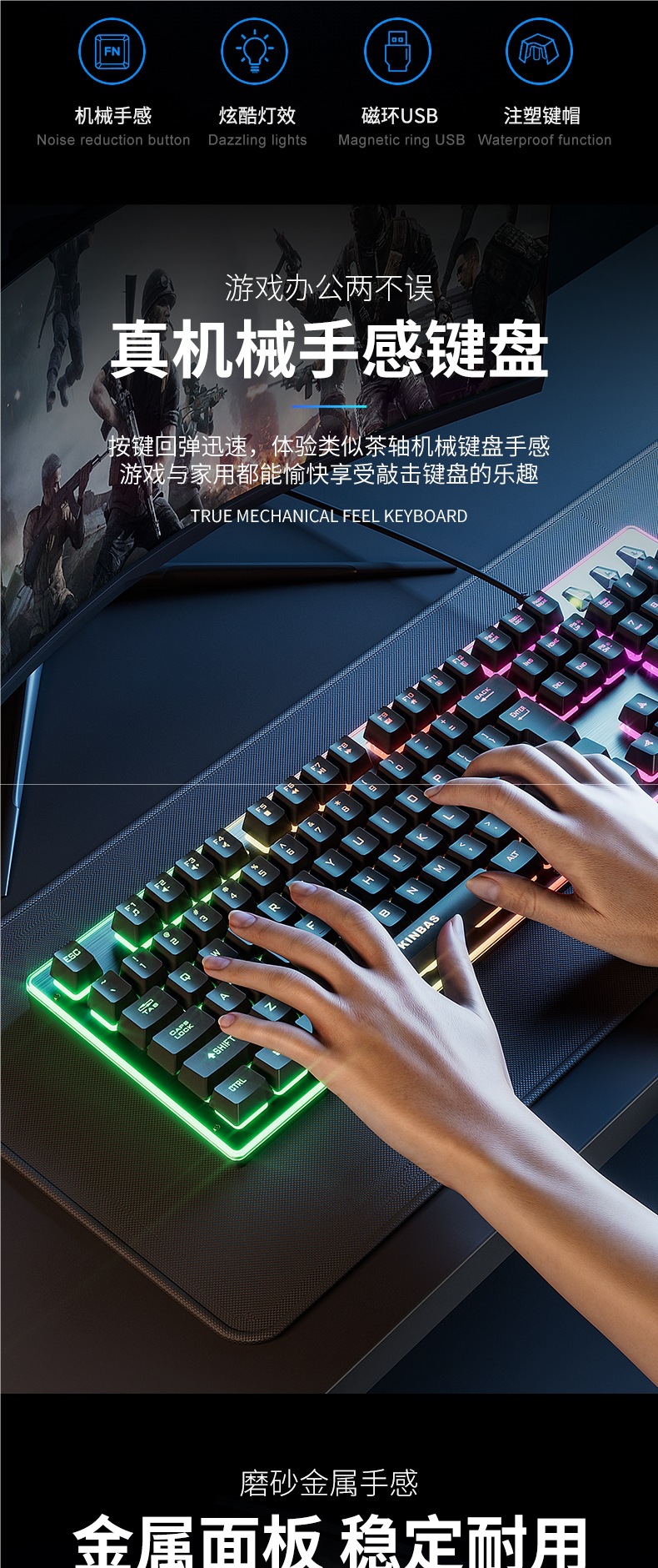 • 검은 무지개 빛 [차 샤프트 느낌] 고급 칩 + 무음 버튼 + 금속 패널 + 멋진 조명 효과 + 인체 공학적 외관 + 데스크탑 및 노트북에 범용 +