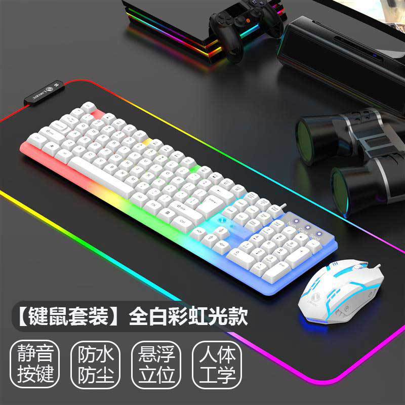 • [키보드 및 마우스 세트] 올 화이트 레인보우 라이트 스타일 ★ 무음 버튼 ★ 부서진 가방으로 교환
