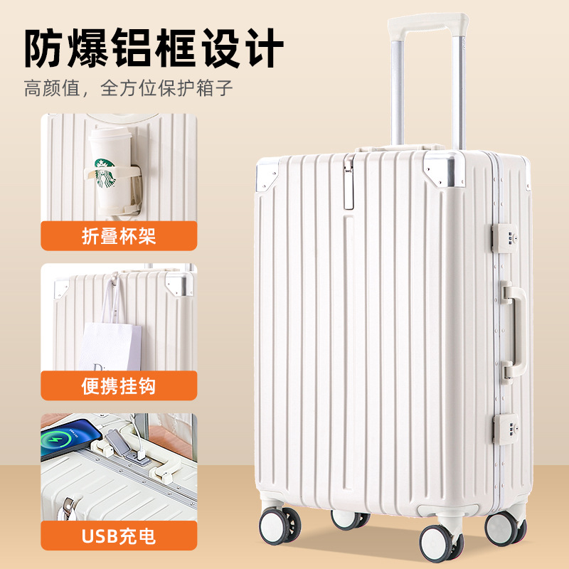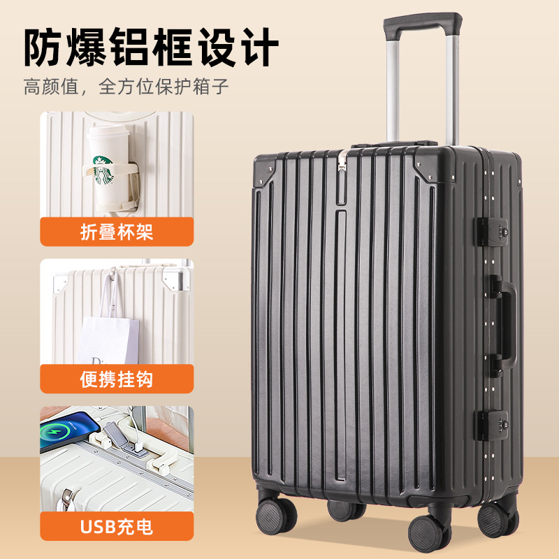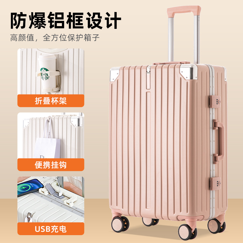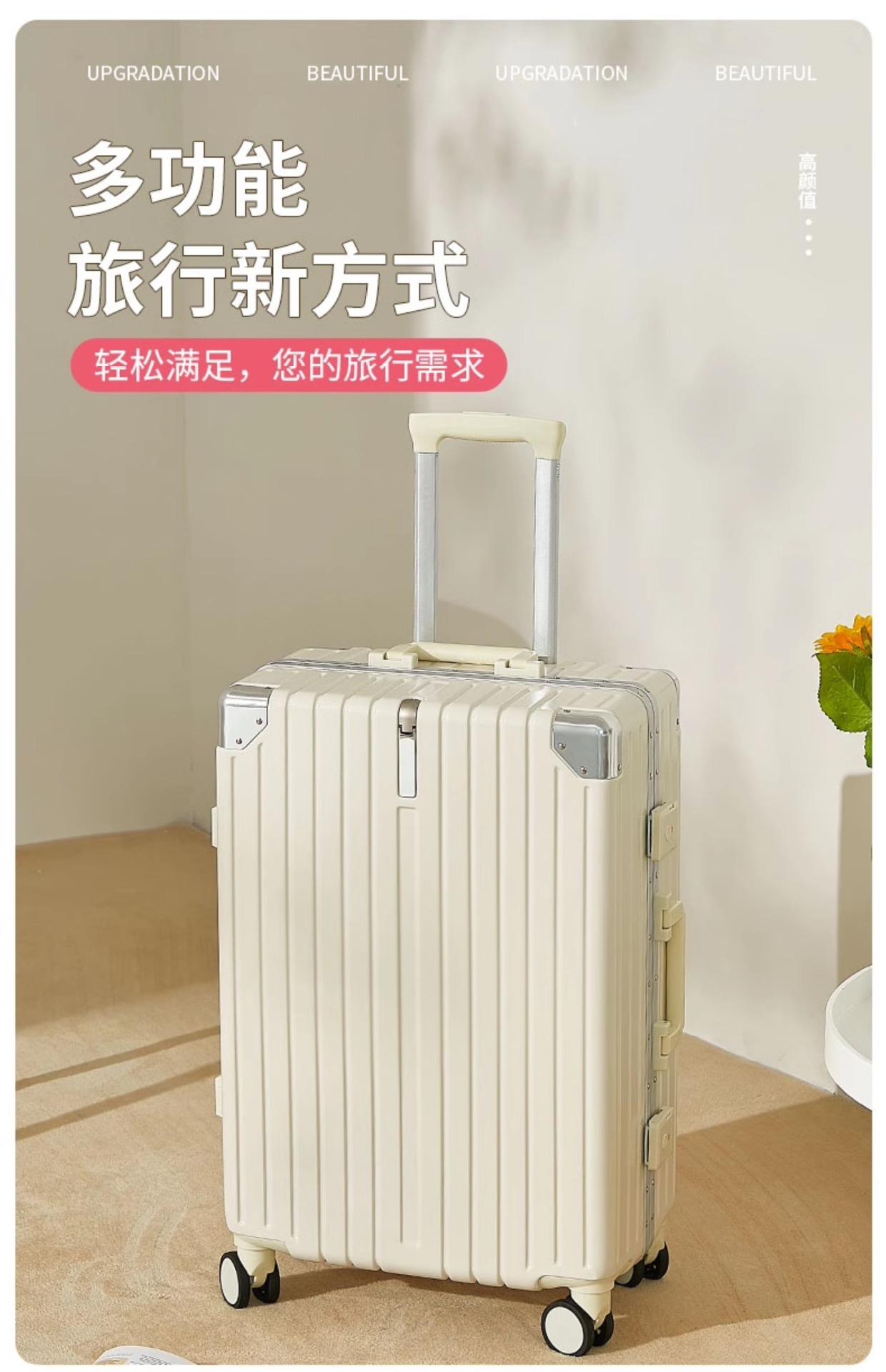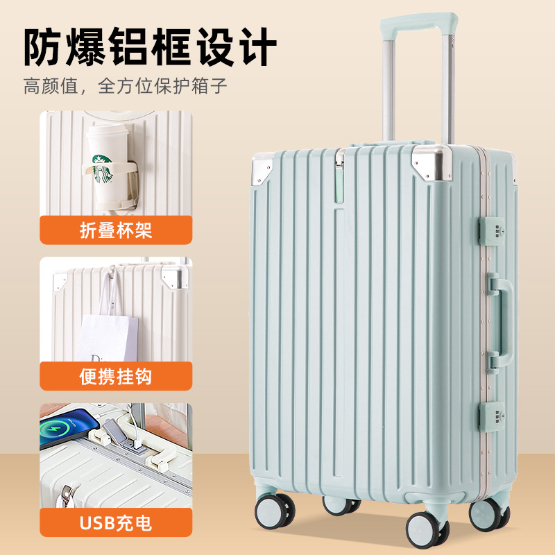 여성용 대용량 다기능 알루미늄 프레임 트롤리 가방, 남성용 내구성 있고 두꺼운 20inch 비밀번호 탑승 여행 가방스토어 가기