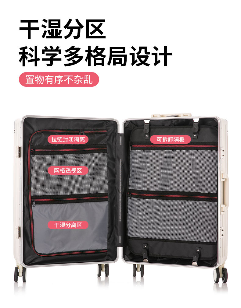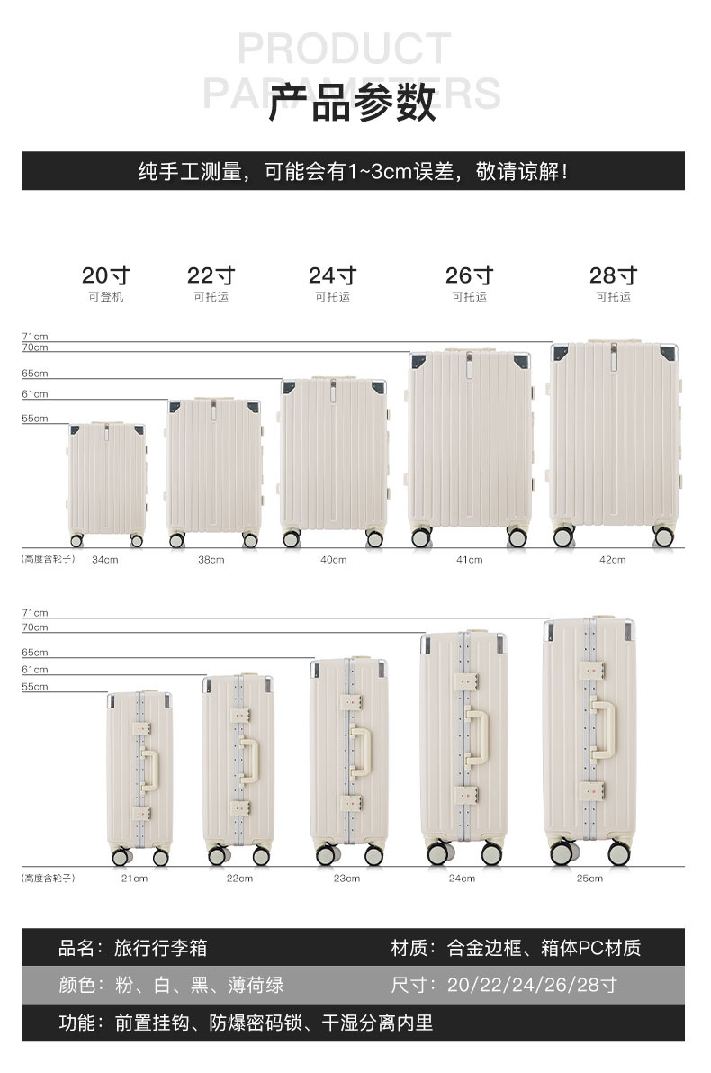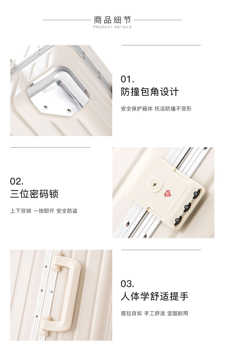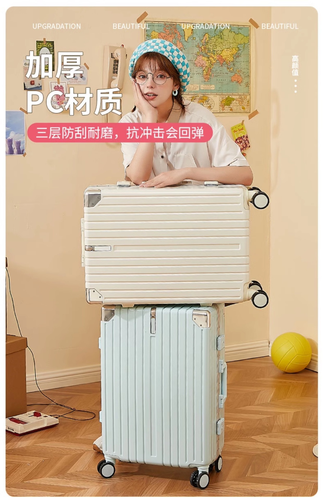 여성용 대용량 다기능 알루미늄 프레임 트롤리 가방, 남성용 내구성 있고 두꺼운 20inch 비밀번호 탑승 여행 가방스토어 가기