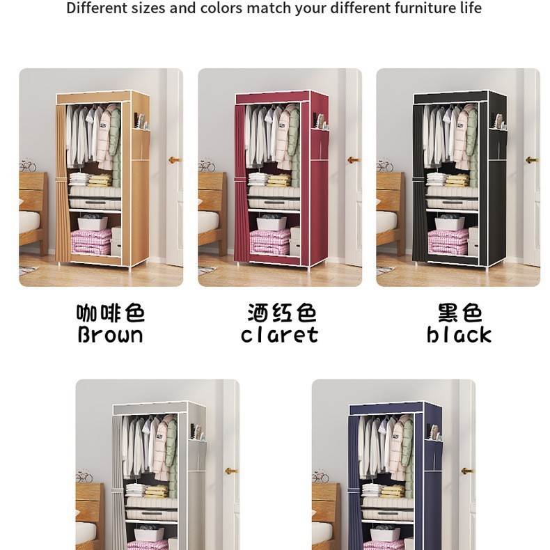 간단한 옷장 강철 파이프 천 옷장 두껍고 강화 된 침실 조립 가정용 옷장 임대 방 옷 보관 선반