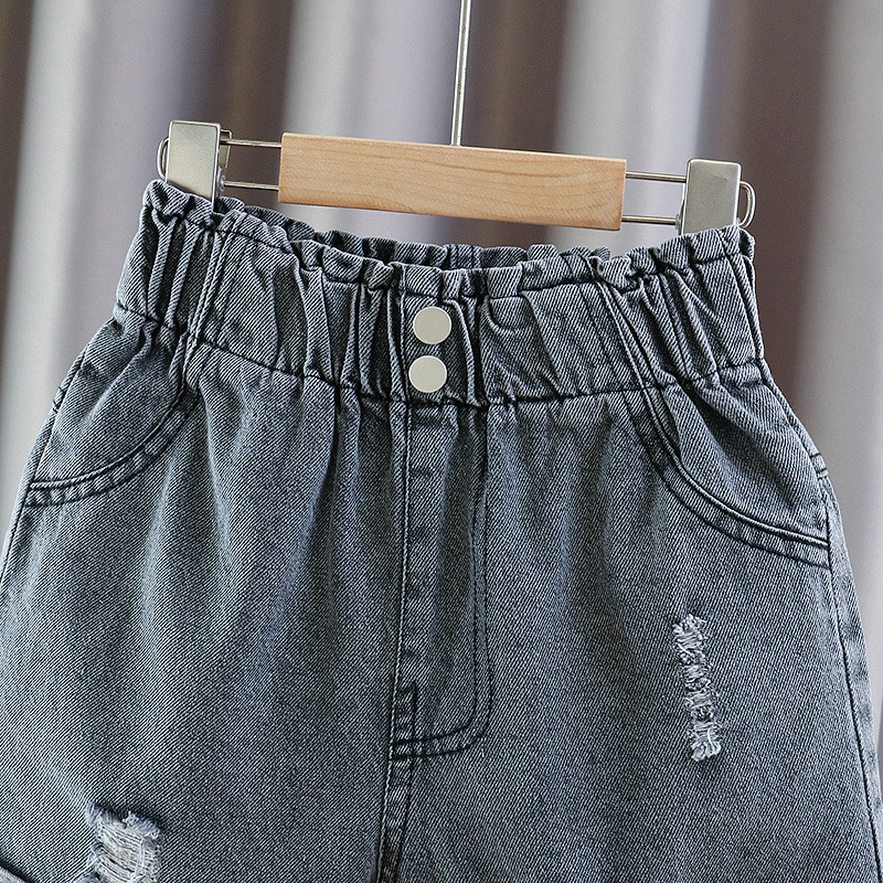 여아 데님 반바지 여름 신작 큰 아동복 패셔너블하고 세련된 여아 인터넷 연예인 핫팬츠 아동 청바지스토어 가기