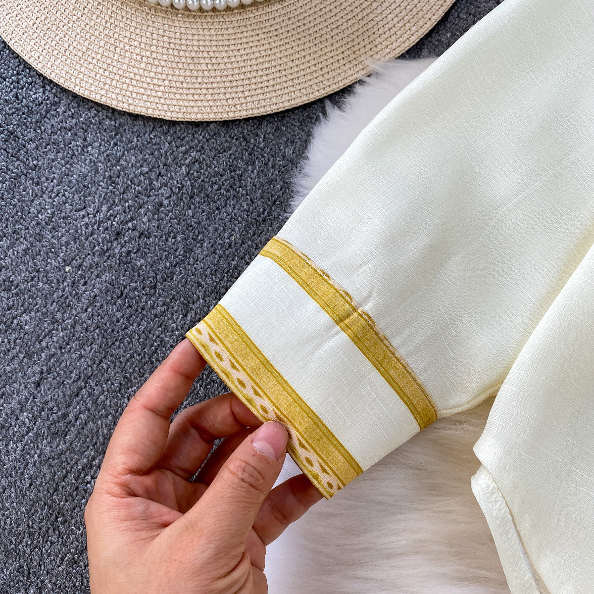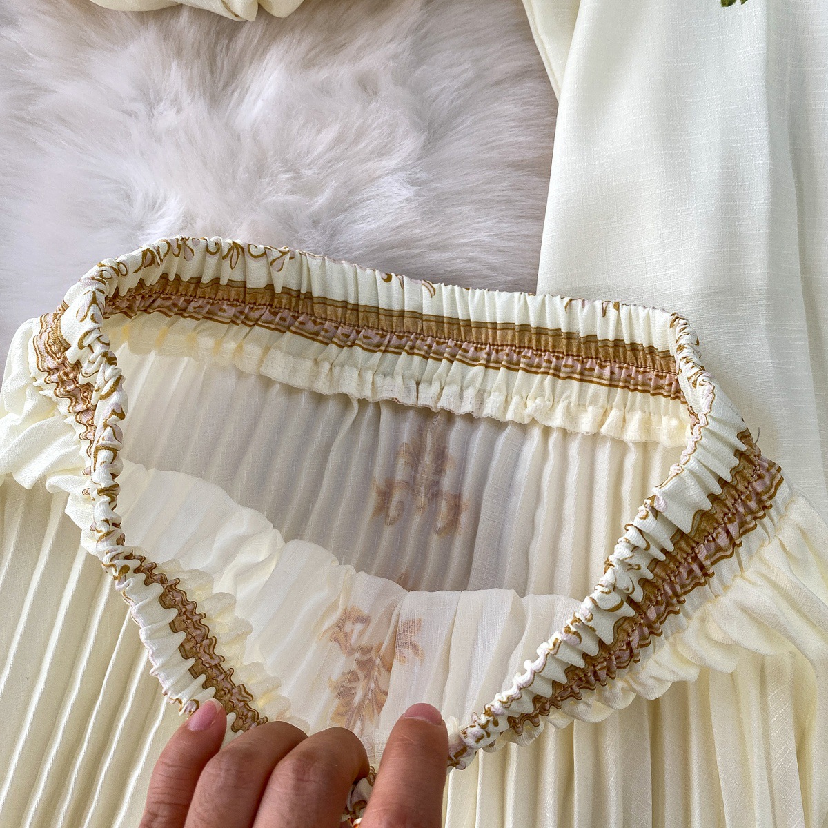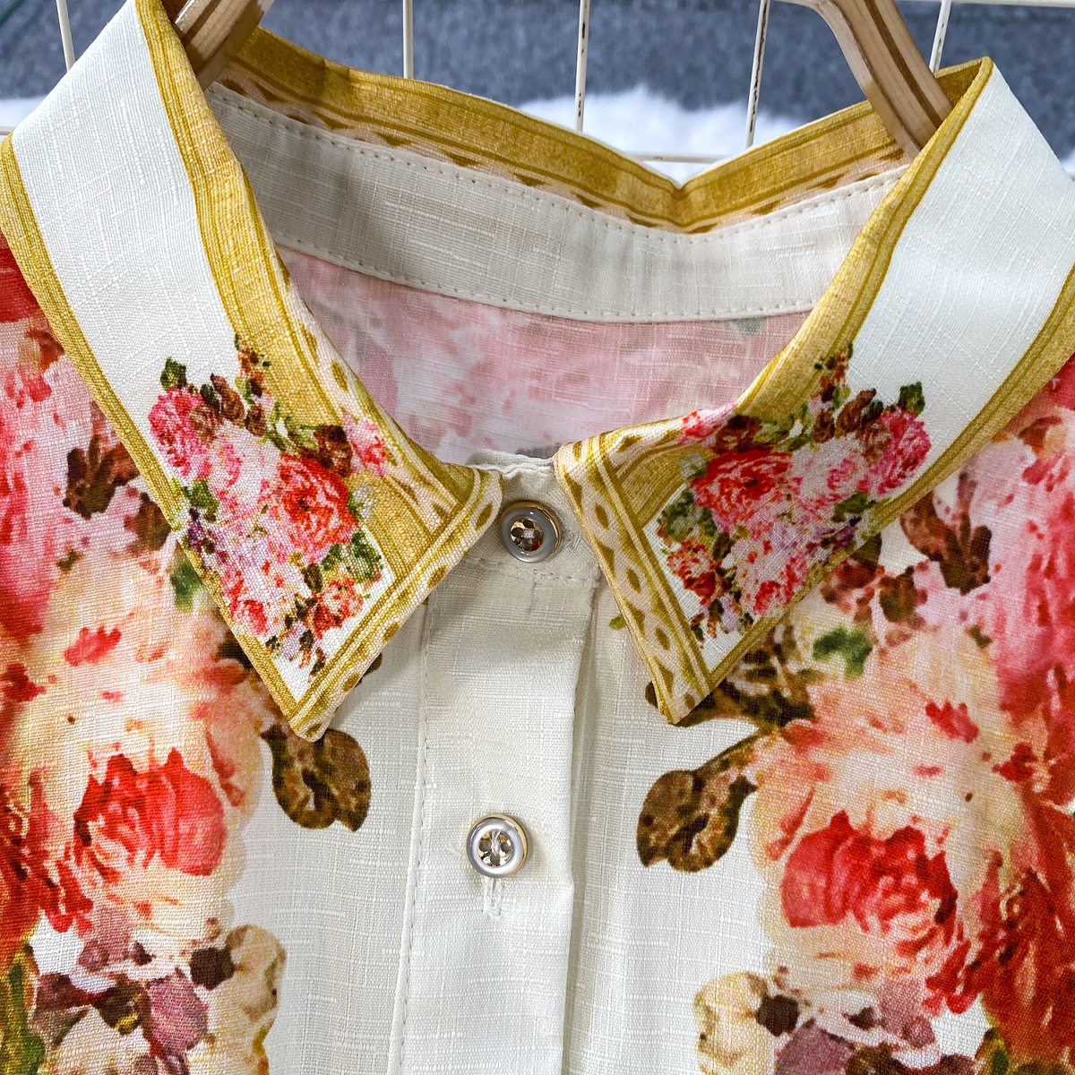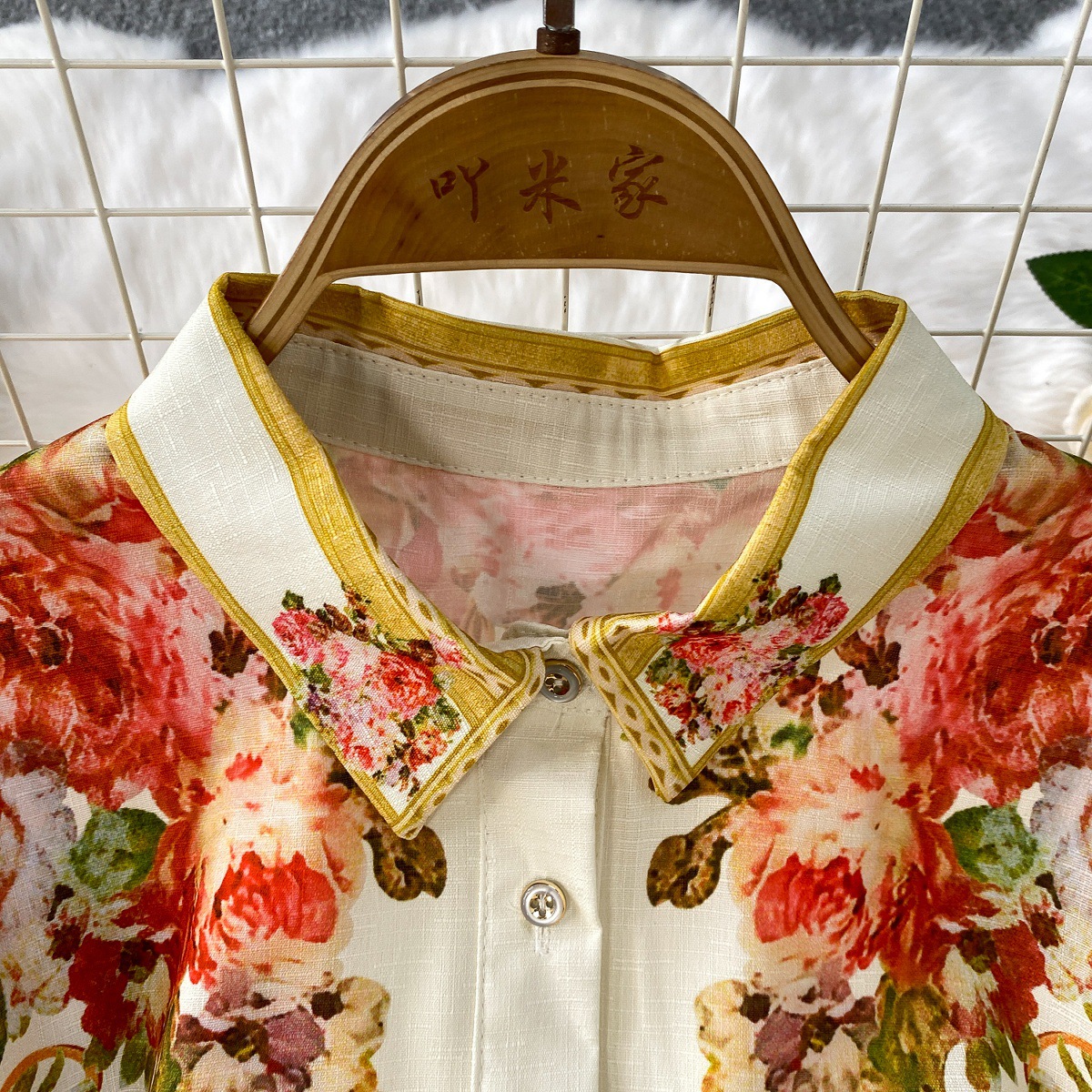 유럽과 미국의 복고풍 스타일 프린트 싱글 브레스트 라펠 긴팔 셔츠 + 하이 웨이스트 슬림 플레어 플리츠 스커트 슈트