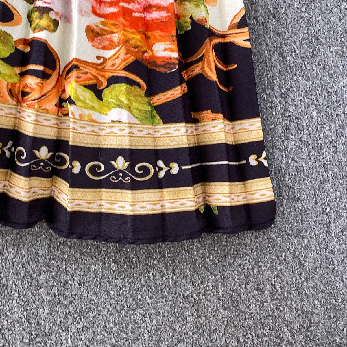 유럽과 미국의 복고풍 스타일 프린트 싱글 브레스트 라펠 긴팔 셔츠 + 하이 웨이스트 슬림 플레어 플리츠 스커트 슈트스토어 가기