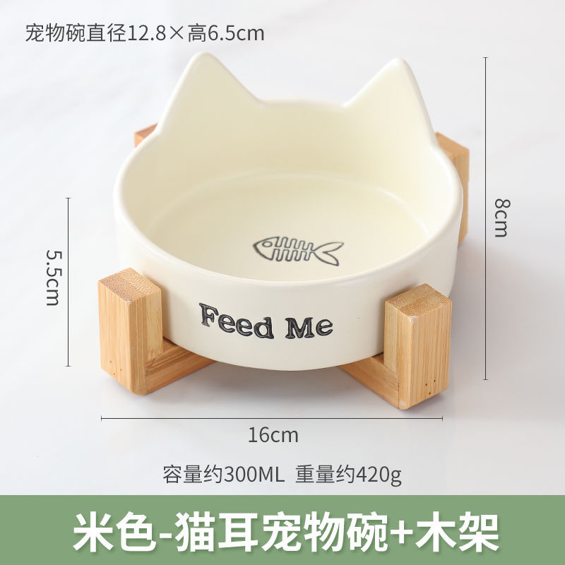 • 신제품 : 쌍귀고양이 밥그릇 화이트 [나무틀 포함]