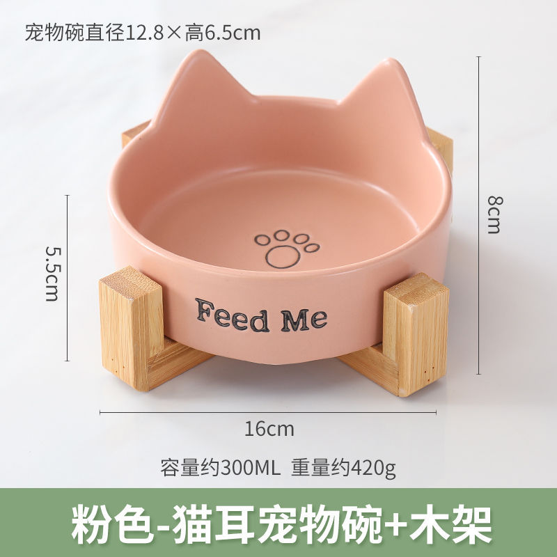 • 신제품 : 쌍귀고양이 밥그릇 핑크 [나무틀 포함]