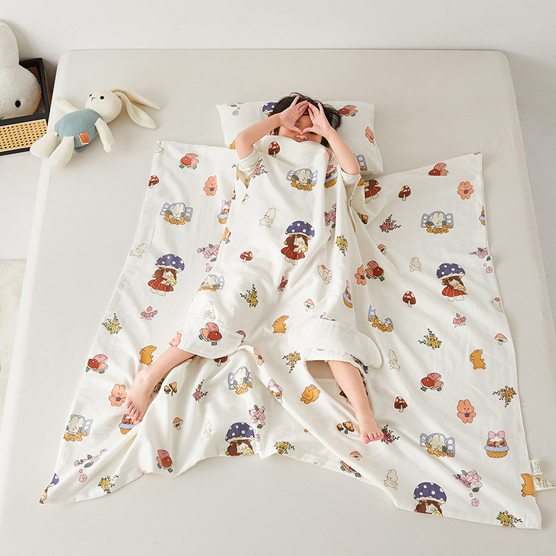 새로운 면 A급 4겹 거즈 배꼽 보호 및 발차기 방지 다기능 담요 아기 및 어린이 순면 싱글 여름 이불