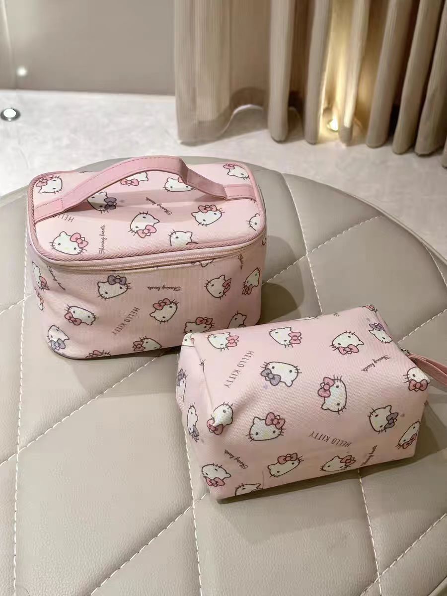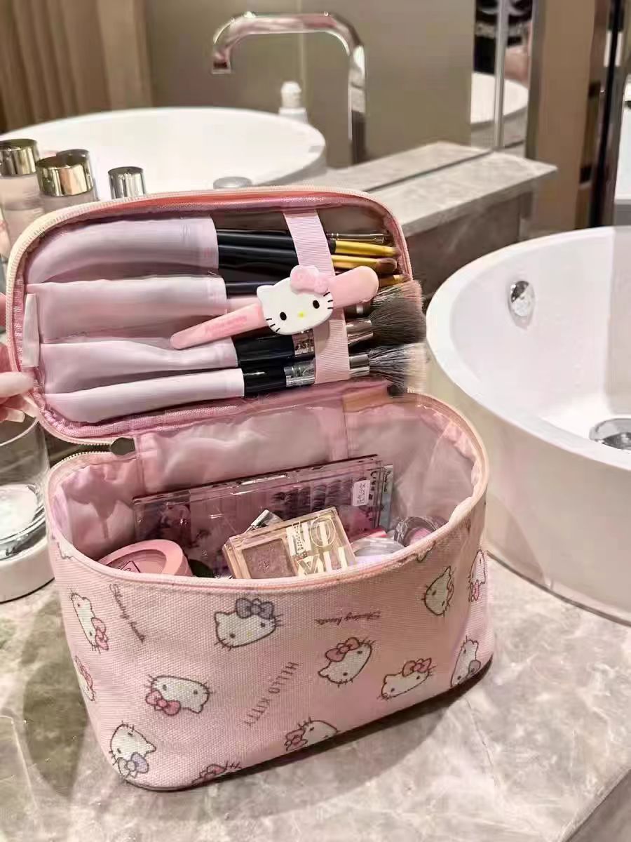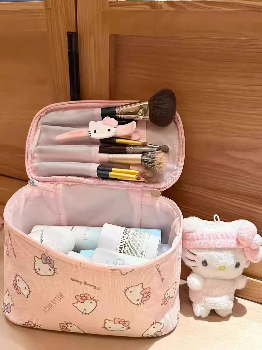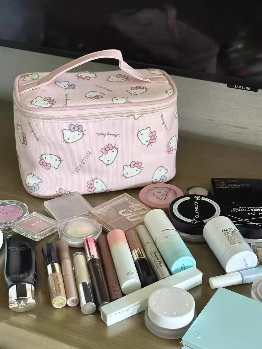 새로운 키티 귀여운 대용량 휴대용 수납 핸드백 여행 세면 용품 입체 화장품 가방
