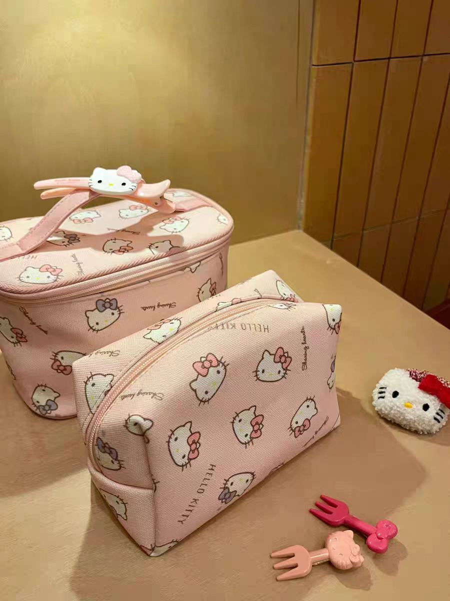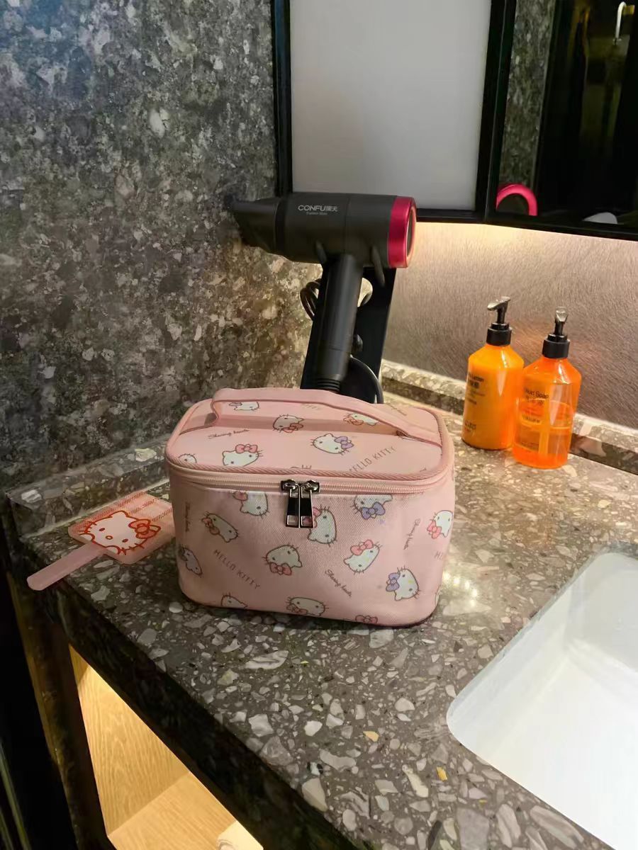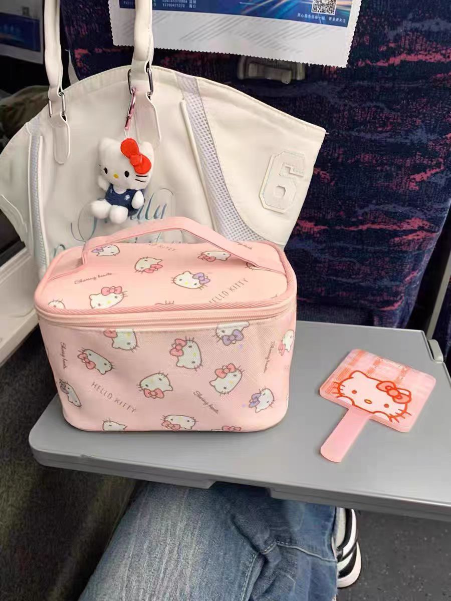 새로운 키티 귀여운 대용량 휴대용 수납 핸드백 여행 세면 용품 입체 화장품 가방스토어 가기