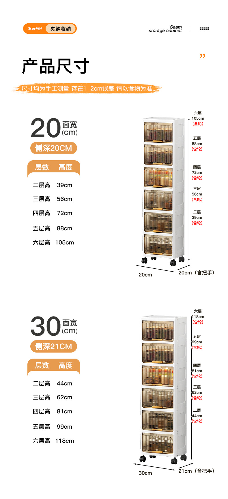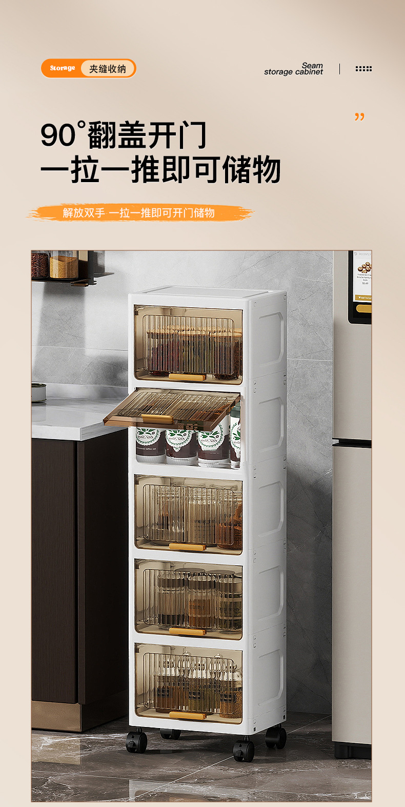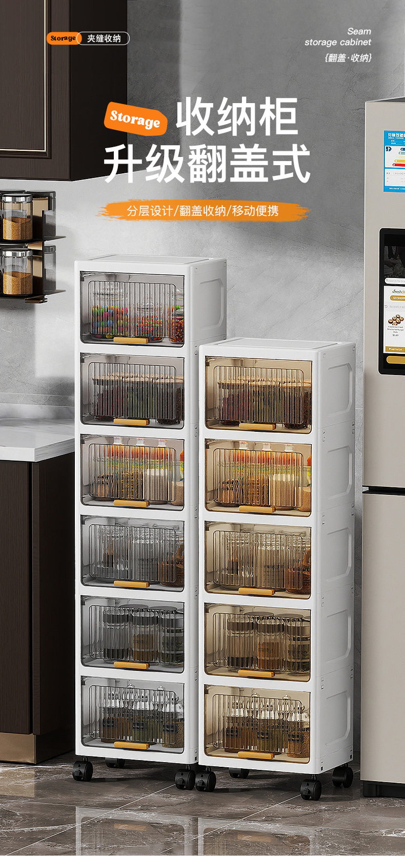 20/30CM 플립 탑 잡화 보관 및 정리 랙 욕실 보관 랙 주방 조미료 보관 캐비닛 스낵 캐비닛