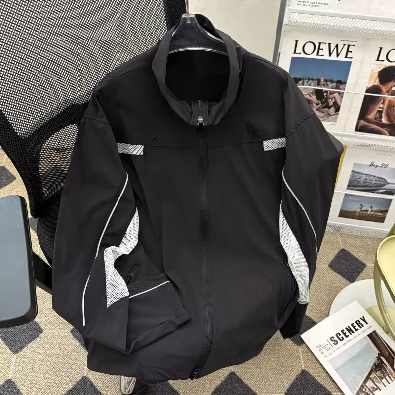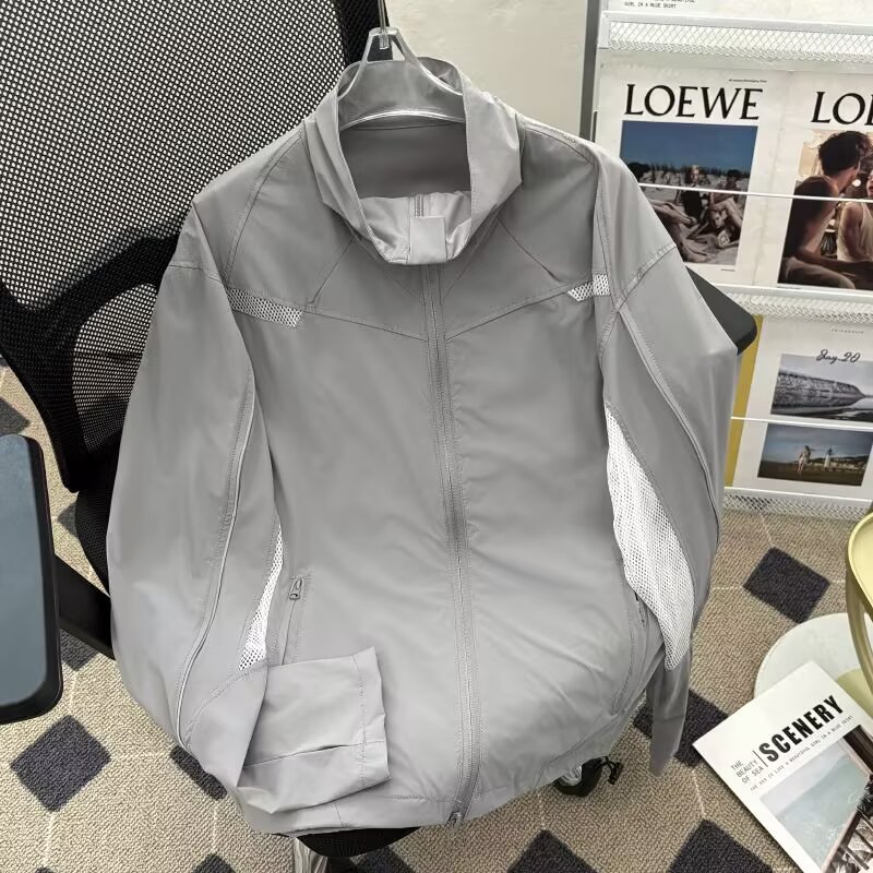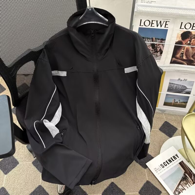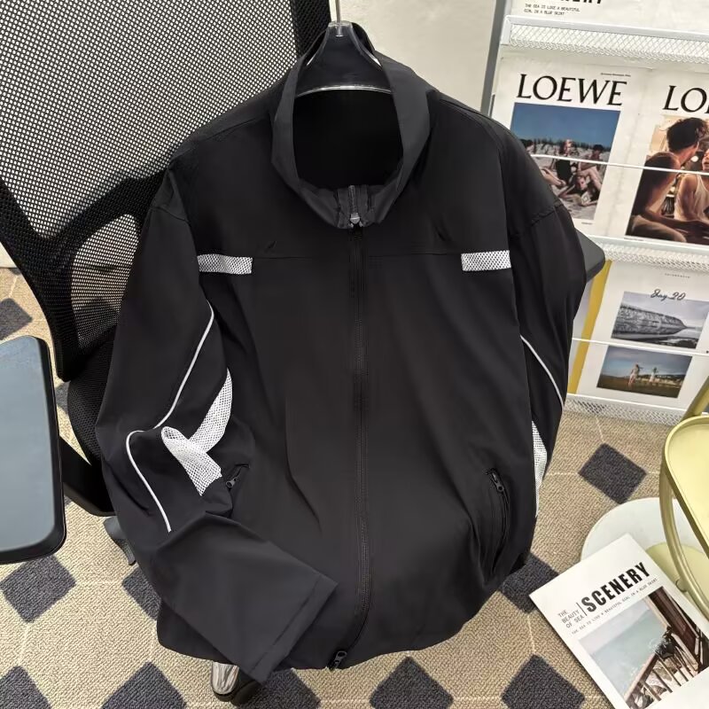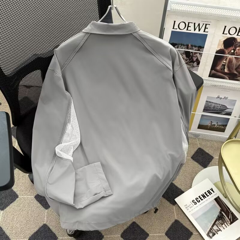 남성용 미국식 속건성 얼음 실크 시원한 자외선 차단 의류, 여름용 얇은 고급 재킷, 야외 통기성 스플라이스 재킷스토어 가기
