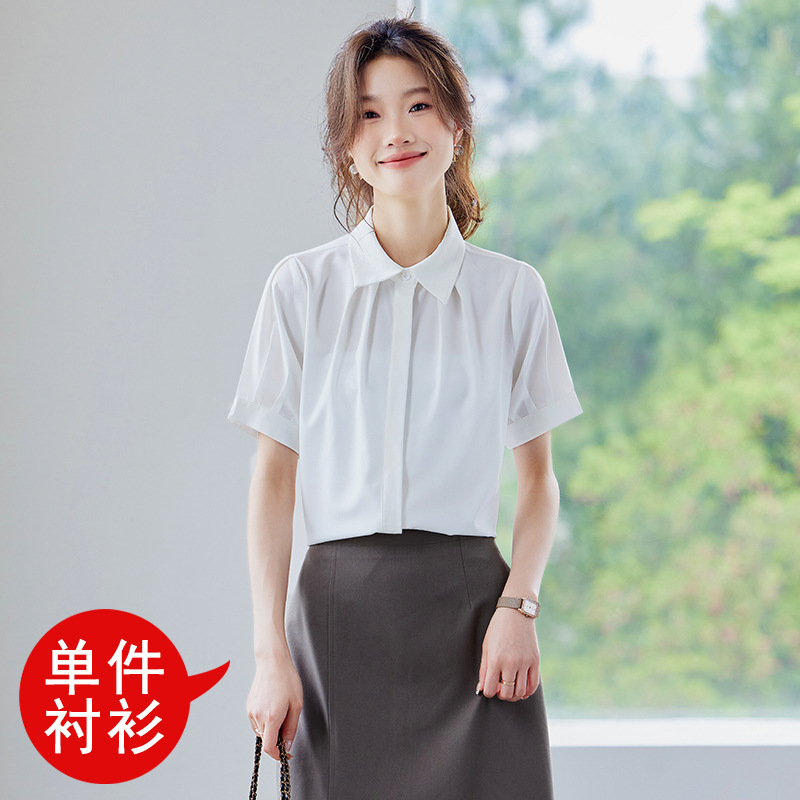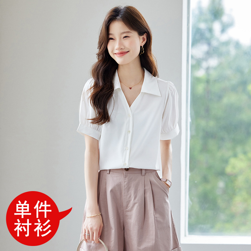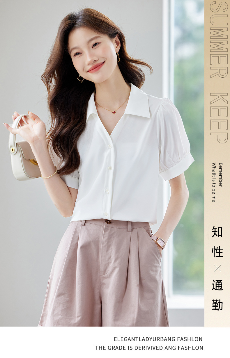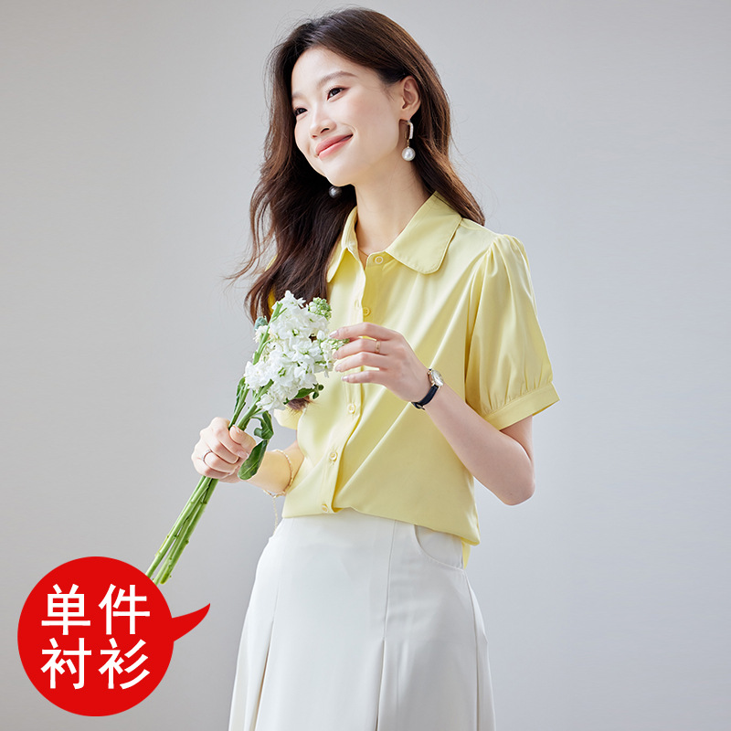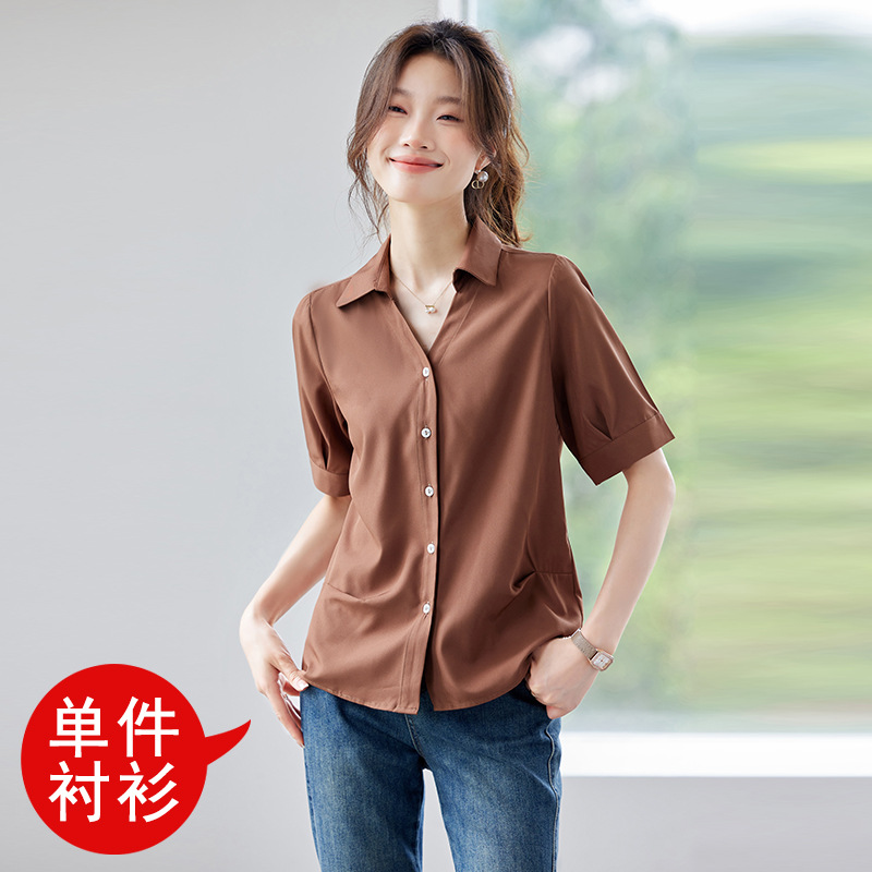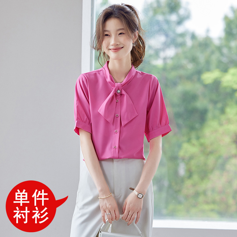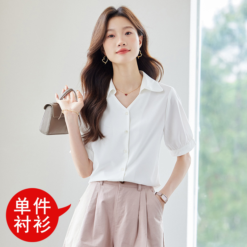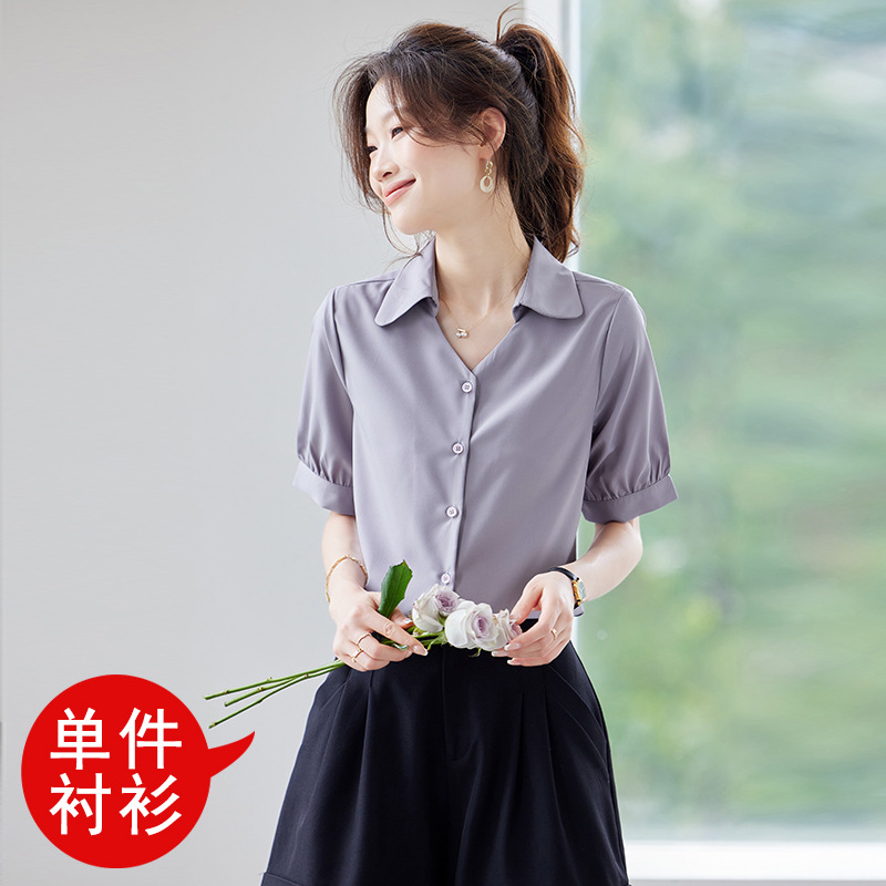 여름 반팔 셔츠, 여성 셔츠, 여름 단색, 전문 캐주얼, 심플, 슬림, 새로운 스타일, 다재다능하고 트렌디한 상의