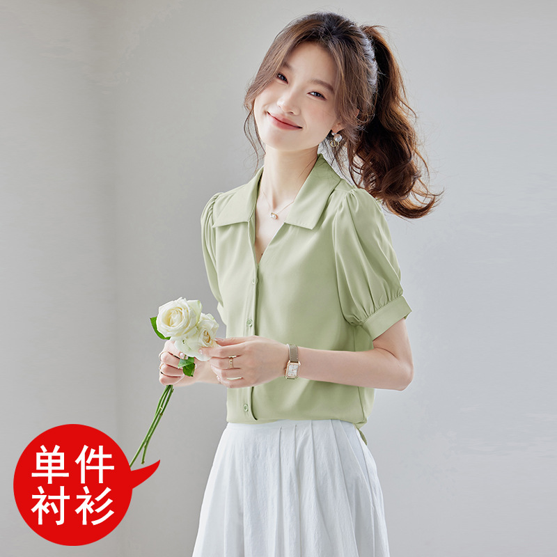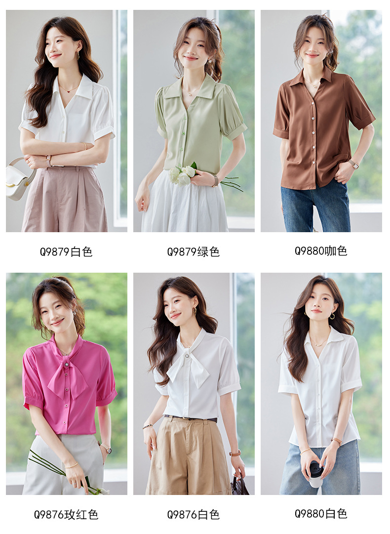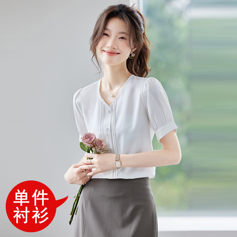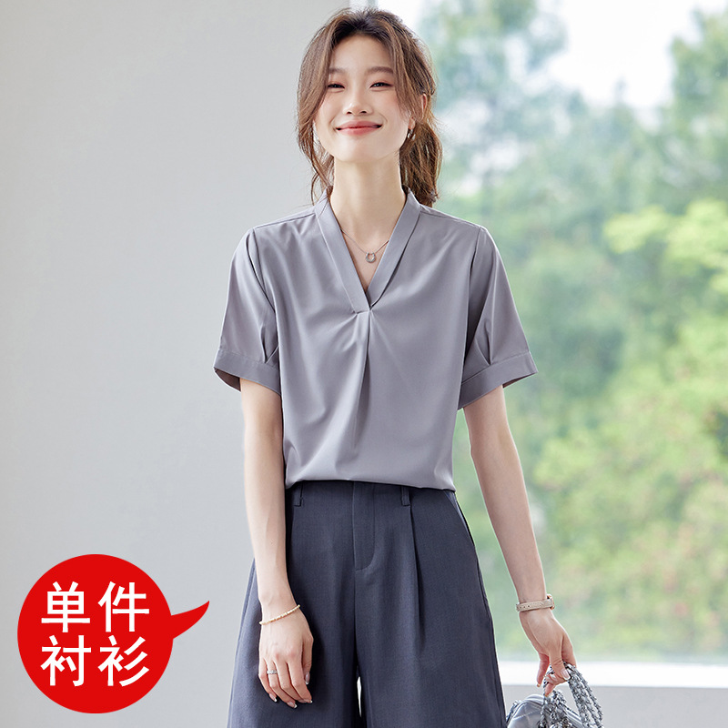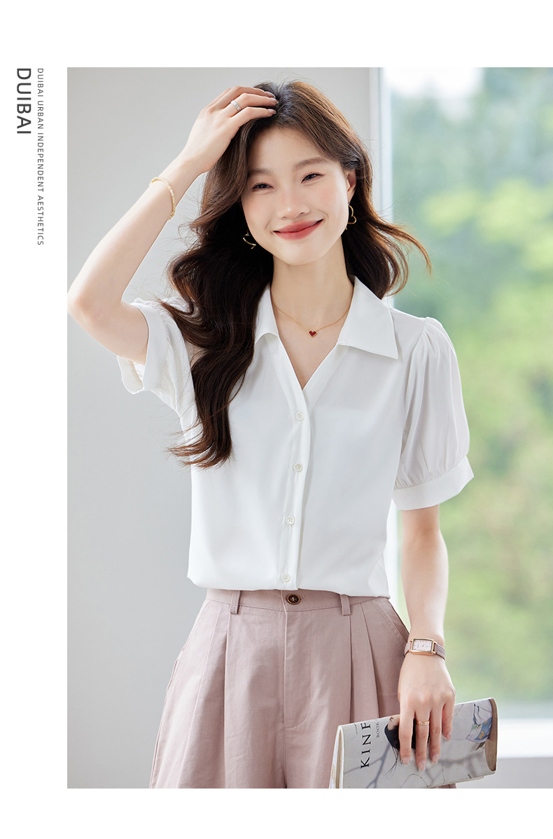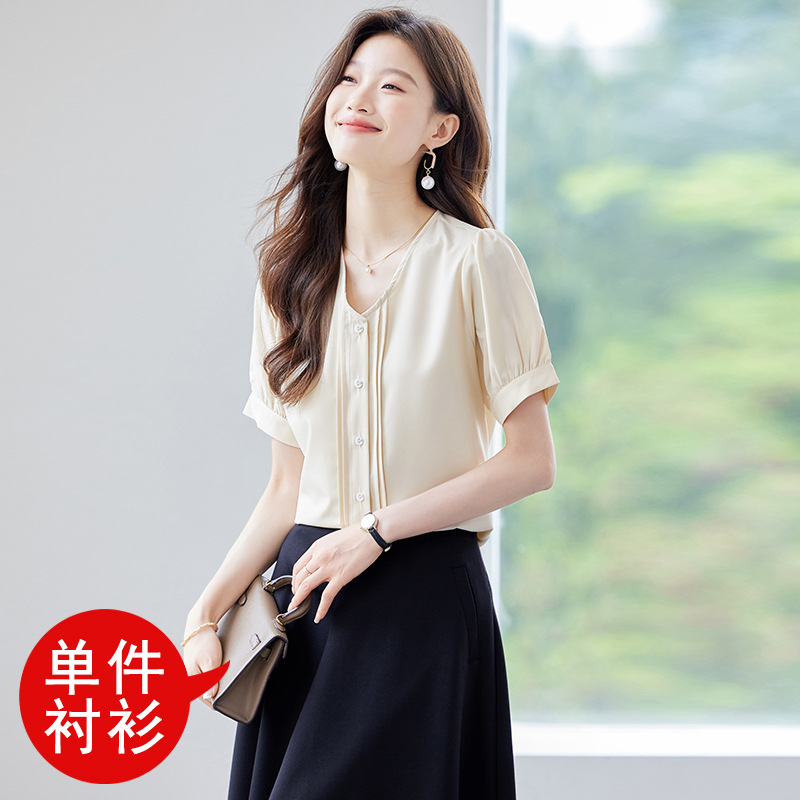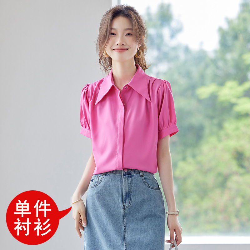 여름 반팔 셔츠, 여성 셔츠, 여름 단색, 전문 캐주얼, 심플, 슬림, 새로운 스타일, 다재다능하고 트렌디한 상의