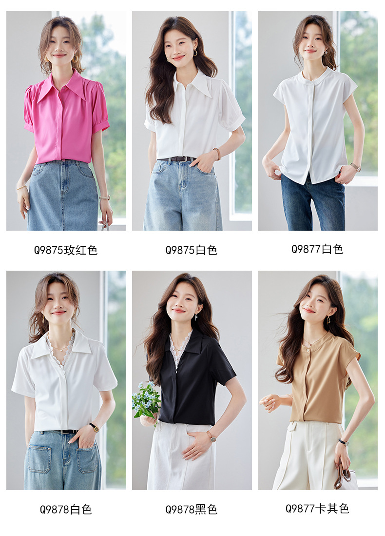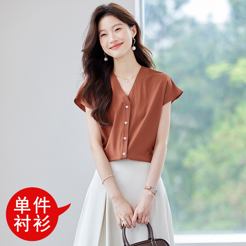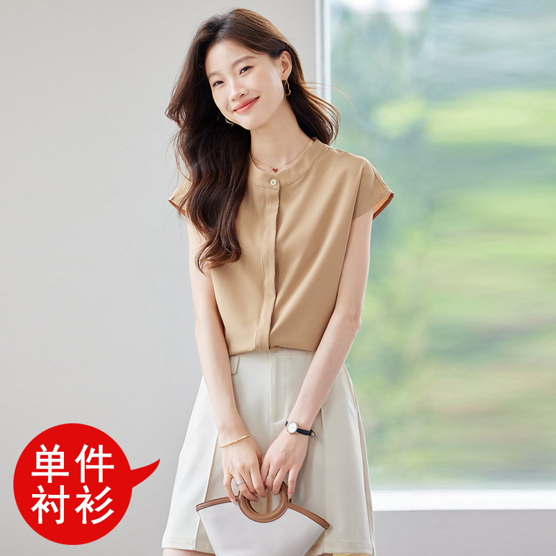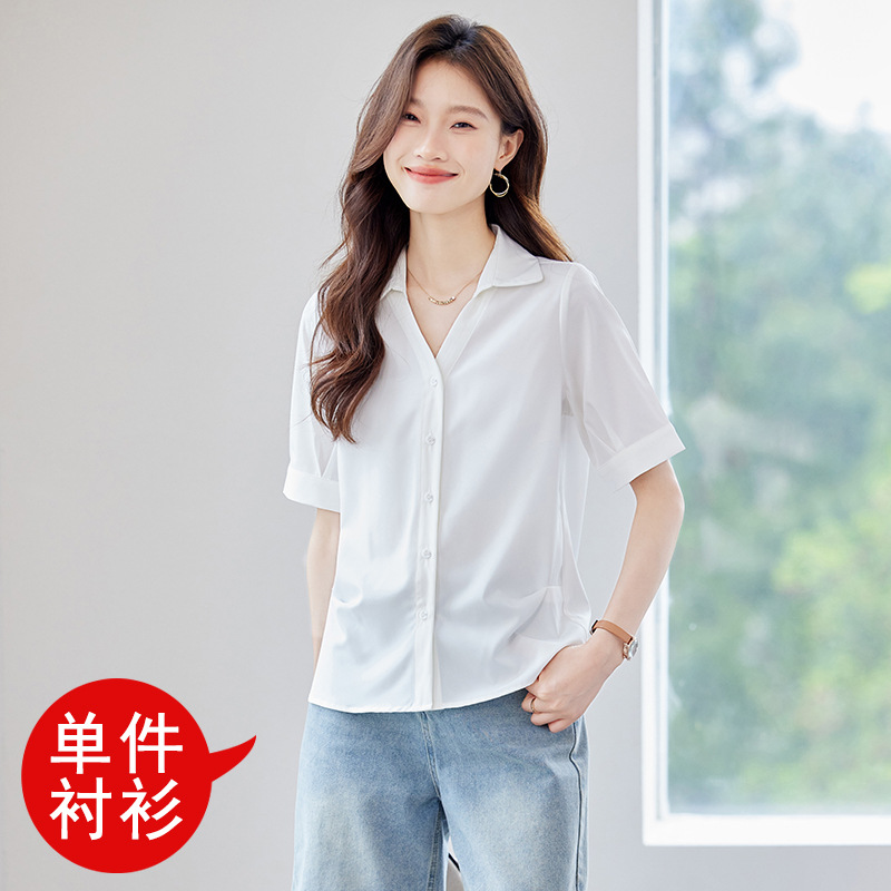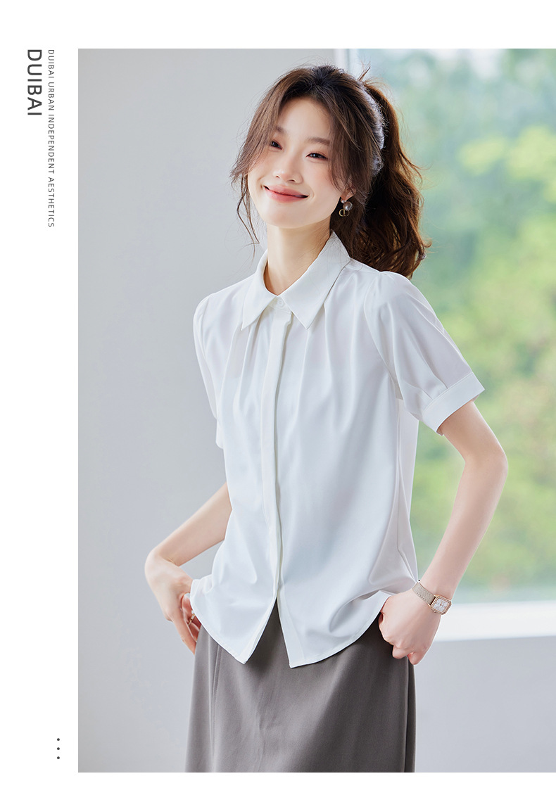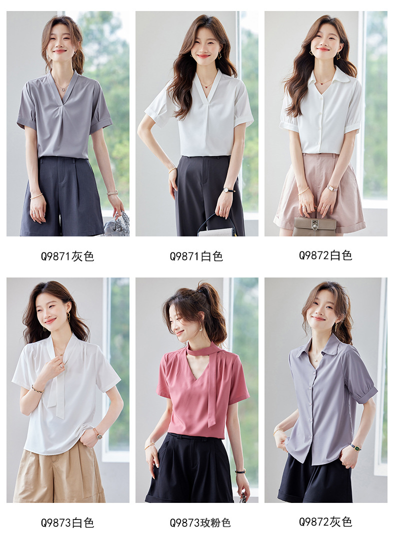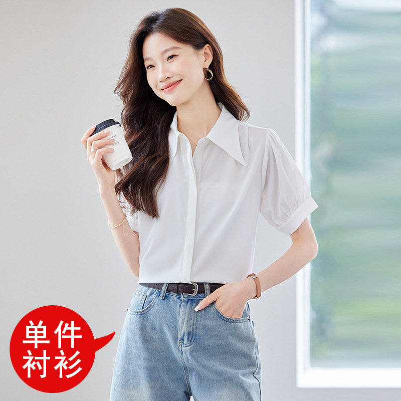 여름 반팔 셔츠, 여성 셔츠, 여름 단색, 전문 캐주얼, 심플, 슬림, 새로운 스타일, 다재다능하고 트렌디한 상의