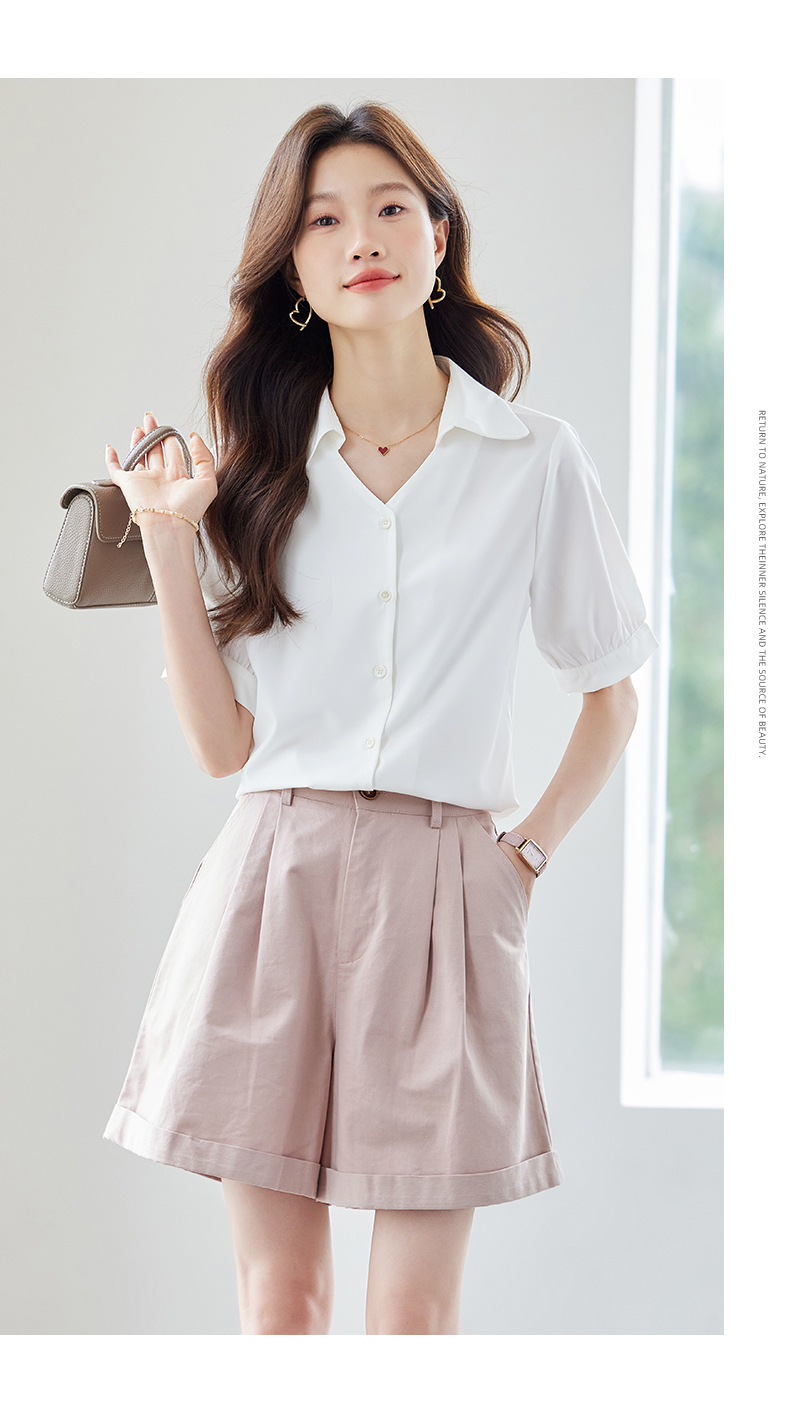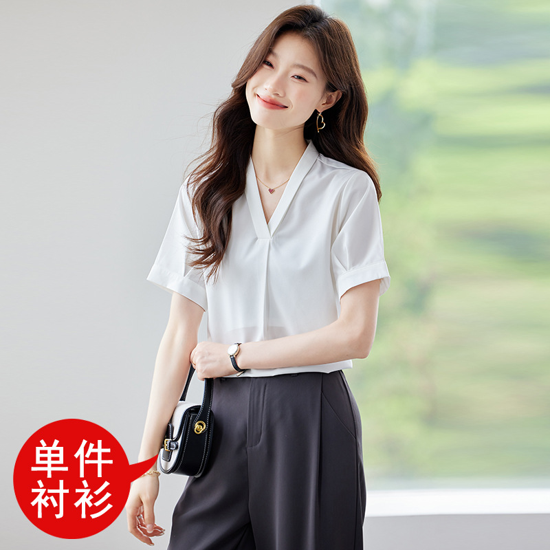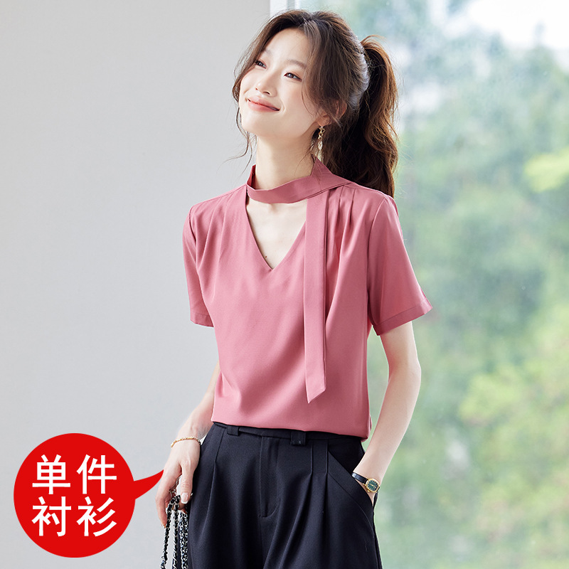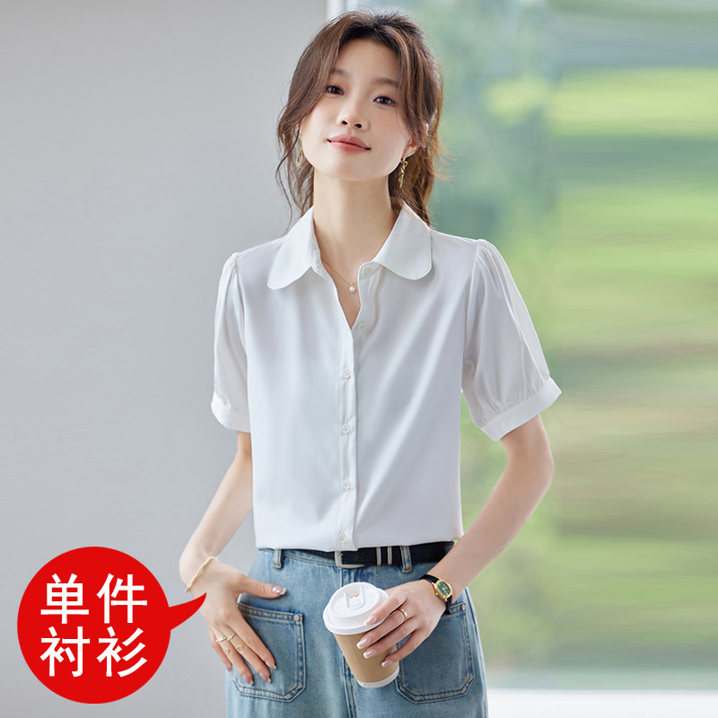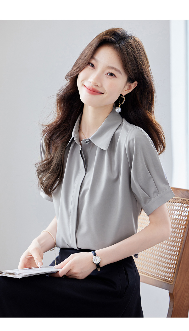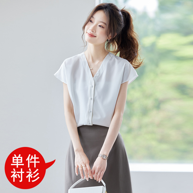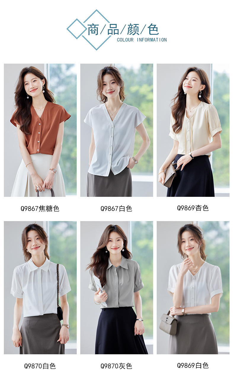 여름 반팔 셔츠, 여성 셔츠, 여름 단색, 전문 캐주얼, 심플, 슬림, 새로운 스타일, 다재다능하고 트렌디한 상의