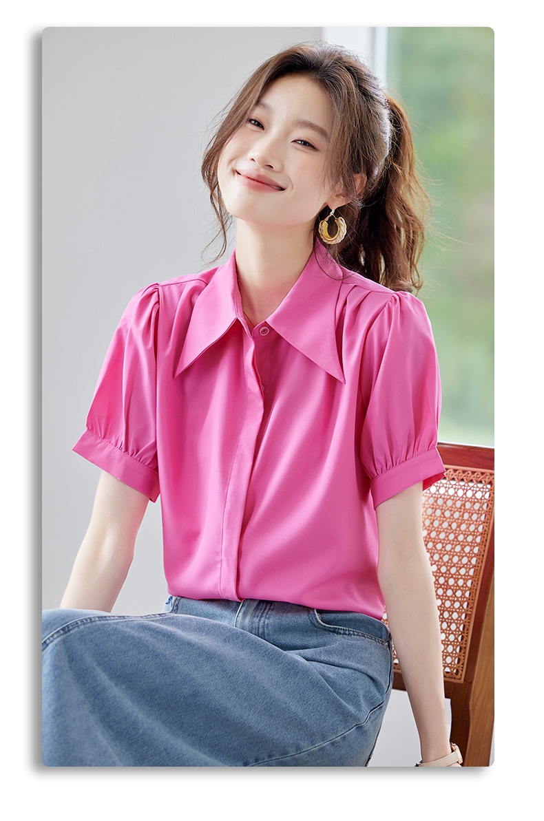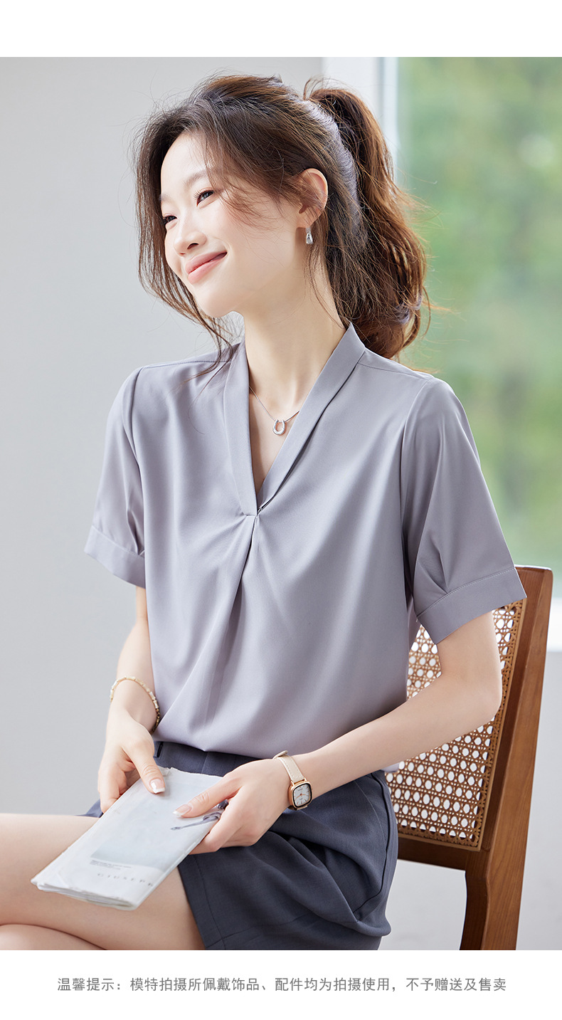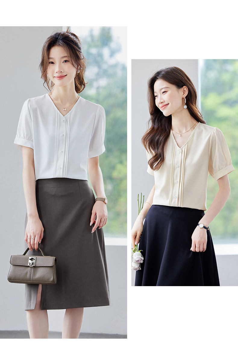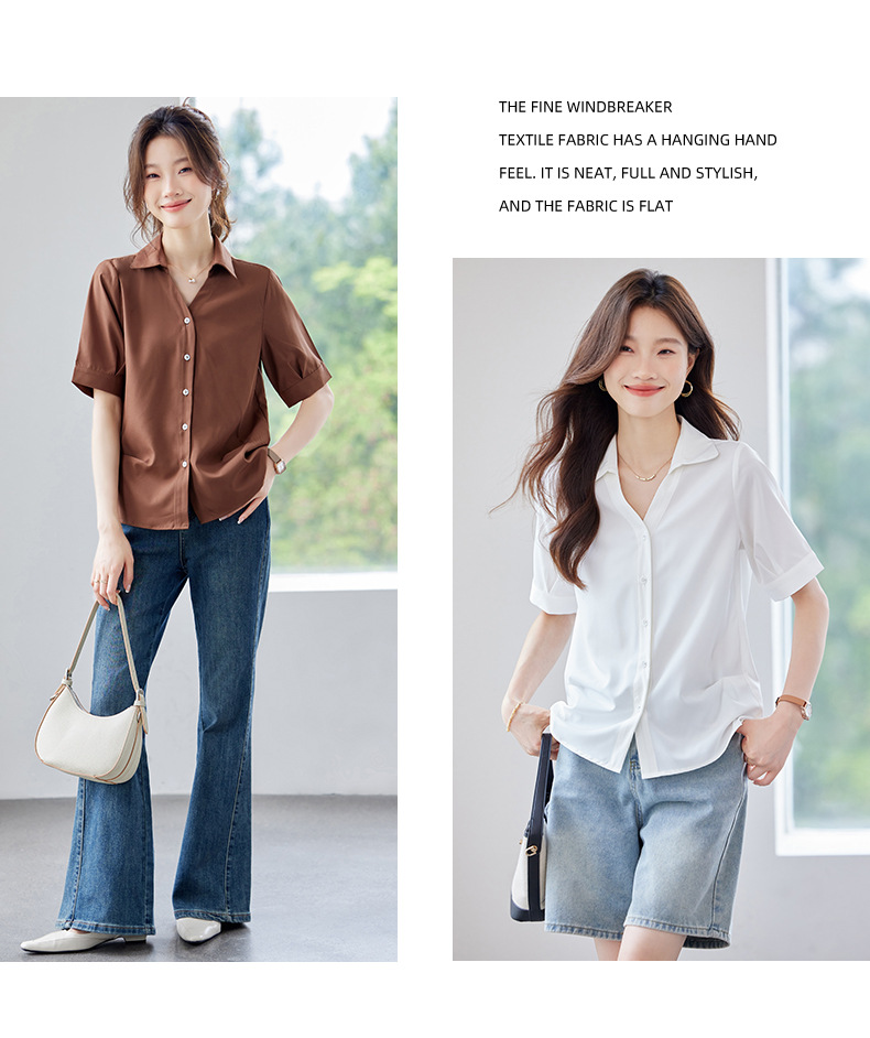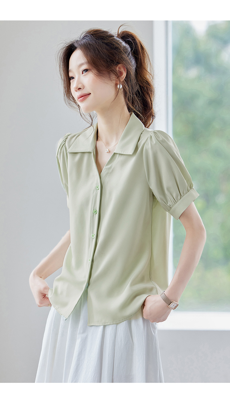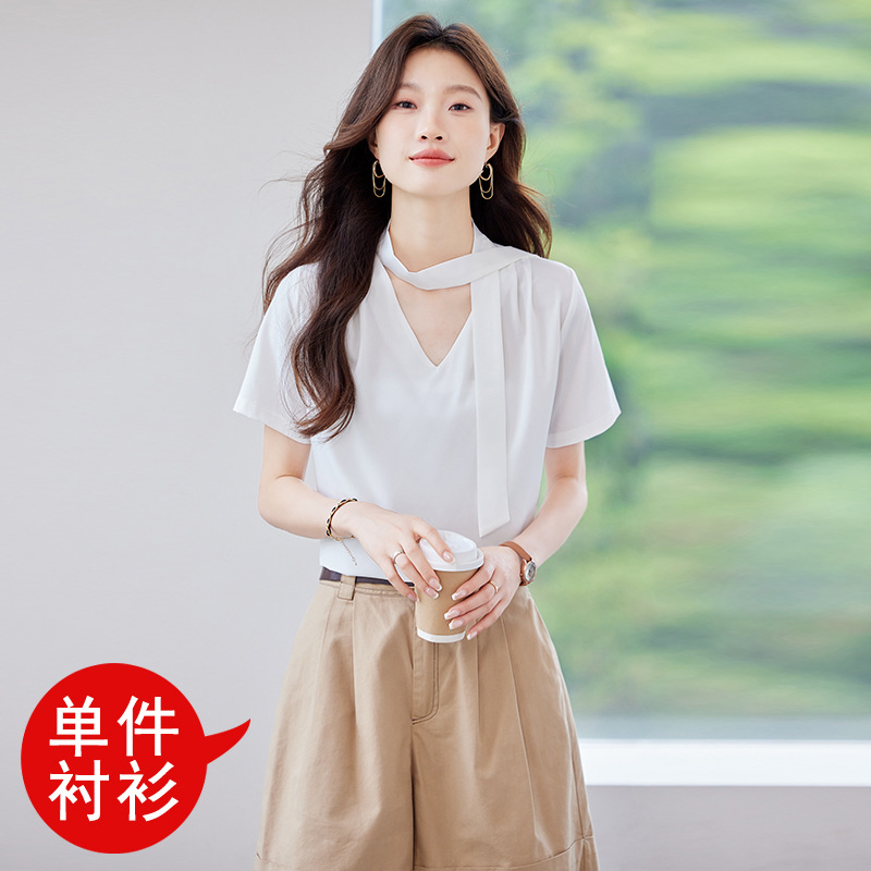 여름 반팔 셔츠, 여성 셔츠, 여름 단색, 전문 캐주얼, 심플, 슬림, 새로운 스타일, 다재다능하고 트렌디한 상의