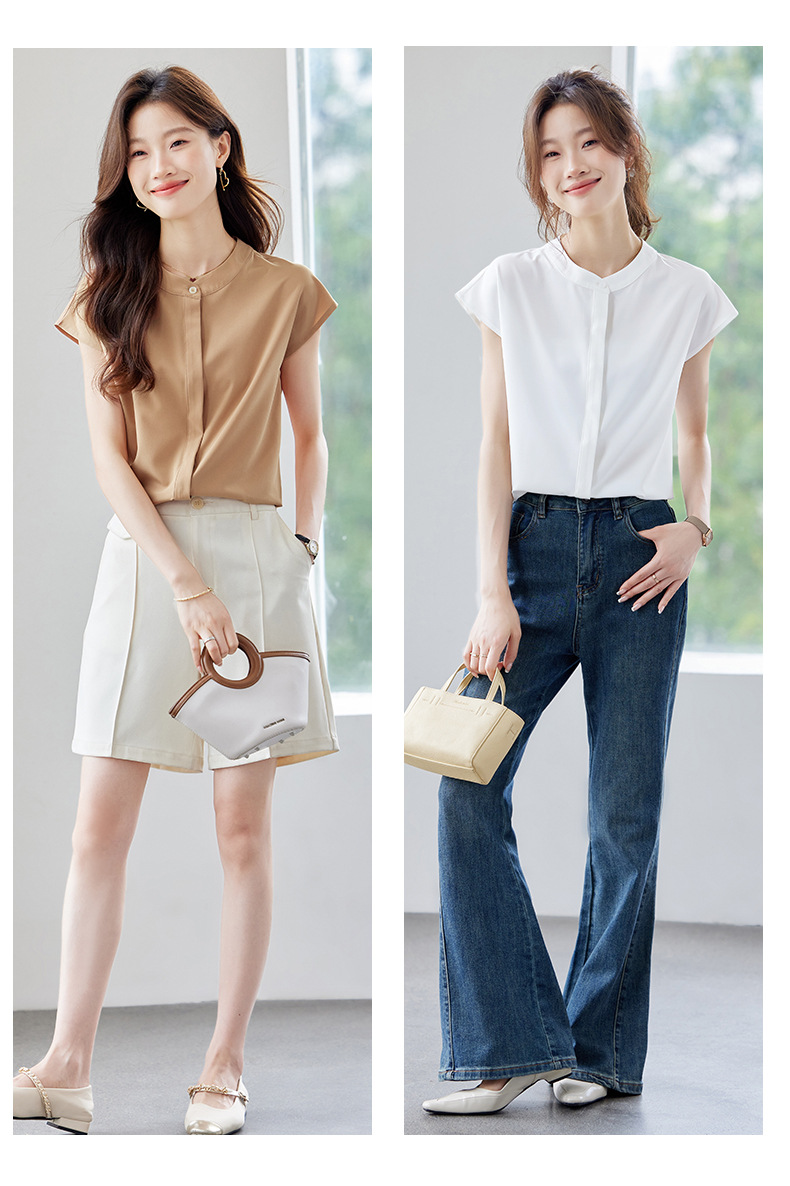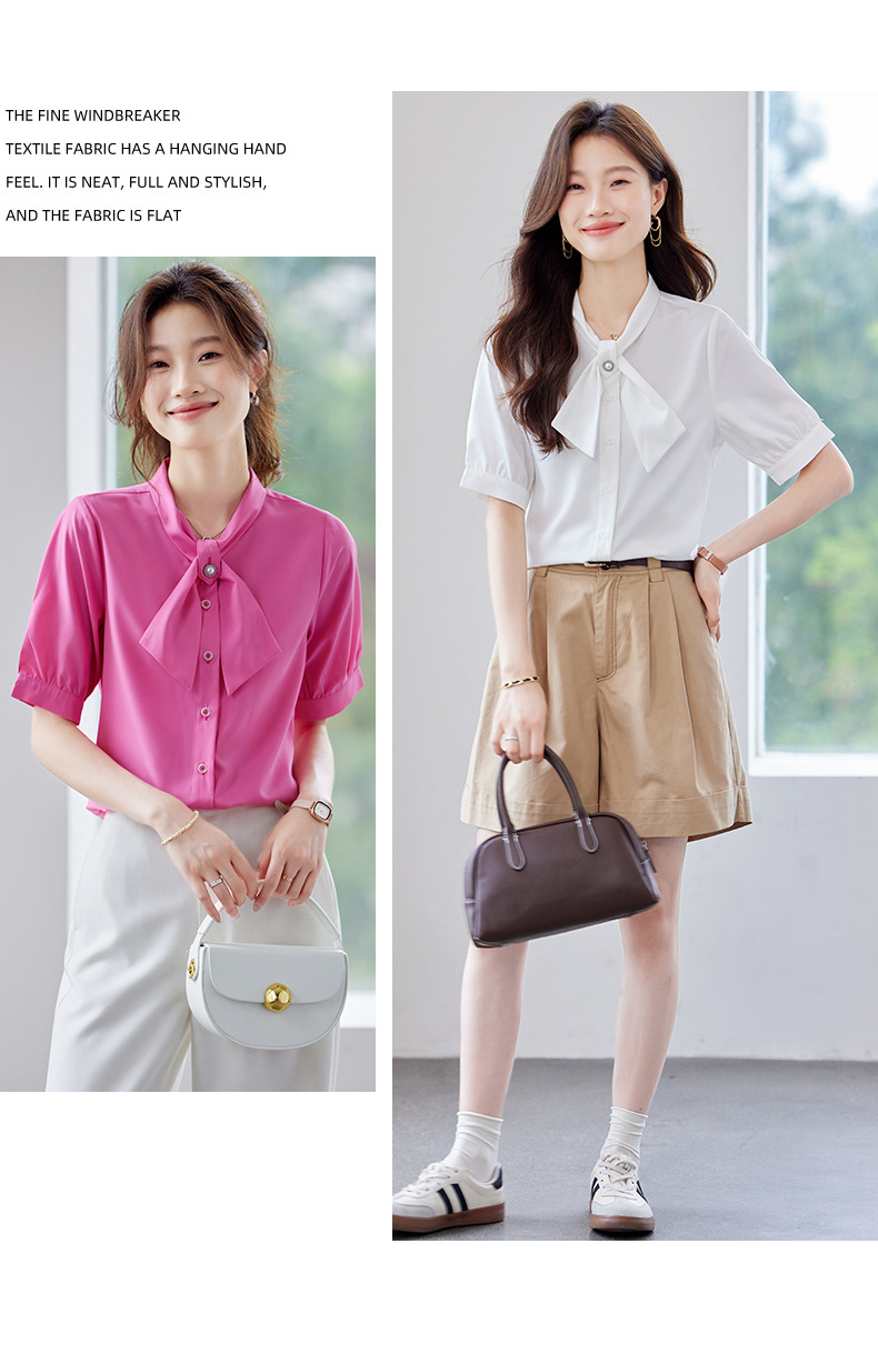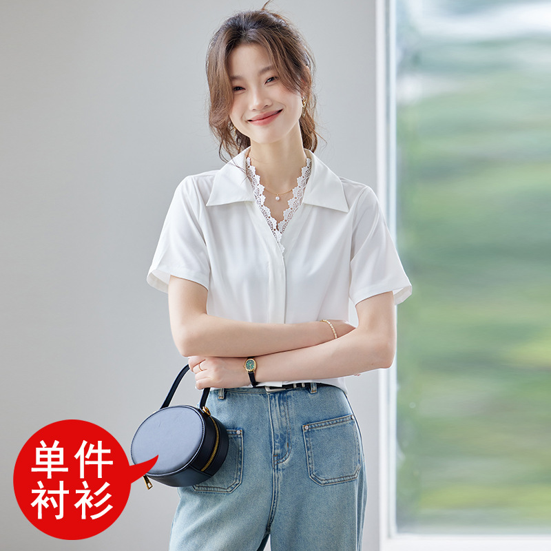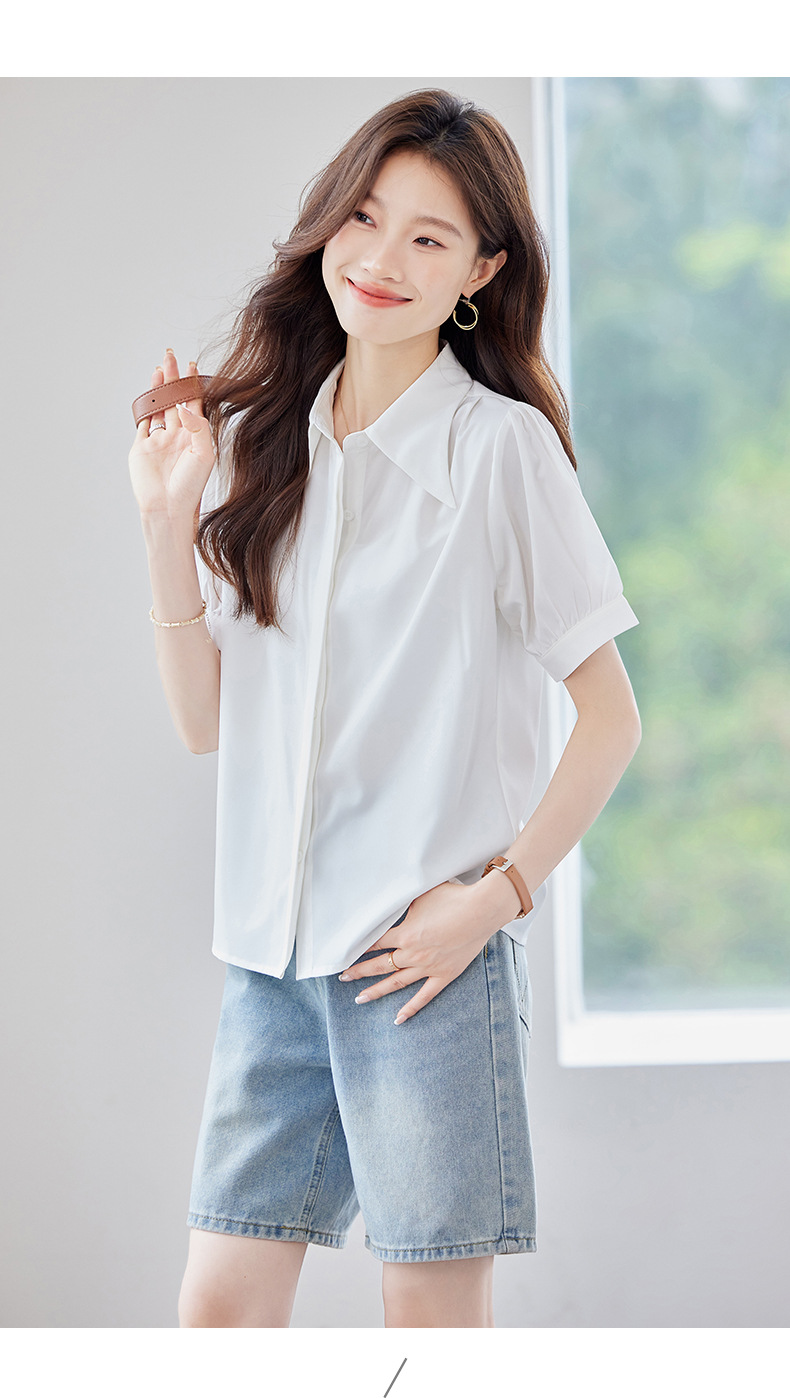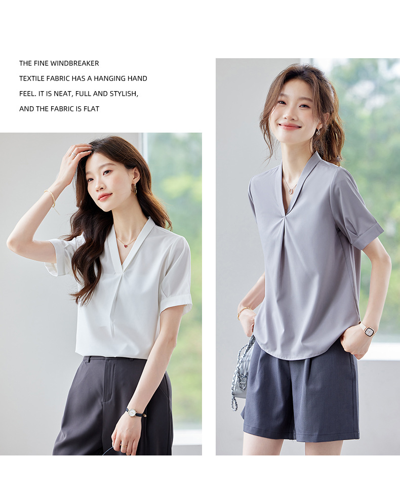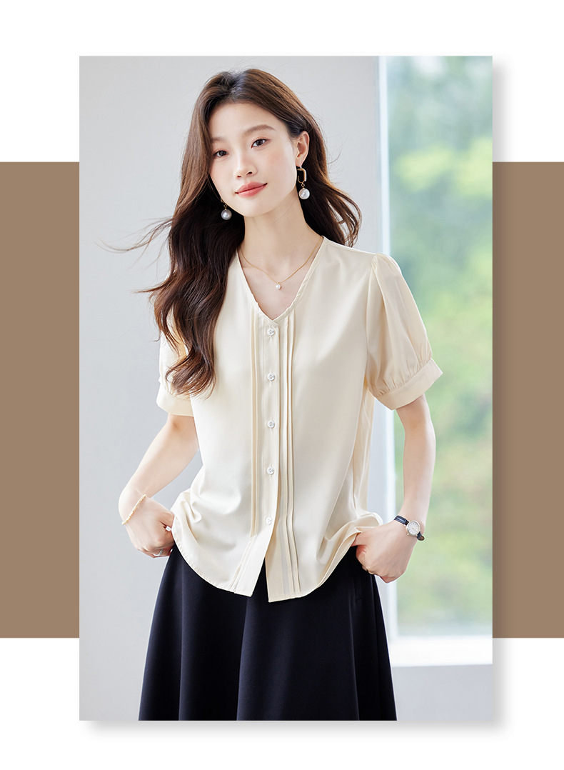 여름 반팔 셔츠, 여성 셔츠, 여름 단색, 전문 캐주얼, 심플, 슬림, 새로운 스타일, 다재다능하고 트렌디한 상의
