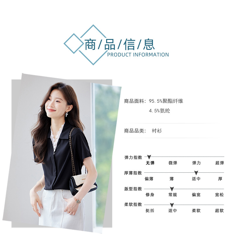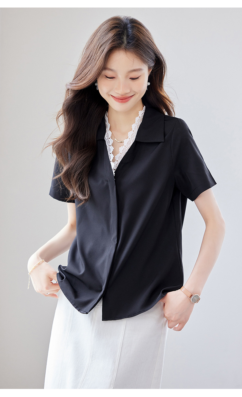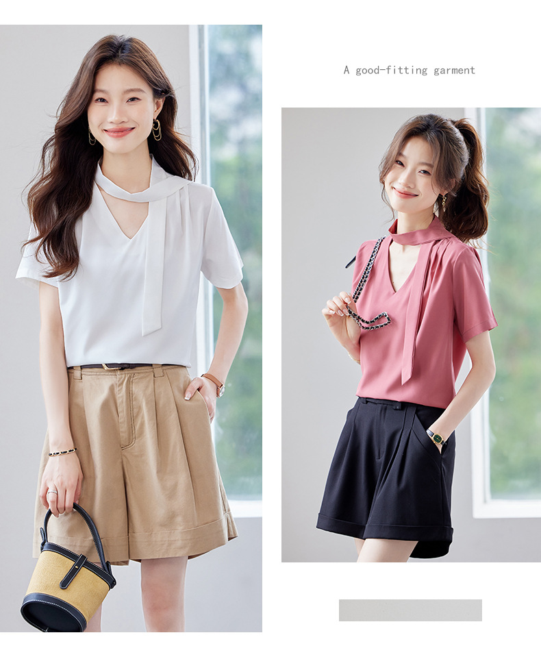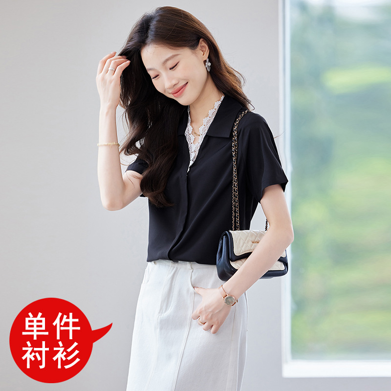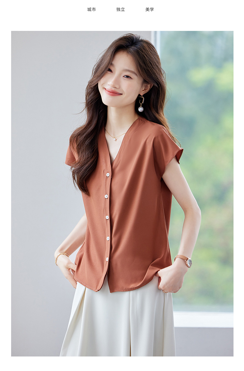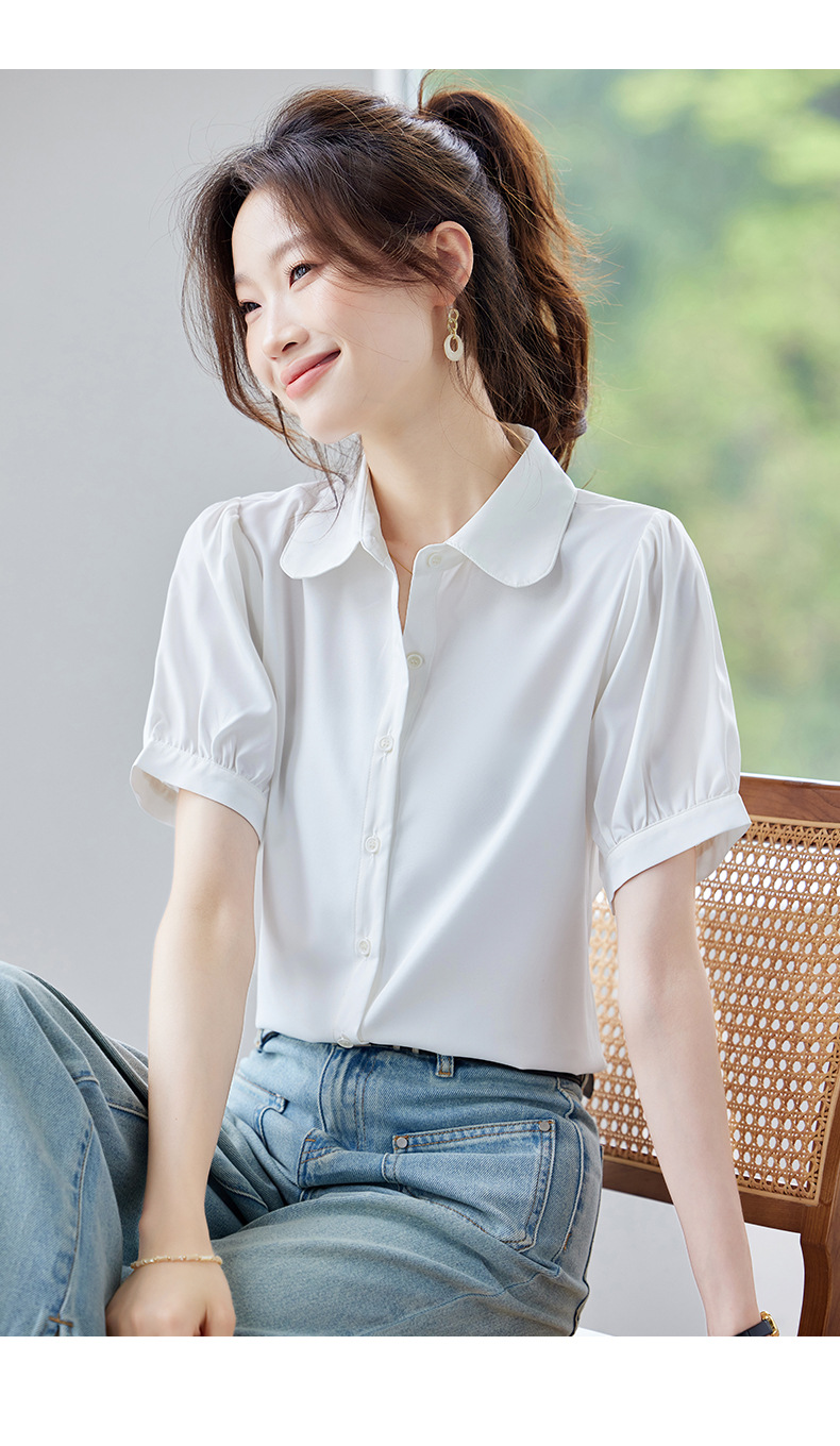 여름 반팔 셔츠, 여성 셔츠, 여름 단색, 전문 캐주얼, 심플, 슬림, 새로운 스타일, 다재다능하고 트렌디한 상의