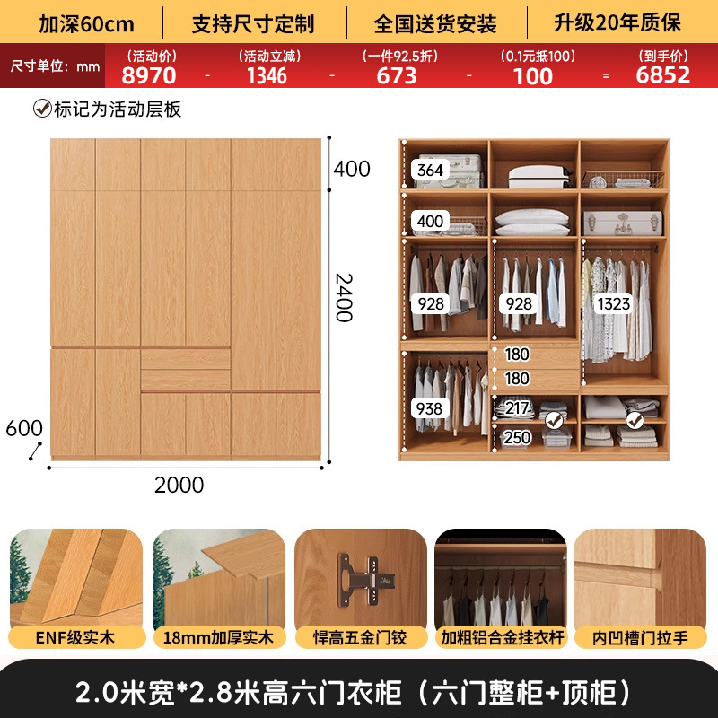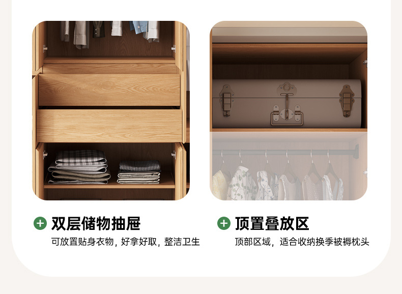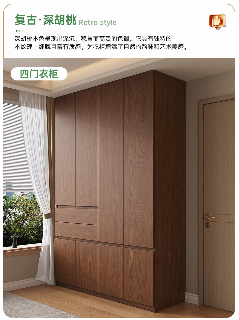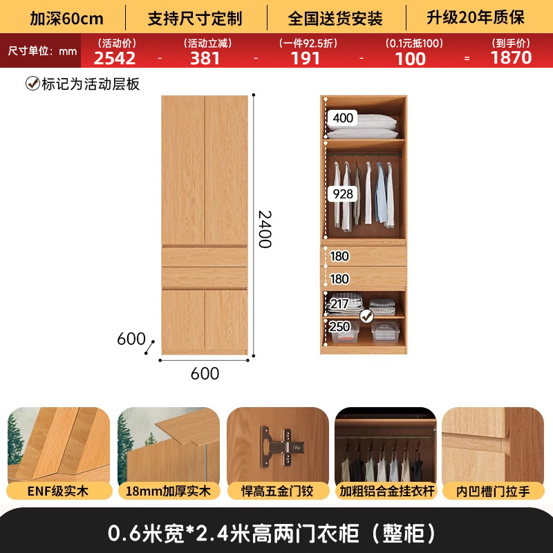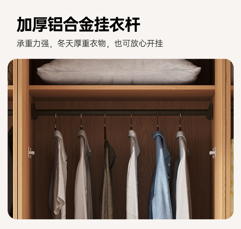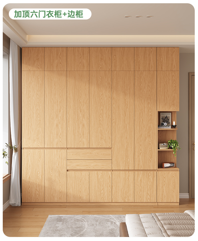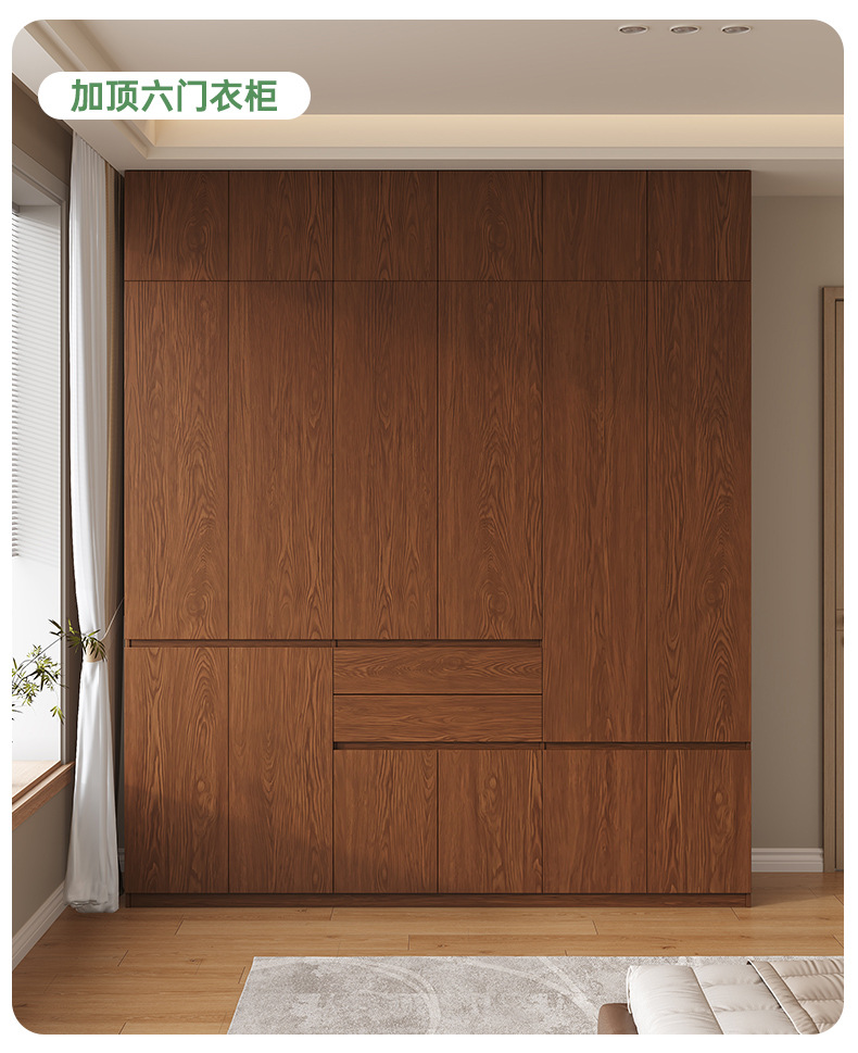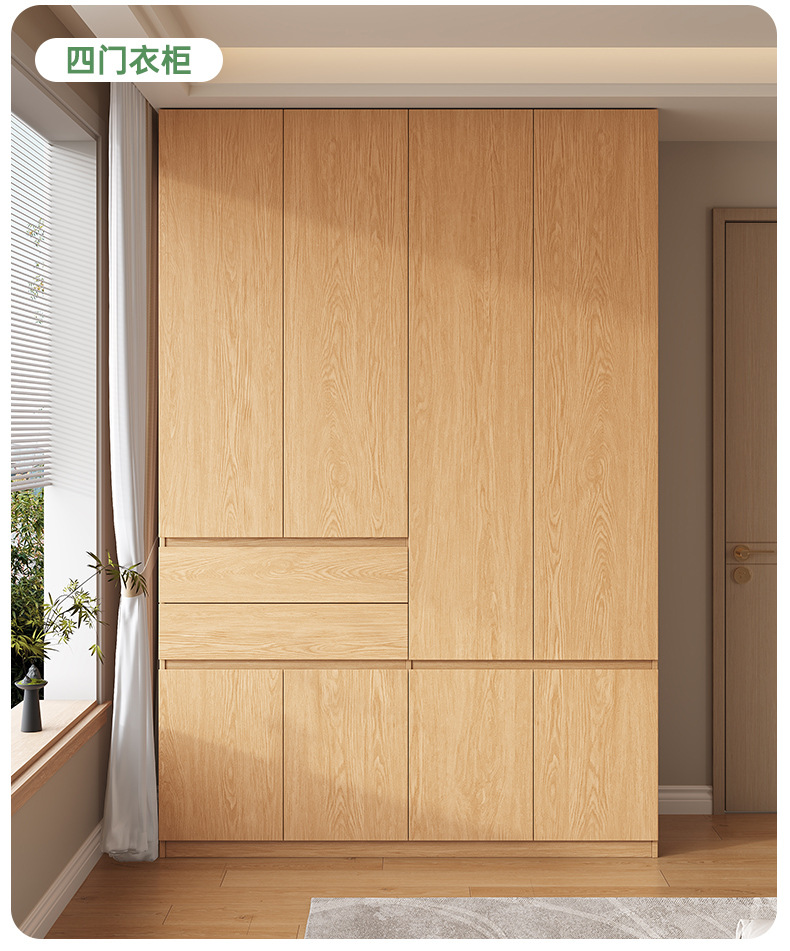 전체 고무나무 원목 옷장 북유럽 스타일 침실 가정용 신제품 2024 인기 대용량 옷장