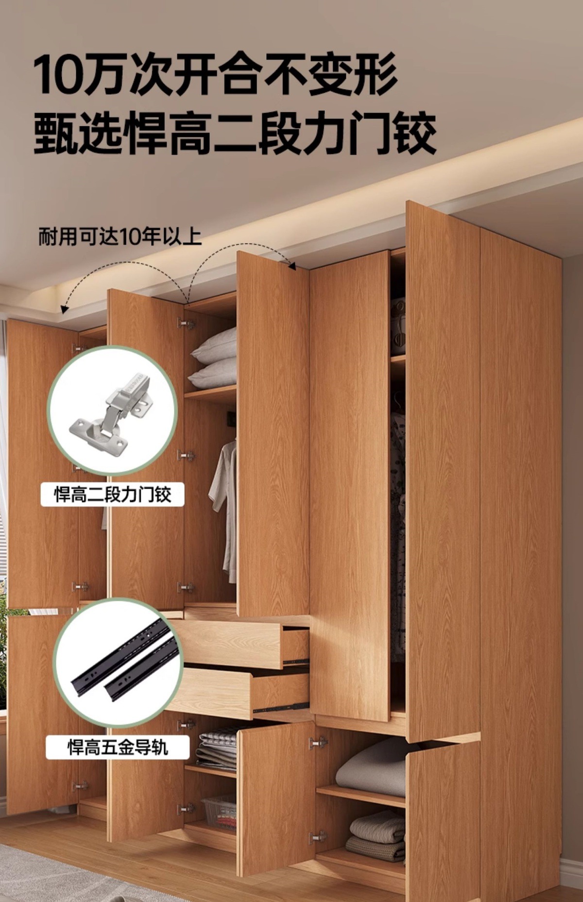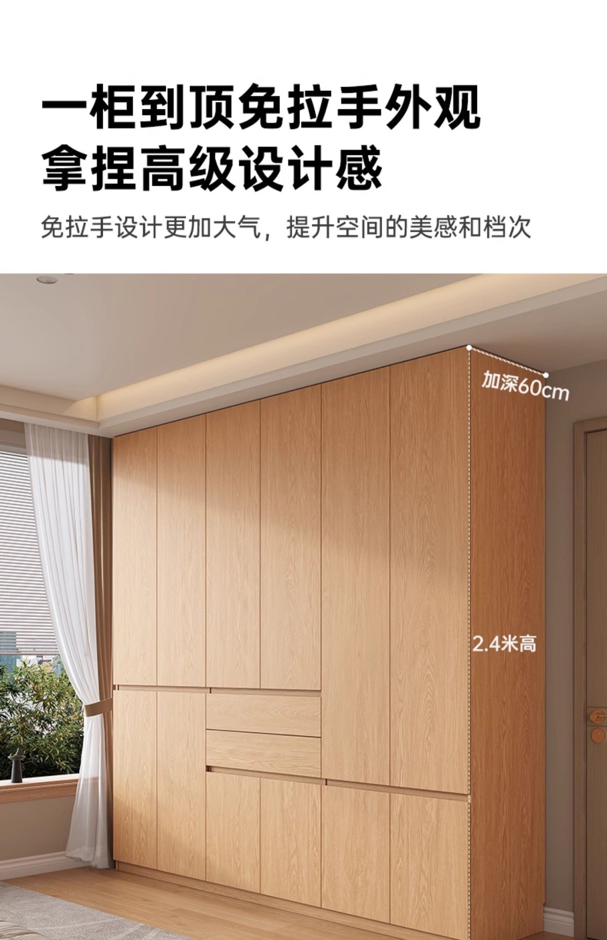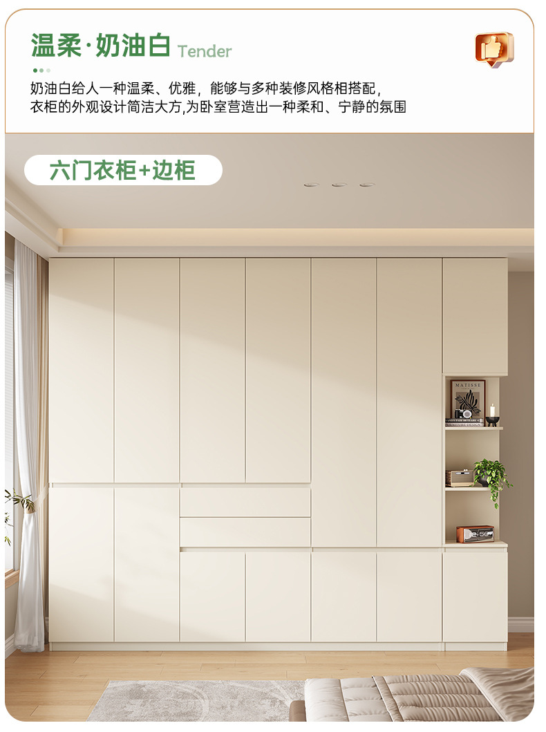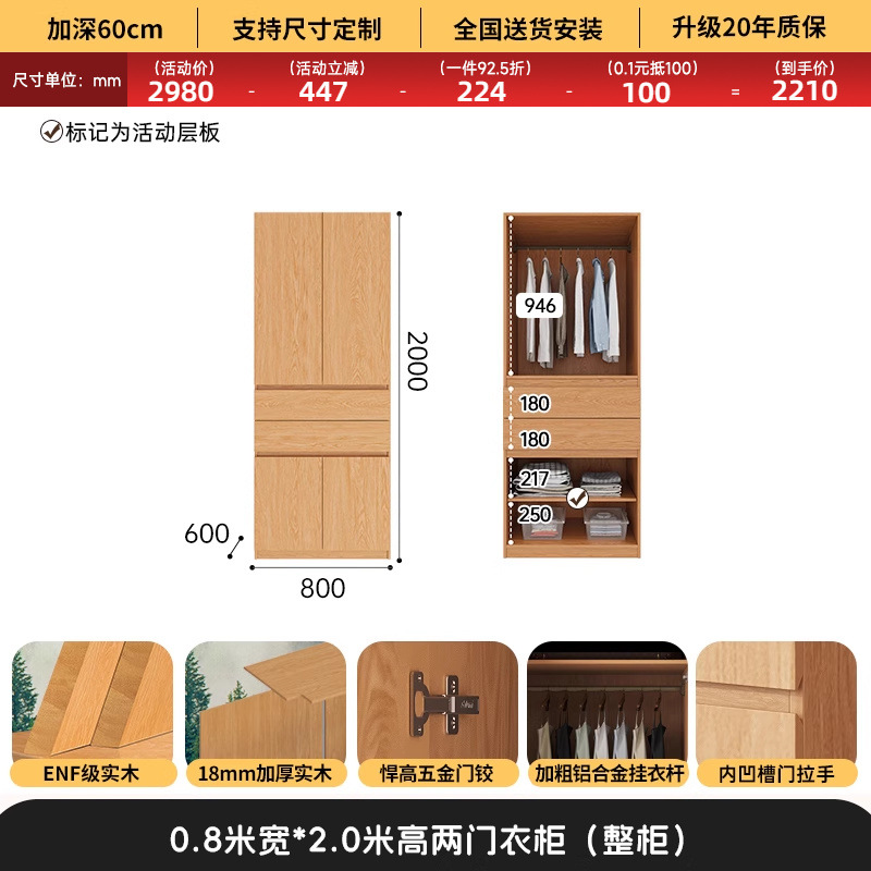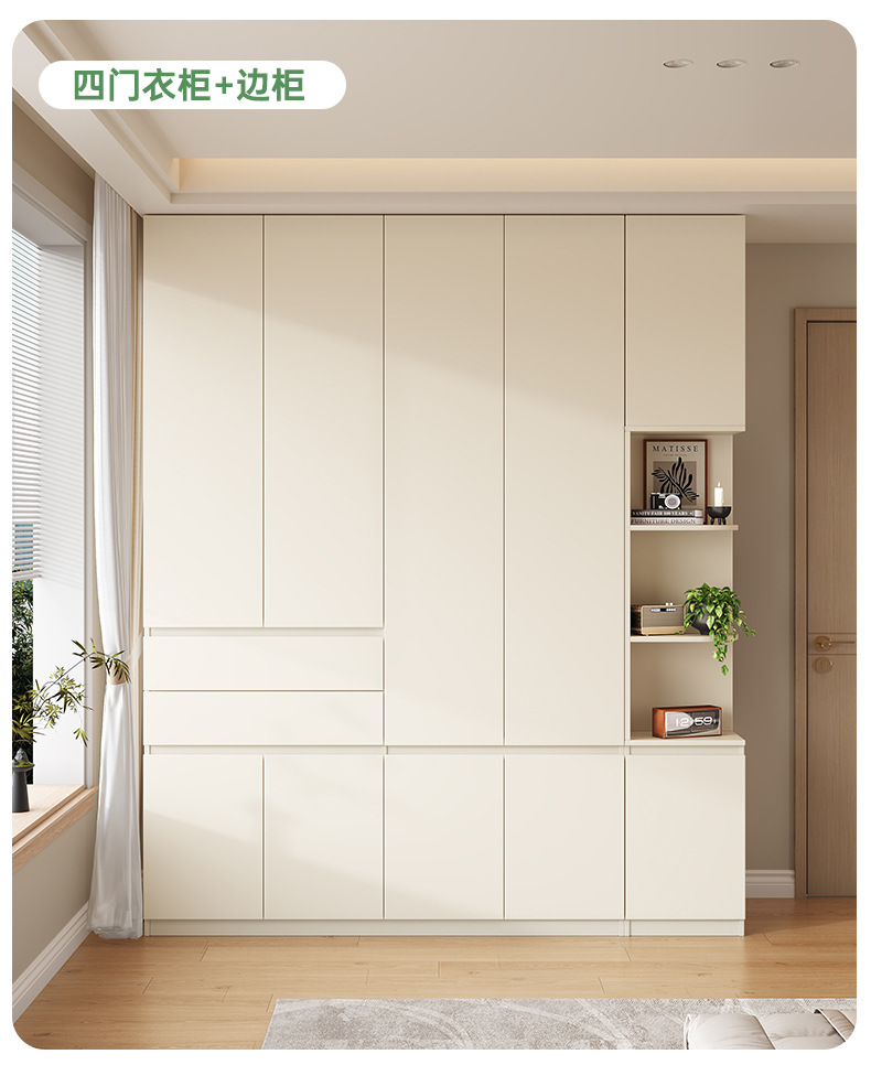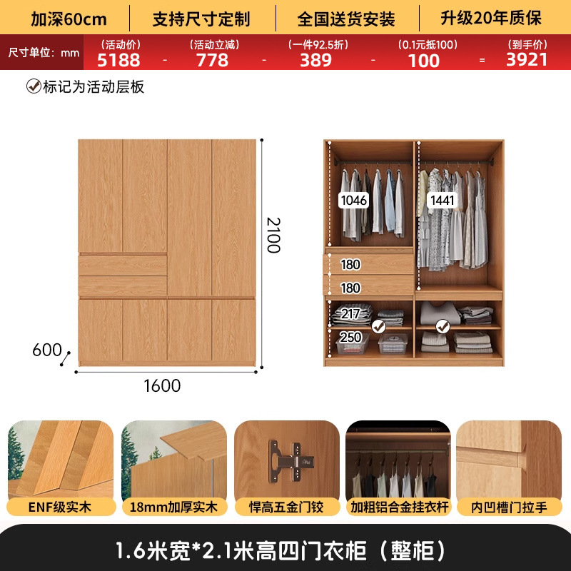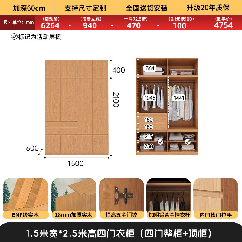 전체 고무나무 원목 옷장 북유럽 스타일 침실 가정용 신제품 2024 인기 대용량 옷장