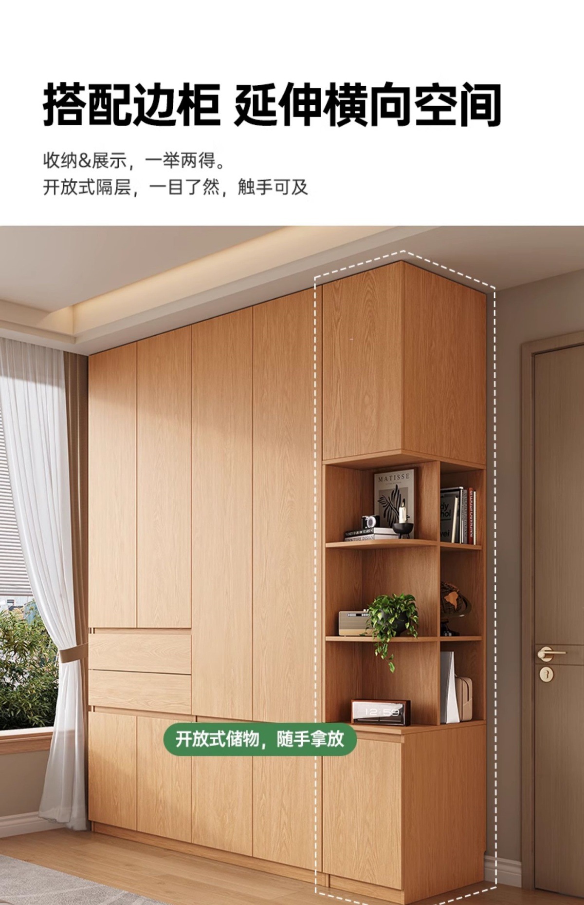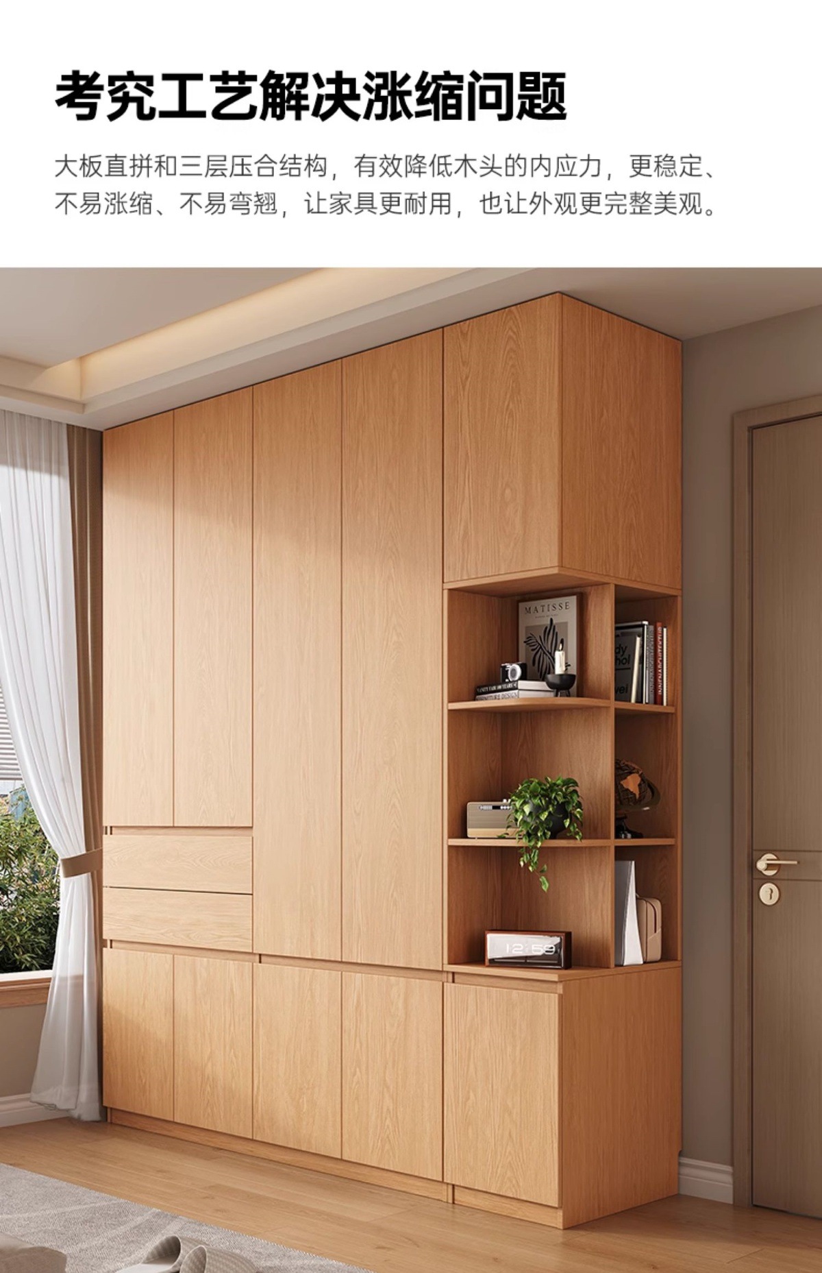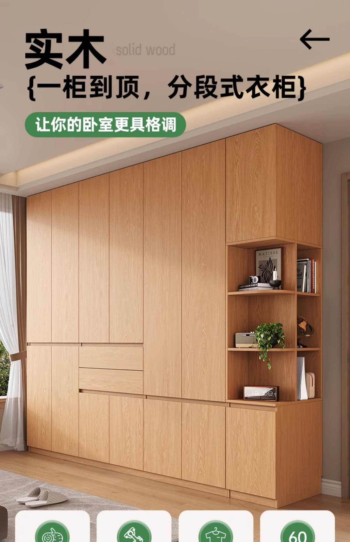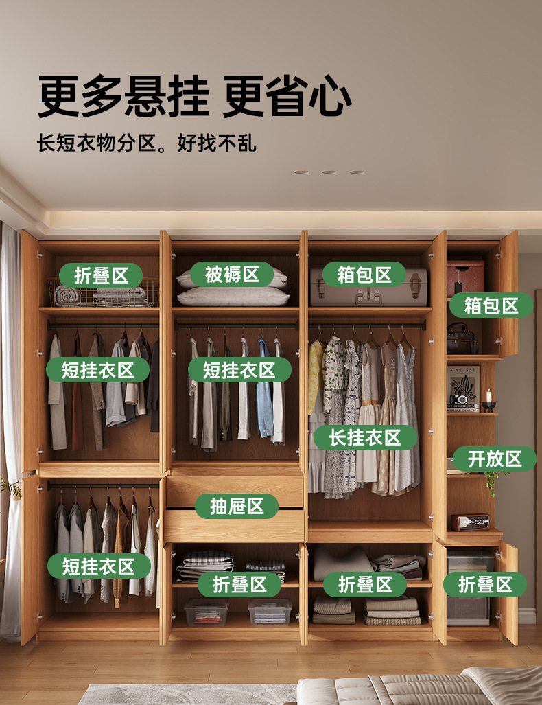 전체 고무나무 원목 옷장 북유럽 스타일 침실 가정용 신제품 2024 인기 대용량 옷장스토어 가기