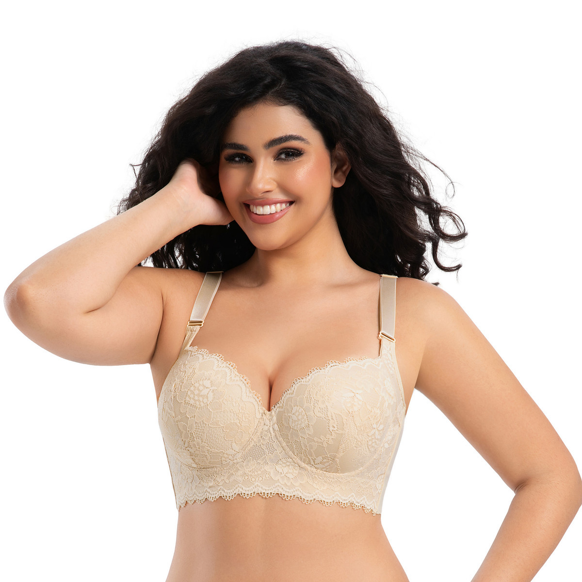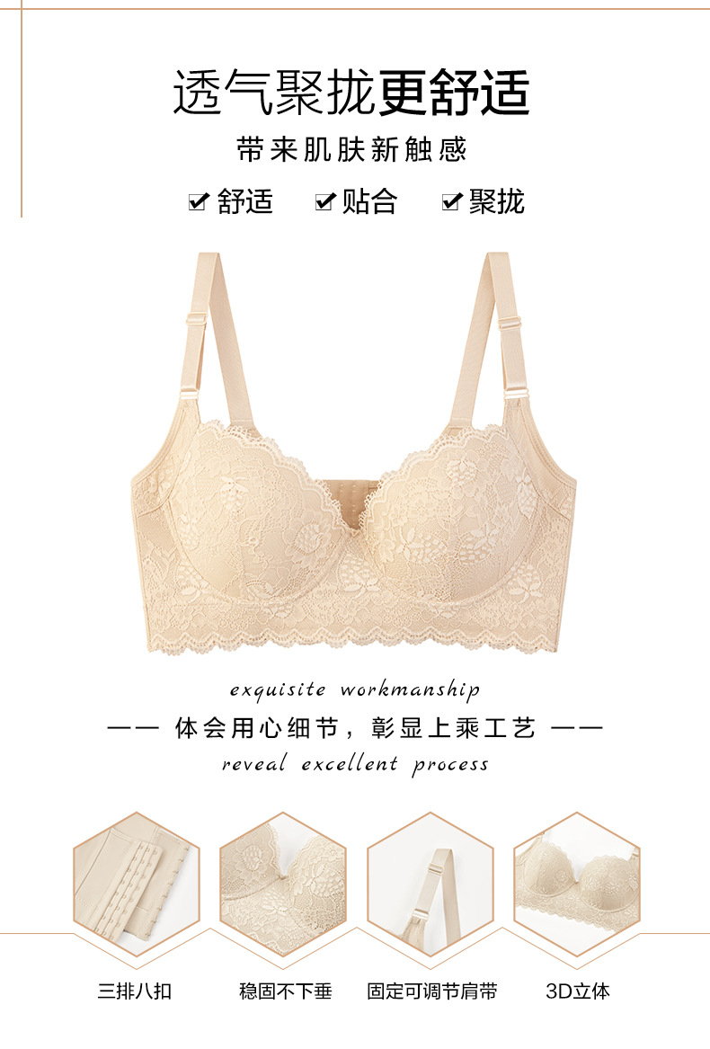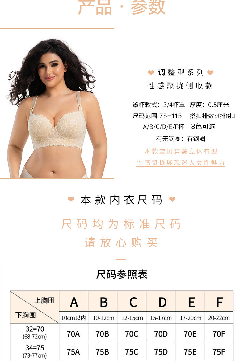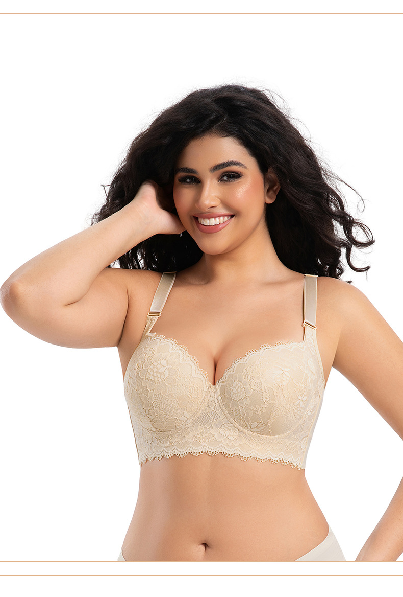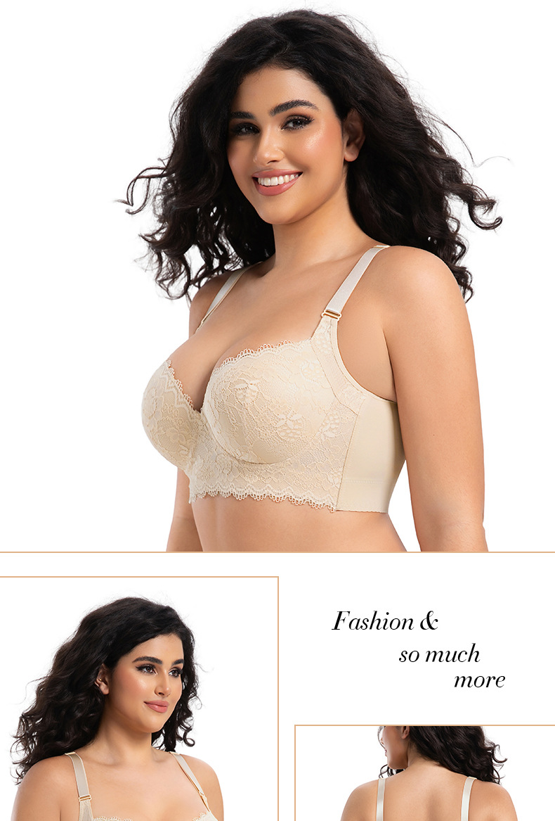 크로스보더 플러스 사이즈 레이스 섹시 속옷 얇은 메모리 와이어 푸시업 유방 축소 처짐 방지 브라 딥 V 브라스토어 가기