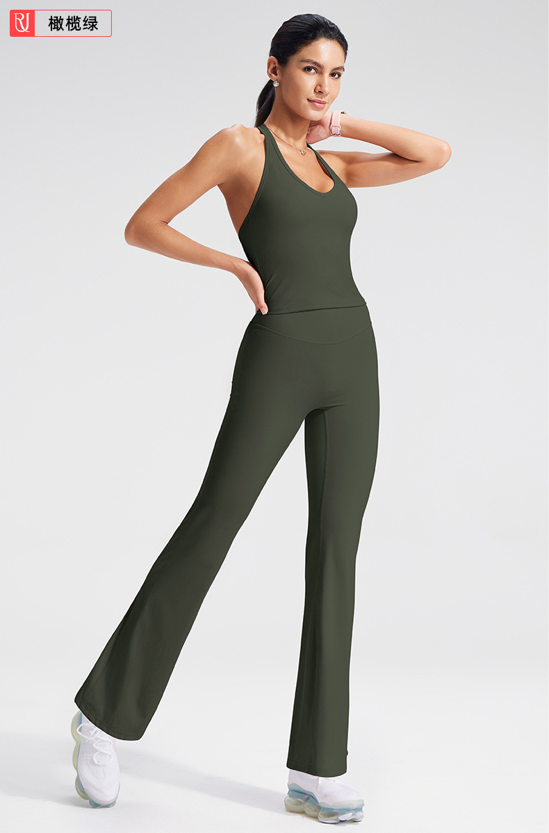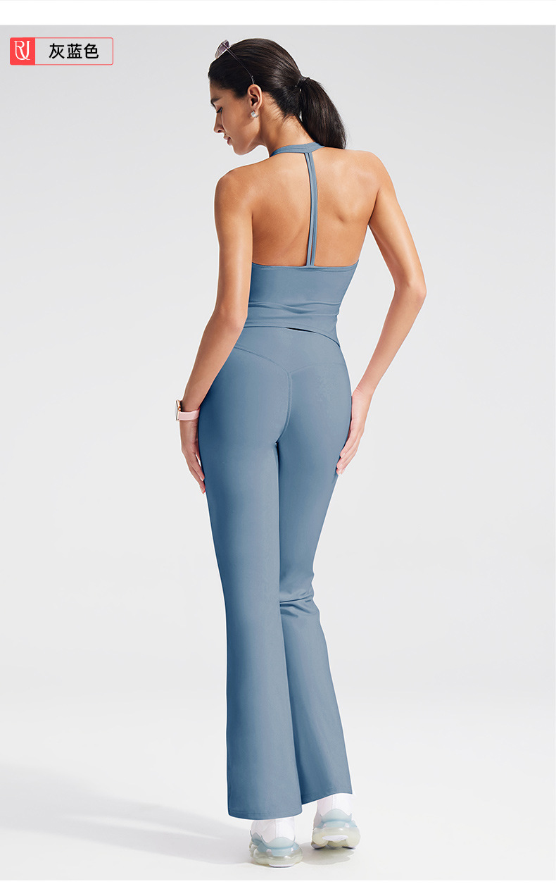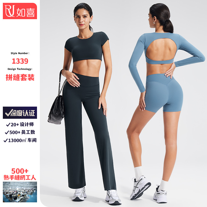 크로스보더 백리스 티셔츠 스포츠 반팔 세트 여성용 가슴 패드가 있는 피트니스 탑 야외 스포츠 요가복 세트스토어 가기
