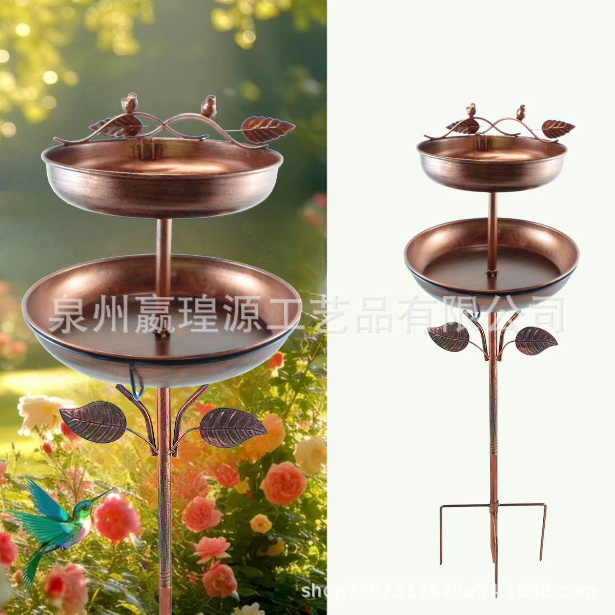 새로운 더블 레이어 새 모이통, 새 목욕통, 복고풍 철제 장식, 새 먹이통, 물통, 목욕통, 정원 장식